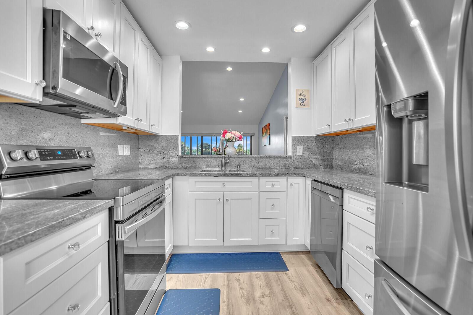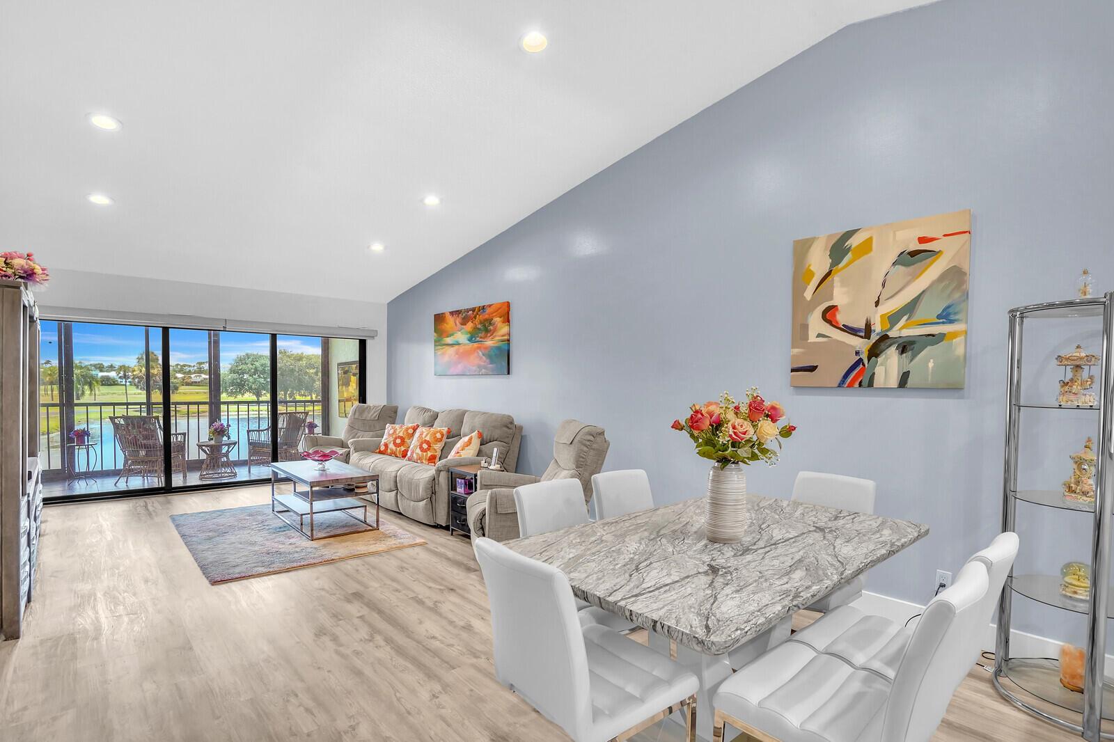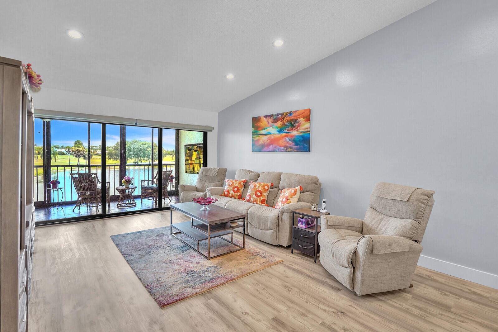 Experience the perfect blend of lifestyle, luxury, and location in this beautifully renovated lakefront condo in the highly sought-after Boca Delray Golf & Country Club. This top-floor 2BR/2BA residence offers breathtaking lake and golf course views from every room, soaring volume ceilings, and magnificent sunsets from the spacious screened patio. Completely move-in ready, the home features full impact windows and doors, a new roof, new air conditioning, and stylish upgrades throughout, including fresh paint, new luxury laminate flooring, and abundant closet space for storage. The gourmet kitchen boasts new white cabinetry, granite countertops, and stainless steel appliances, while the split-bedroom layout provides comfort and privacy. A full-size washer and dryer