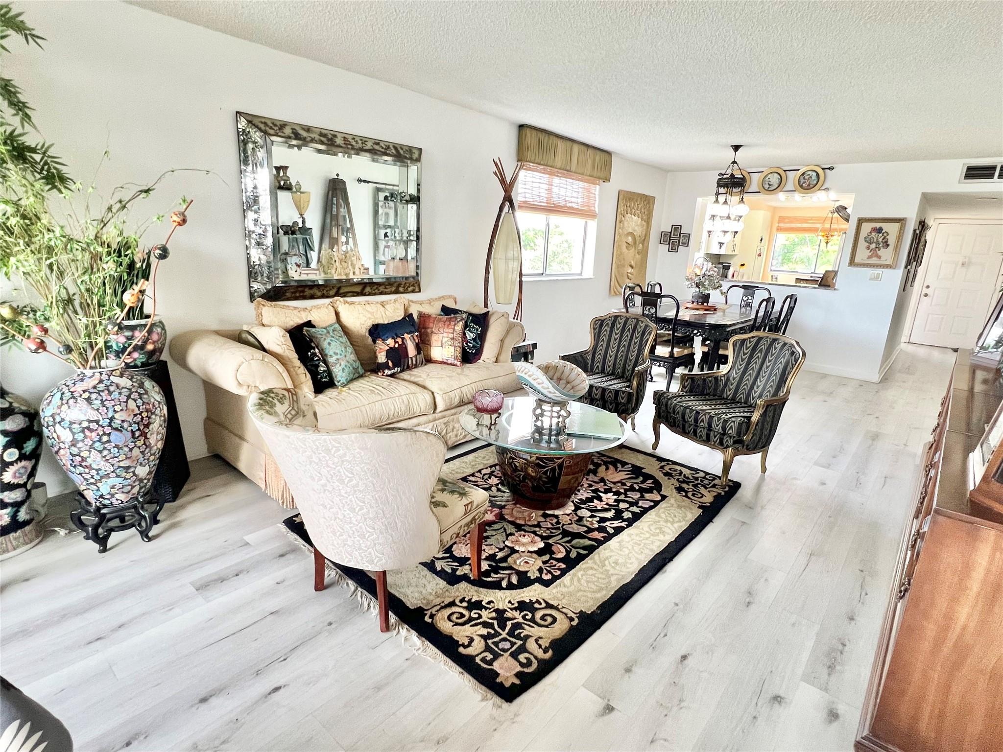 Beautiful 2 bedroom/2 bath CORNER unit offering lots of windows. Light & Bright!! This well kept condo features large, updated eat-in-kitchen w/granite countertops, new stainless steel appliances, pantry & large open pass-through window. Lg living area includes formal dining room & extended living room. (New flooring in main living areas.) Full size washer & dryer located in large walk-in laundry room. Other great features include large master bedroom w/walk-in closet & large vanity area in bathroom. Nothing left to do to this unit but move in & enjoy! Kings Point 55+ community offers a luxury lifestyle with it's many amenities including multi-million dollar theatre, ballroom, clubhouse, indoor & outdoor pools, courtesy buses, gym, tennis, pickle ball, many social clubs & more. A must see!