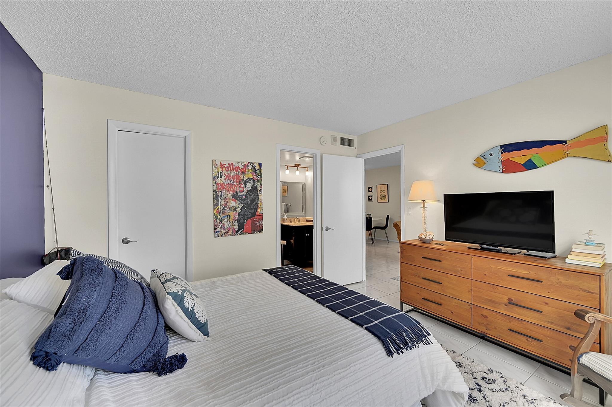 Direct ocean and pool views from this fully renovated condo with floor-to-ceiling hurricane-impact windows and doors. Bright, open layout features a modern kitchen with white cabinetry, quartz counters, and white appliances. Split-bedroom design offers privacy, two updated baths, and two large walk-in closets. Tile floors throughout. Enjoy resort-style amenities—24/7 concierge, fitness center, tennis, pickleball, bocce, game room, BBQ area, and garage parking. Walk to the beach, Pompano Pier, shops, and dining. Desirable southeast exposure. All assessments paid by seller; building improvements near completion. Cable and internet included in association fee.
