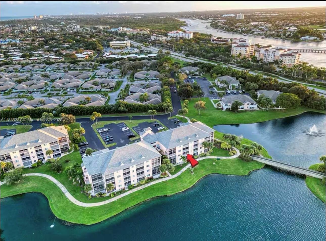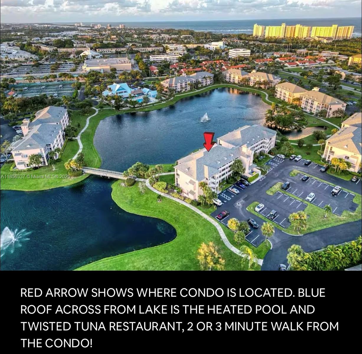 NO RENTAL RESTRICTIONS! SELLER WILL TRANSFER EXISTING AIRBNB AND VRBO RESERVATIONS (UPON REQUEST) TO IMMEDIATELY YIELD INCOME! Fully renovated with designer finishes. Featuring a lovely lake view, brand new wood tile flooring throughout, custom Italian frameless cabinetry, brand new stainless steel appliances, and Taj Mahal Quartz countertop with a stylish waterfall accent on the peninsula. This unit BOASTS a sun-drenched, spacious open concept with ENCLOSED patio space (rare for Jupiter Bay!) Built-in oversized TV and electric fireplace, spa inspired bathroom tile, new toilets, vanities, LED mirrors, and more! The brand new furnishings, decor, kitchenware and more will be included in the sale. This unit accommodates 6 guests with a pull out sofa in the living room.