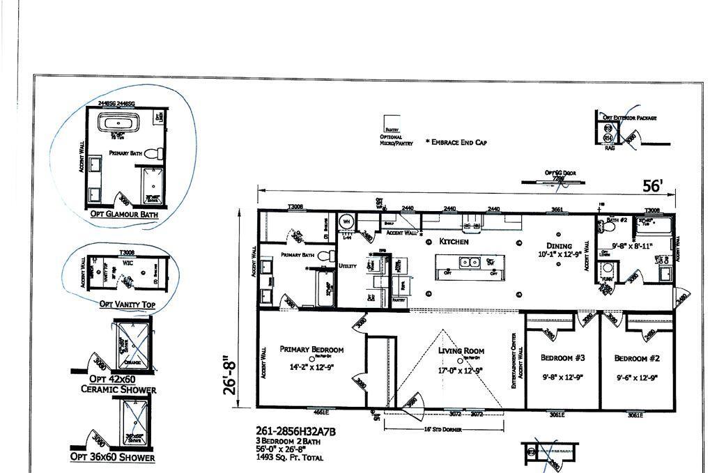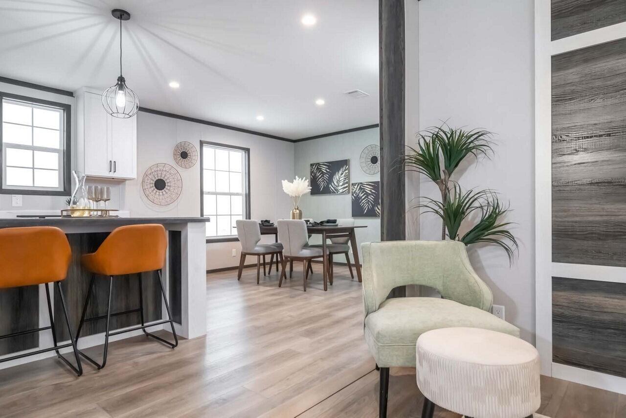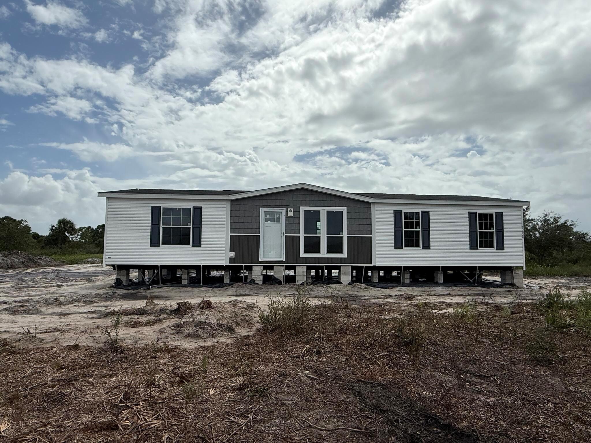 Brand New 3BR/2BA | 1.25 Acres | Prairie/Viking Community Move-in ready and beautifully upgraded, this 1,493 SqFt Champion Embrace home offers a modern split floor plan with warm wood tones, accent walls, and contemporary interior design throughout. The spacious kitchen features a coffee bar, built-in microwave, pantry cabinet, large island with pendant lighting, and contrasting countertops. A separate dining area flows into the inviting living room, while the interior laundry room includes built-in cabinets and a hanging rack for added convenience. The private primary suite is designed for comfort, offering a standalone soaking tub, oversized walk-in shower, double vanity, and tall linen cabinet. Additional upgrades include finished drywall throughout, stainless steel appliances, black