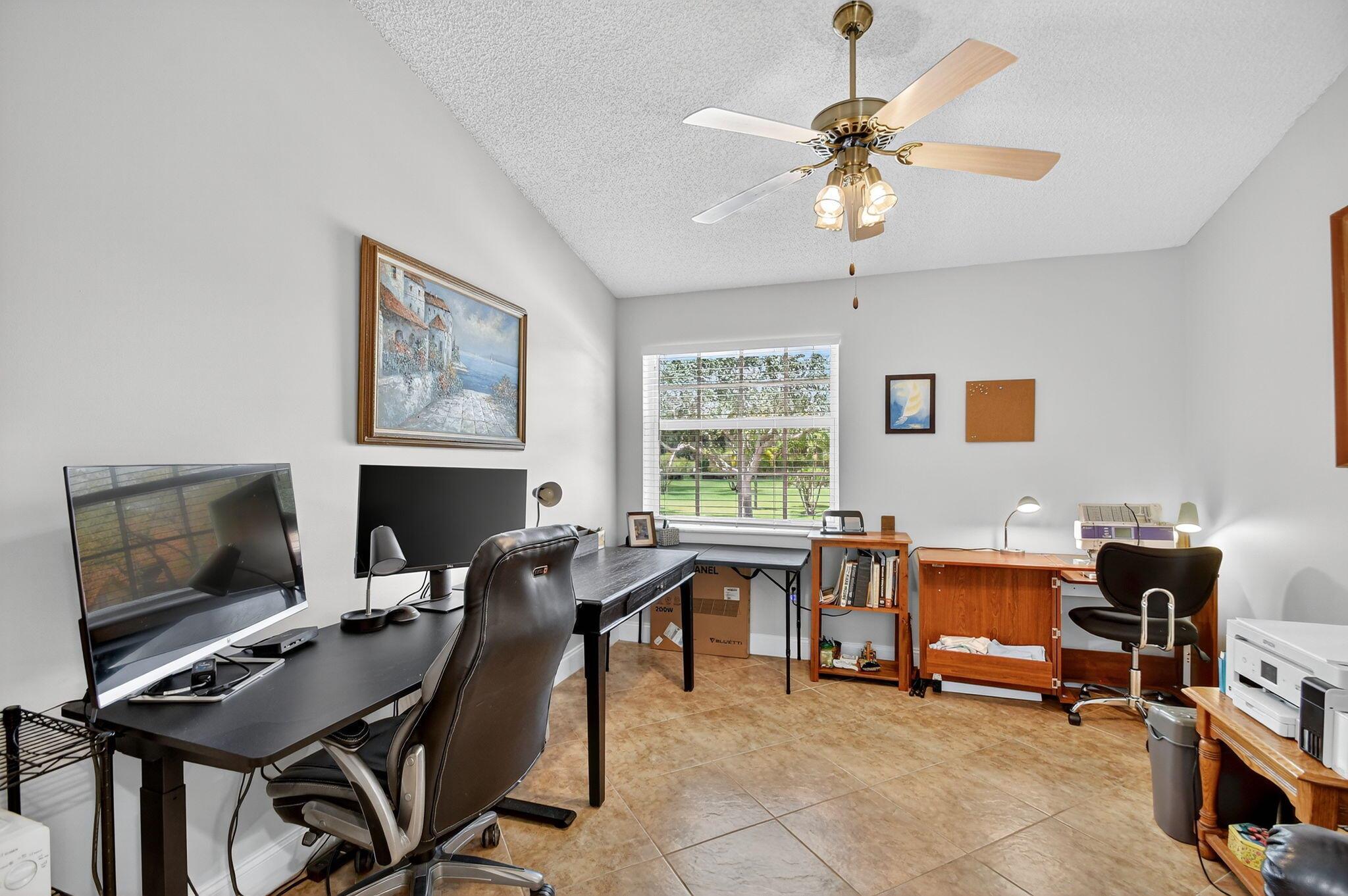 Come experience Florida living at its finest in this beautiful end unit with open floor plan and perfect, serene location with lake views. Home has new AC with new impact windows and sliders throughout. Spacious 3 bedroom, 2 bathroom with third bedroom being used as an office. The private, glassed in and screened, lania provides ample space for outdoor entertaining and relaxation while overlooking the lake. Eat in kitchen has all new stainless steel appliances and a reverse osmosis drinking water filtration system. Full washer and dryer in unit. . Guest bathtub replaced with beautifully tiled walk in shower with niche. Newly renovated club house will be opened soon and hosts loads of amenities. Open 7 days on-site cafe. Special assessments for completion of clubhouse all paid.
