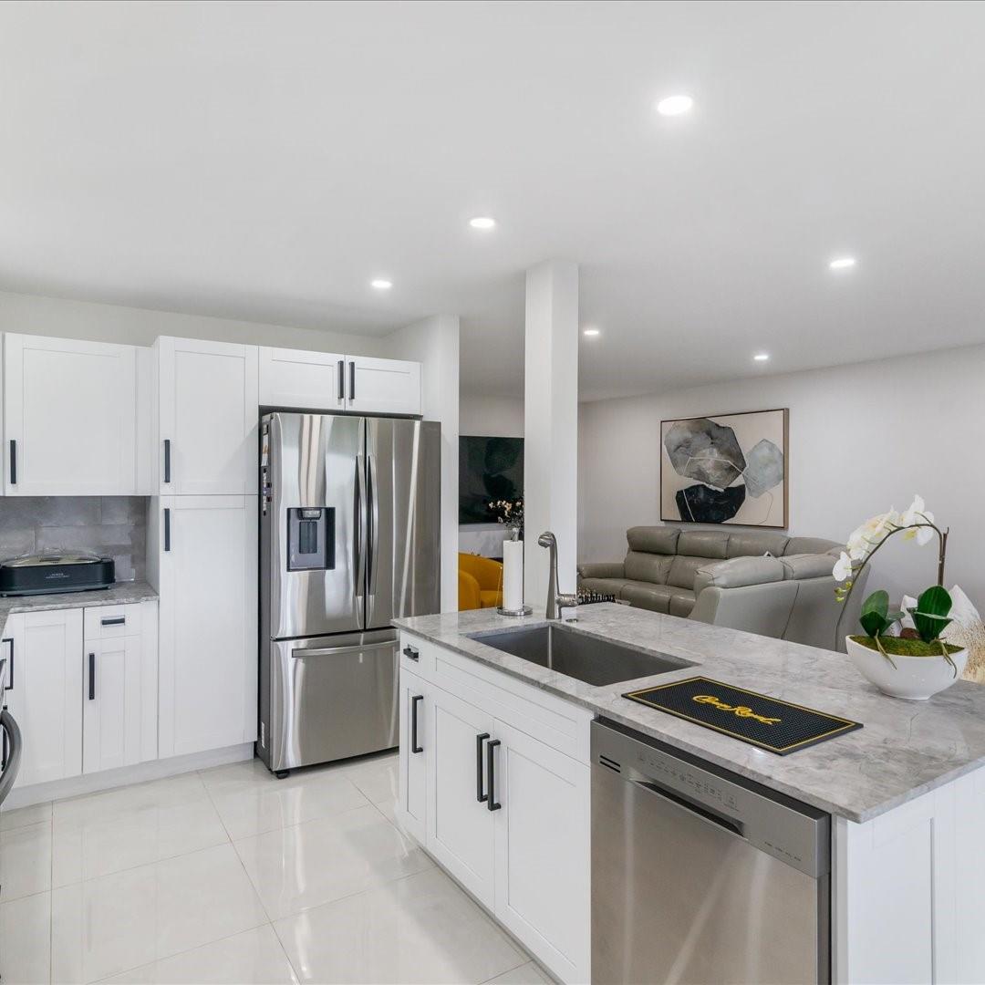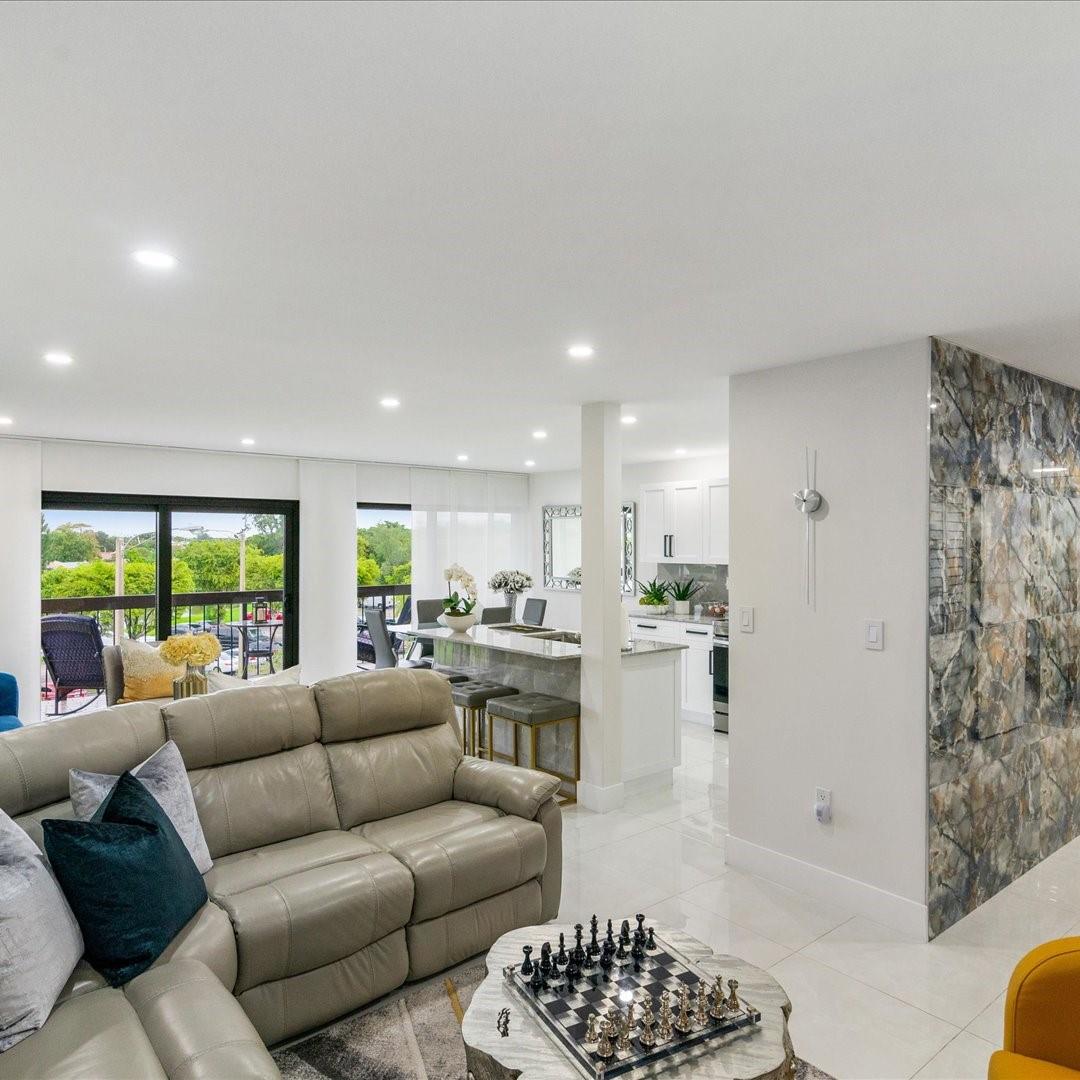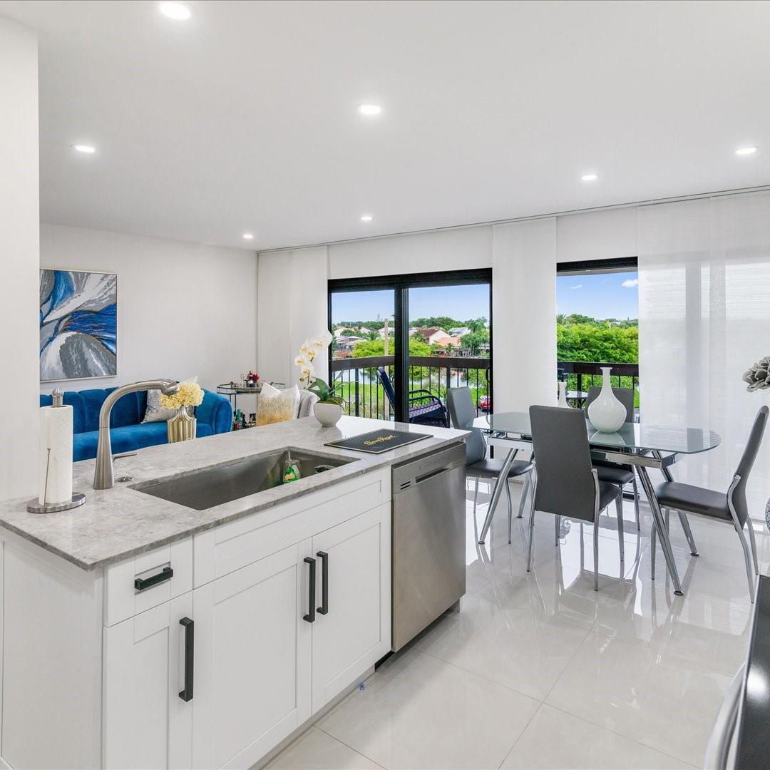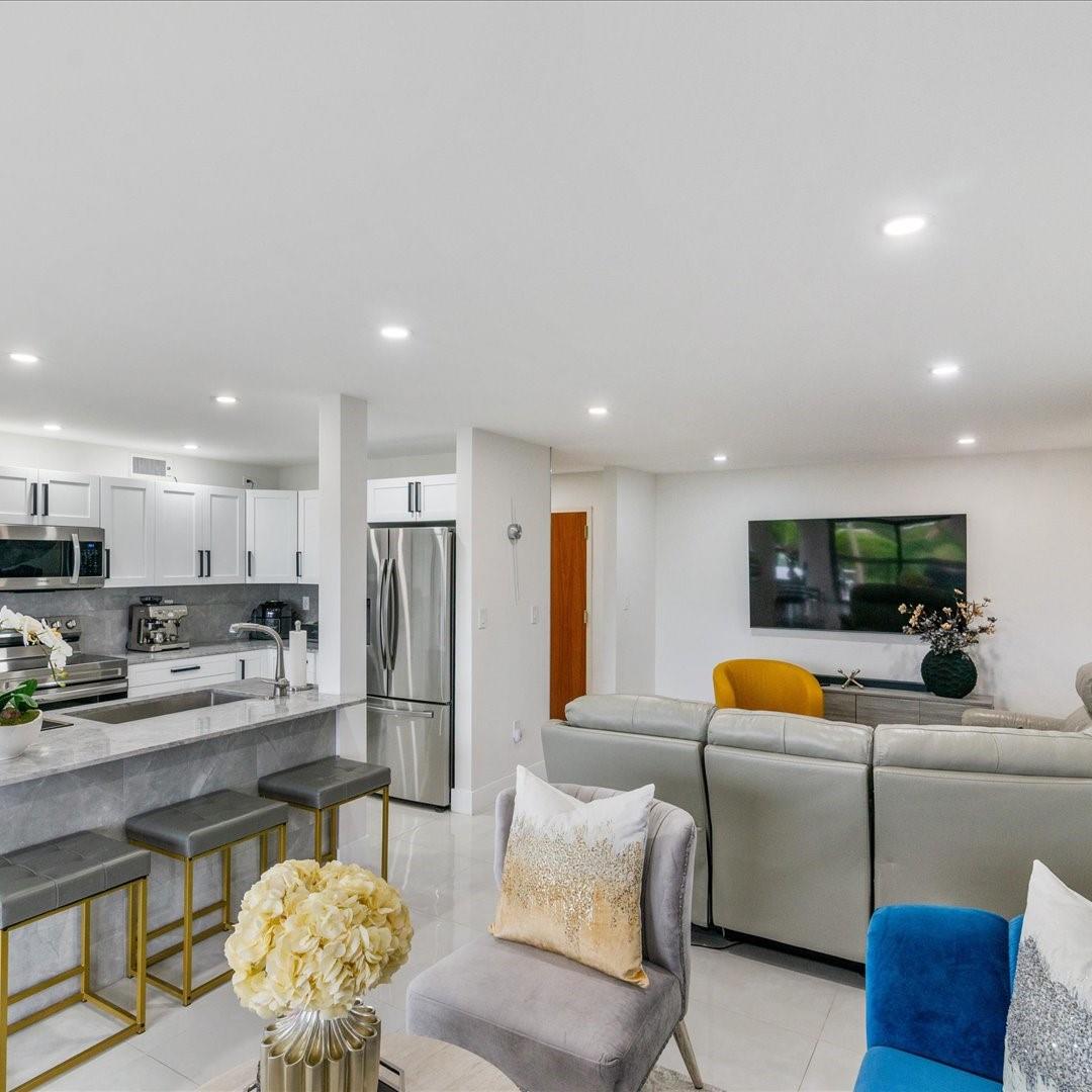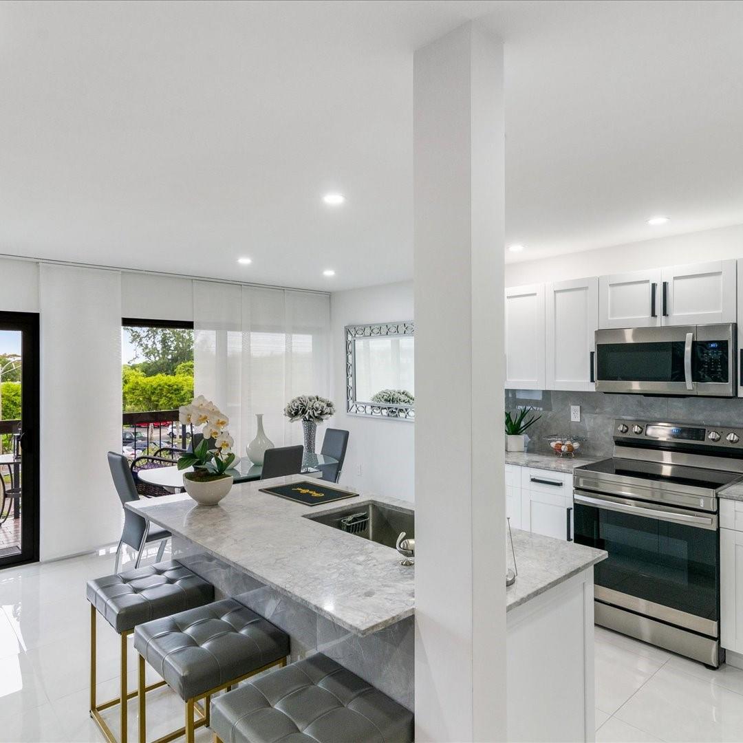 Step into this fully upgraded corner unit featuring two spacious bedrooms and two modern bathrooms. Located near FIU, Florida International University. This stunning apartment, bathed in natural light thanks to expansive impact windows, offers an open concept layout with a seamless flow between the living, dining, and kitchen areas. The unit boasts high-end finishes, including premium floors, custom cabinetry, and top-of-the-line appliances and new roof. Both bathrooms with contemporary fixtures like towel warmers, two assigned parking spaces, and storage. Enjoy additional perks like ample closet space, in-unit laundry, and a private balcony.