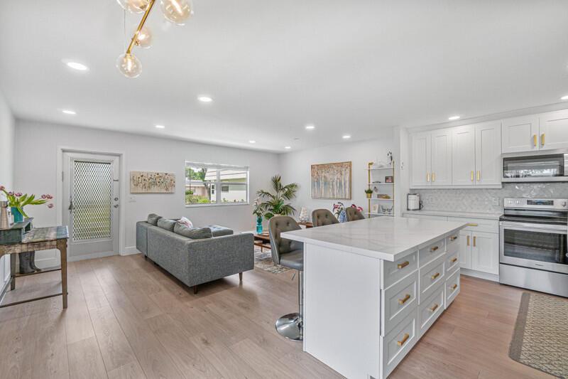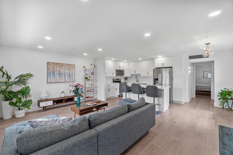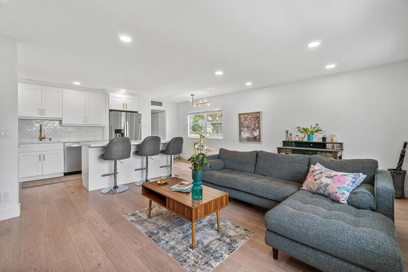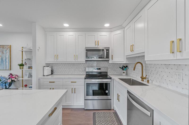 Turnkey and completely renovated 1/1.5 plus enclosed Florida room in Valencia section of Kings Point. This corner apartment shows like a model with a gorgeous white kitchen with large island, quartz countertops, and stainless steel appliances. Luxury vinyl flooring throughout, two renovated bathrooms, smooth ceilings, and lots of windows with natural light. Kings Point is a premier 55+ community with 24/7 gate access and a state of the art clubhouse facility with multiple pools, tennis, clubhouse, fitness center, restaurant, card rooms, and the list goes on.