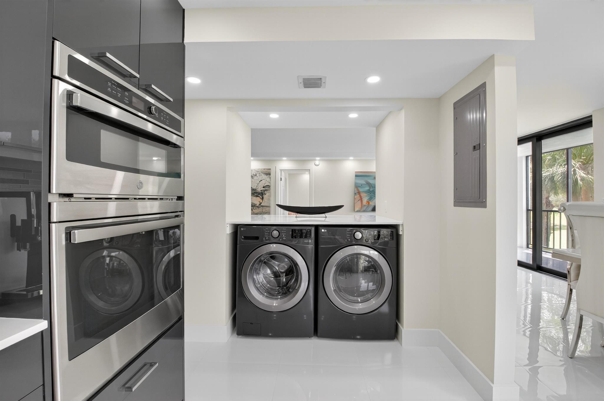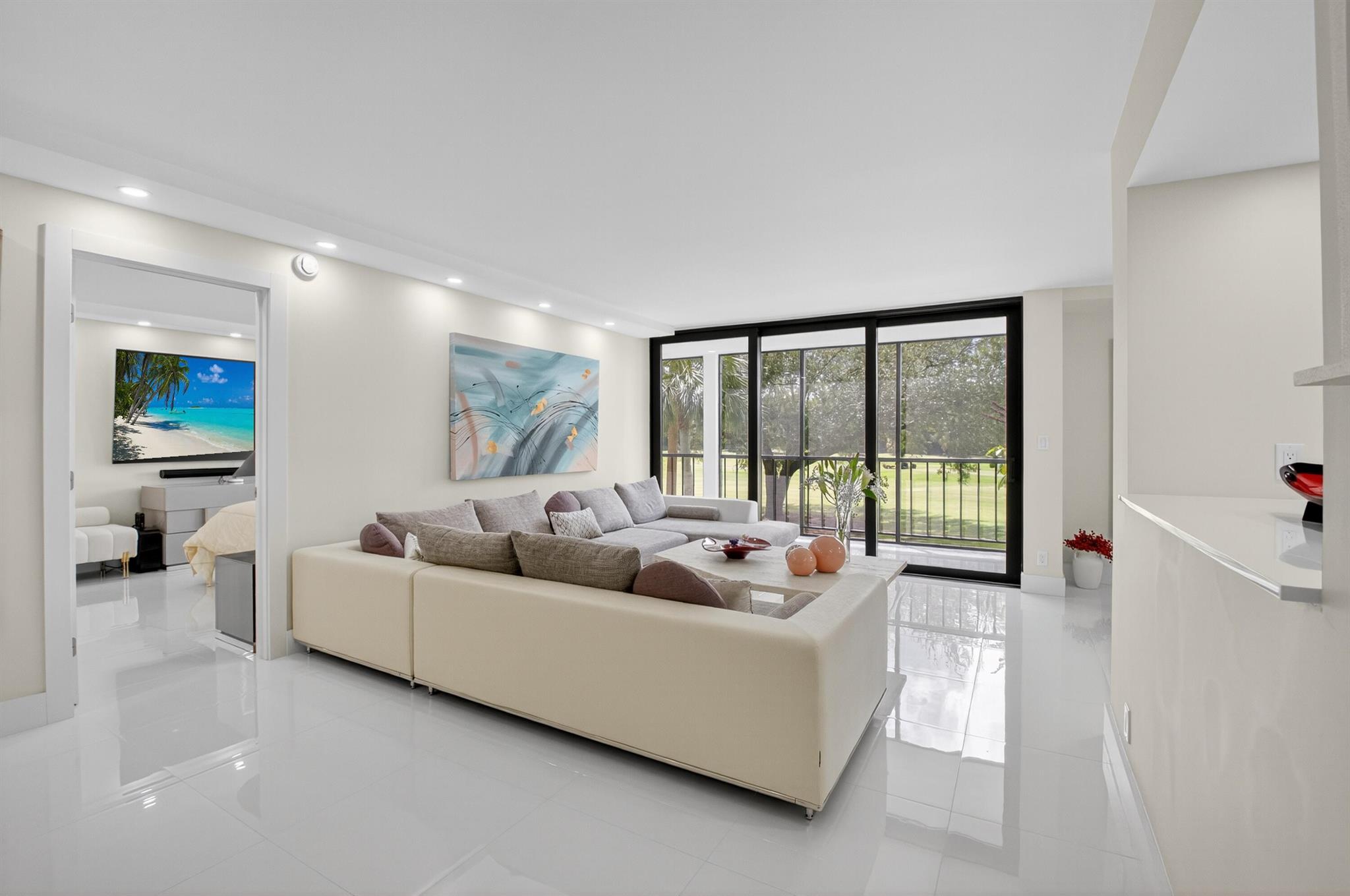 Unique unit, Complete renovation in 2024. Impact glass. New air conditioner. New hot water unit. Brsand new kitchen with 36 inchEuropean style cabinets. Double oven. Bosch refrigerator and dishwasher. Porcellin tile thruout. Golf and pool views, No popcorn. Small patio enclosed providing more air conditioned living space, No popcorn. Mandatory membership. Golf memberships available. Joining fee $150,000. BUY NOW. ENJOY THE BOCA WEST LIFESTYLE,