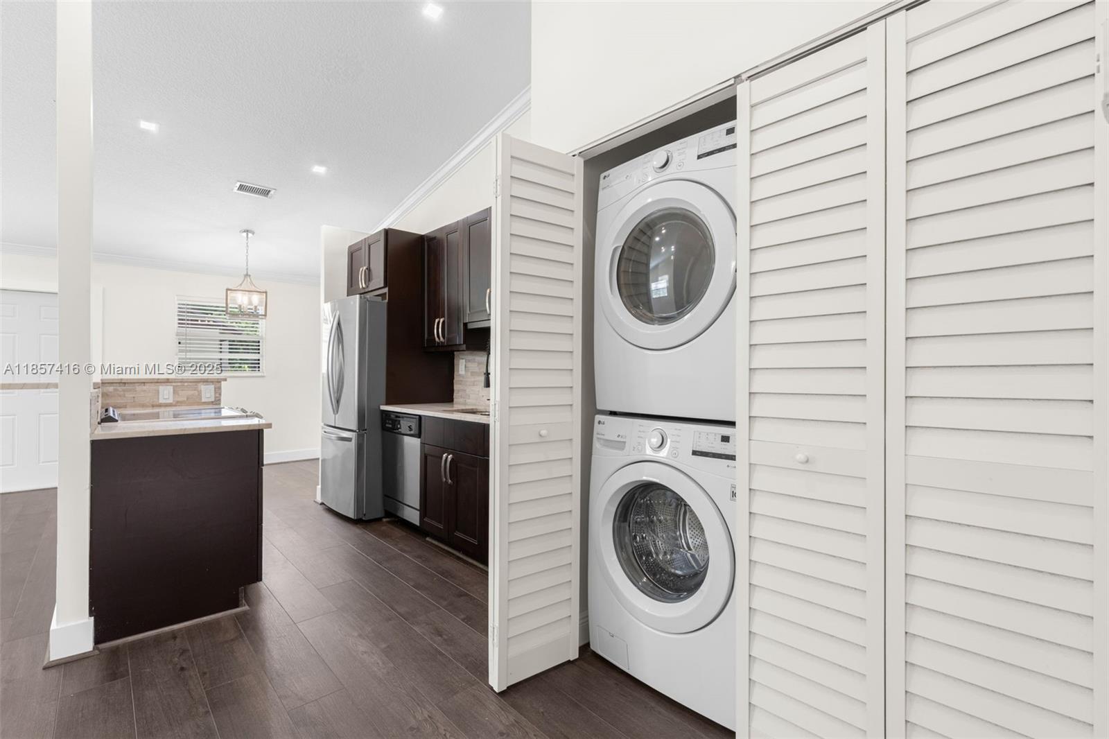 MOVE IN READY 2bed/2bath single story CORNER villa in an ALL AGES and PET FRIENDLY community. Enjoy this light bright corner unit w/ beautifully updated open concept kitchen with QUARTZITE (top of the line stone) counters with stacked stone backsplash & stainless steel appliances. Bar seating for casual dining or enjoy dinner in the dining room. Recessed lighting and ceiling fans provide plenty of brightness. Popcorn ceiling has been removed!! Both bathrooms have been updated and the entire unit has been freshly painted with new baseboards. AC is 5 years old. ROOF IS 1 YEAR OLD. Newer stackable washer/dryer. The patio is perfect for BBQ or relaxing with friends. LOTS OF OPEN GREEN SPACE on the side and back of unit for kids to play. Close to I-95/Turnpike/shopping. FHA/VA/Conven