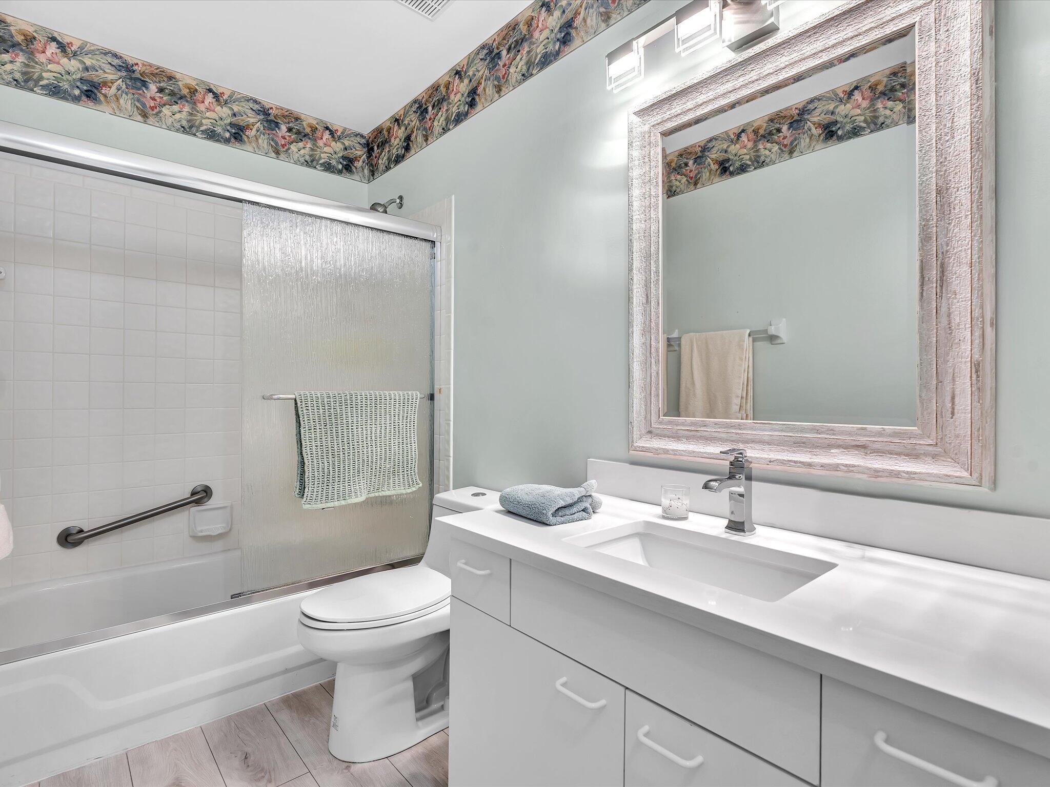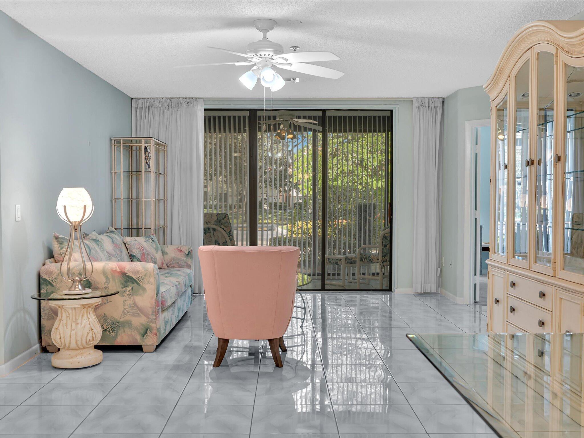 Well maintained ground floor unit with 3 bedrooms and 2 partially updated bathroooms. Home is centrally located close to everything Boynton Beach has to offer and only about 3.5 miles from the beach! This all ages home is located in Platina offering a gorgeous clubhouse, resort style pool, gym facility, cafe, tennis, pickleball, and so many other amenities and activities! Home is priced to sell and easy to show so schedule your appointment today!