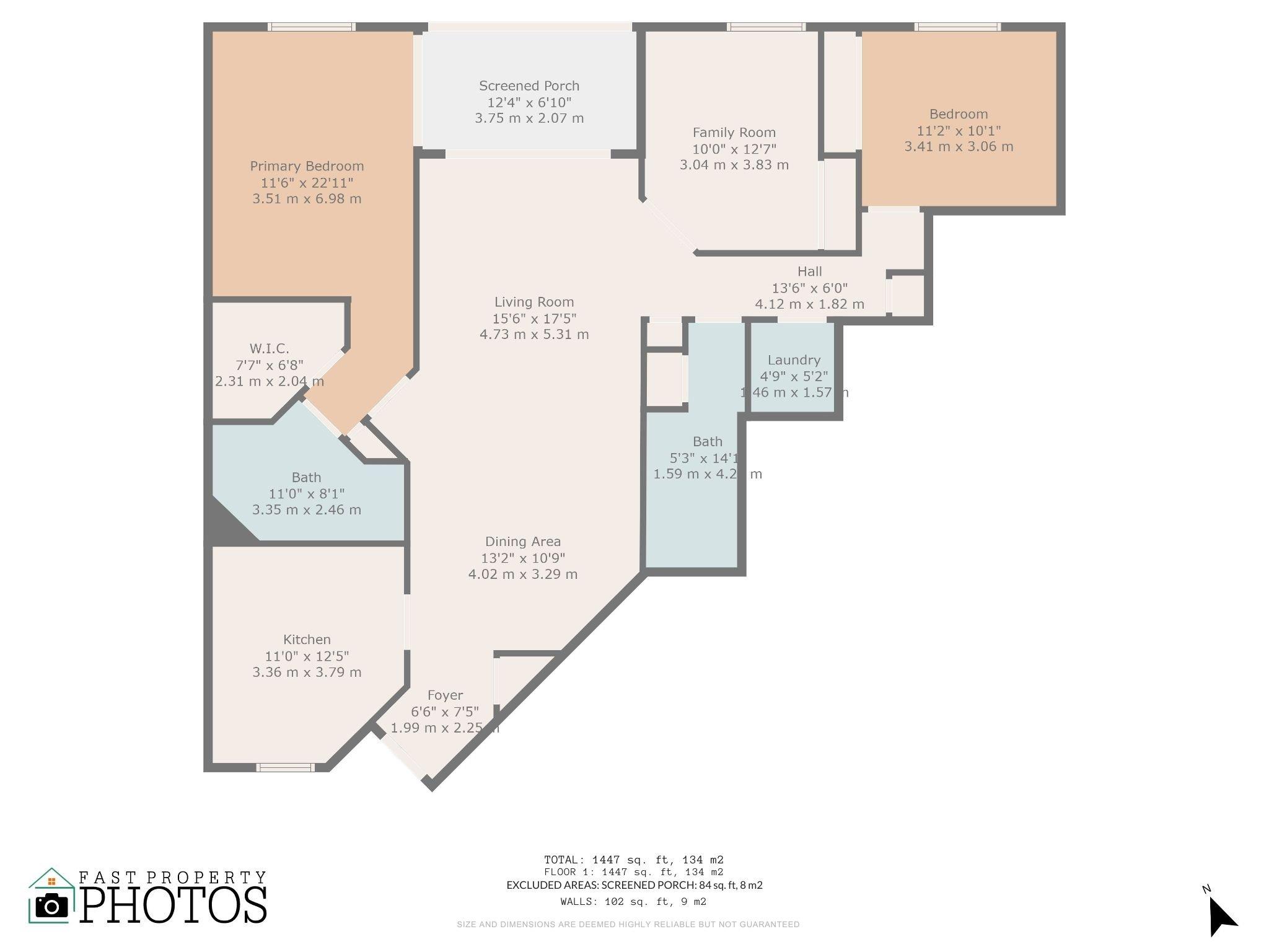 • Living Area: 1447 Ft² / 134 M²