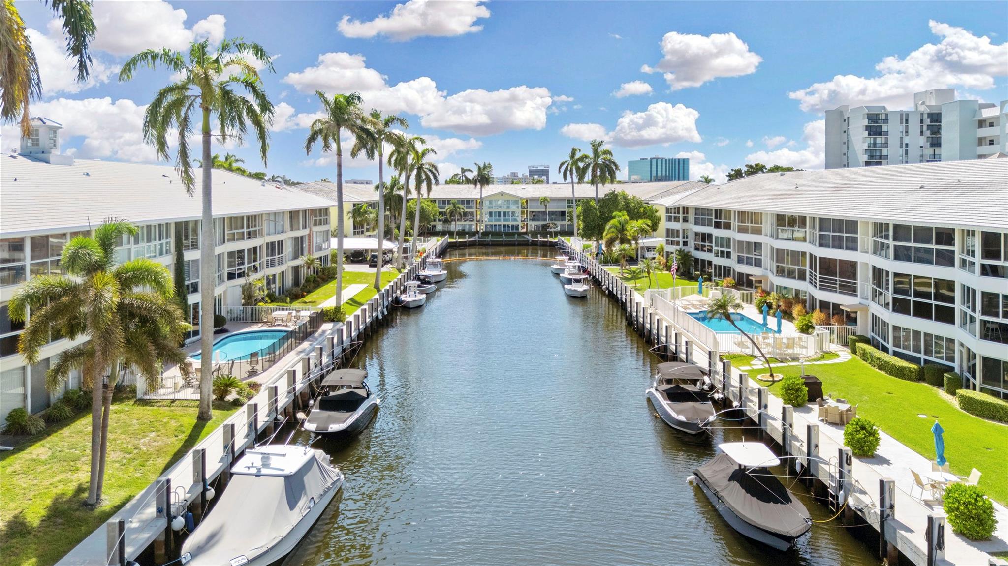 Spacious ground-floor condo just minutes from downtown Lauderdale-by-the-Sea and the beach! Enjoy a large screened balcony with peaceful canal views. The open living area flows into a separate dining space, perfect for entertaining. Open kitchen concept with granite countertops and matching white appliances. The master bedroom features a generous walk-in closet and ample room. Second bedroom has ample space and Jack-and-Jill bathroom adds convenience. Matching tile flooring throughout. In-unit newer washer and dryer make daily living easy. Includes two assigned parking spaces. Community offers great amenities—two pools, dock space, and a fitness center. Ideal for those seeking comfort, location, and coastal living wihtout the hefty price tag. Unit is also for rent annually asking $2950.