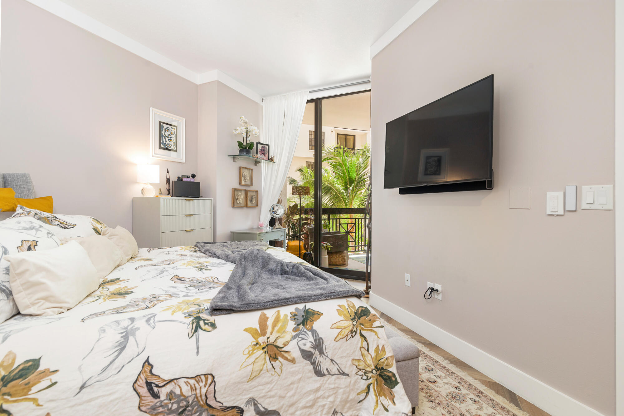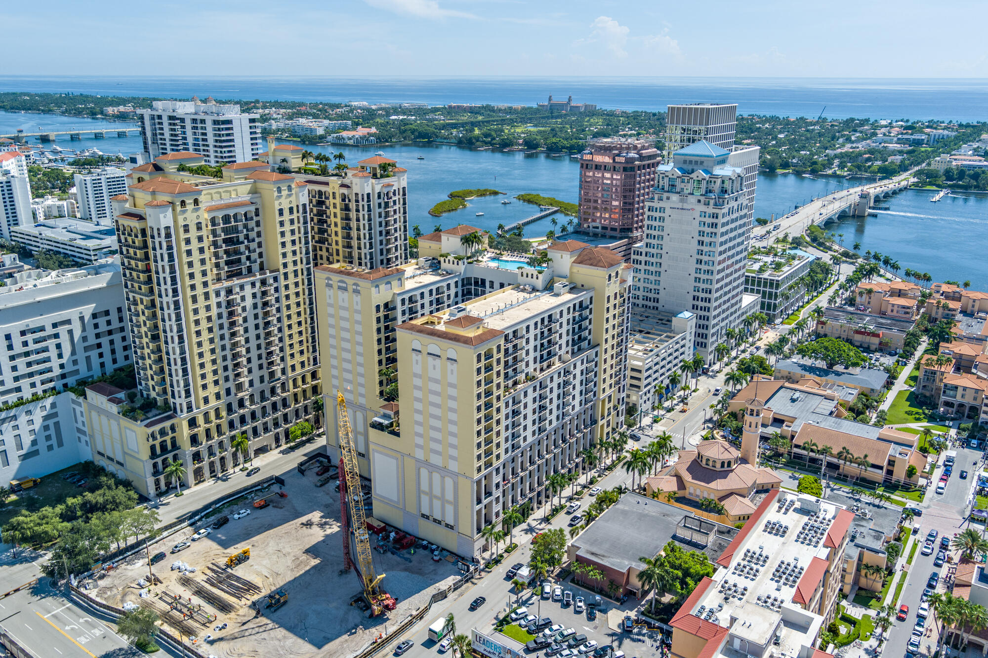 Welcome to your private oasis in the heart of CityPlace, West Palm Beach within the impeccably managed One City Plaza. This stunningly renovated 2BR/2BTH features rich, wood tile flooring, new appliances, an induction stove, California closets, and a spacious split floor plan with separate dining and breakfast bar. Bathrooms are adorned with quartz countertops, Brondell bidets and designer wallpaper. Electric shades, custom lighting, and a wraparound balcony create a serene retreat for you and your pets. Rarely offered: two assigned parking spaces and a storage unit. Enjoy resort-style living with a rooftop pool, new grilling stations, spa, sauna, fitness center, full-time doorman, valet. parking--all steps from vibrant shops, dining and fabulous Palm Beach.
