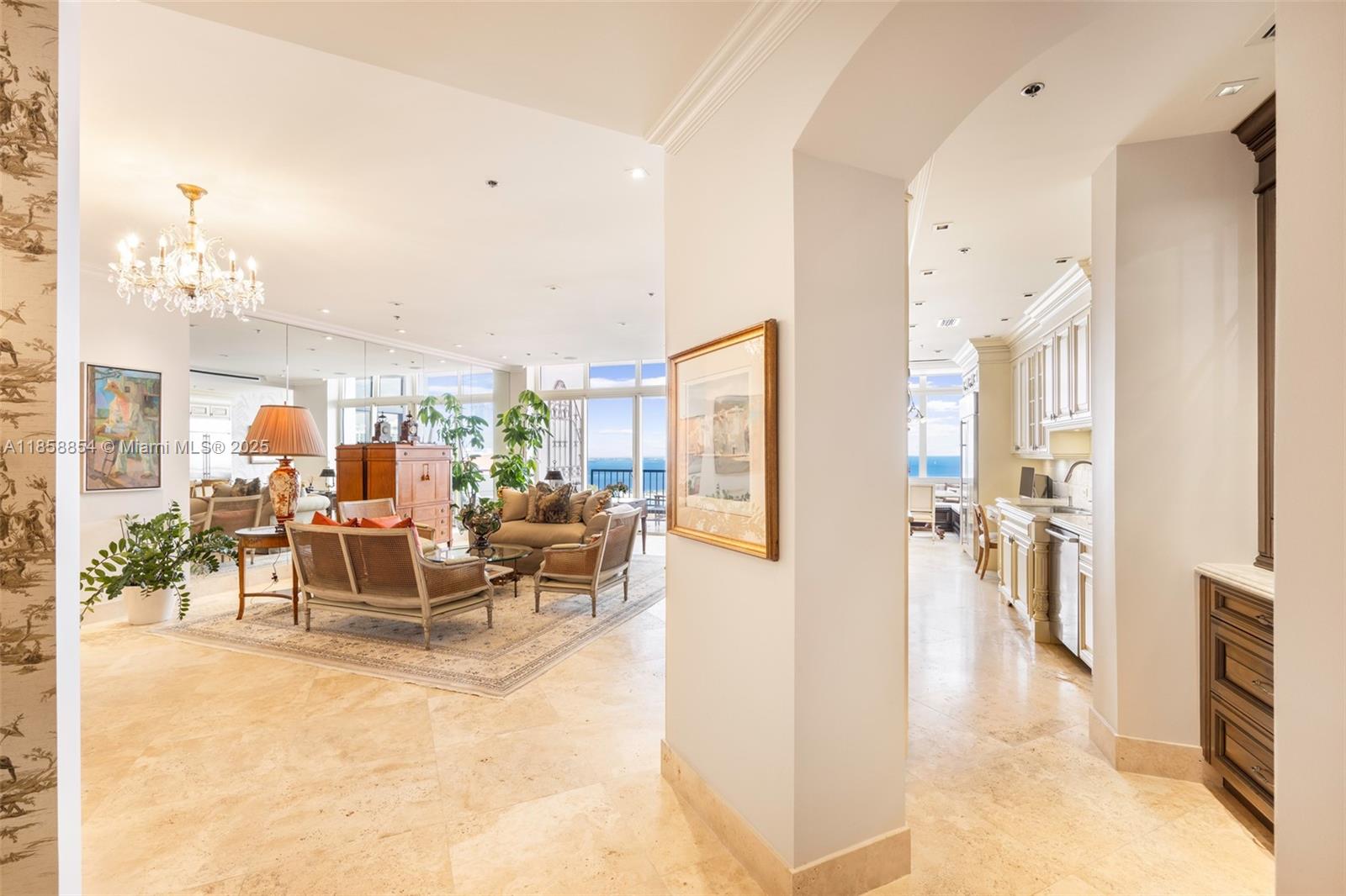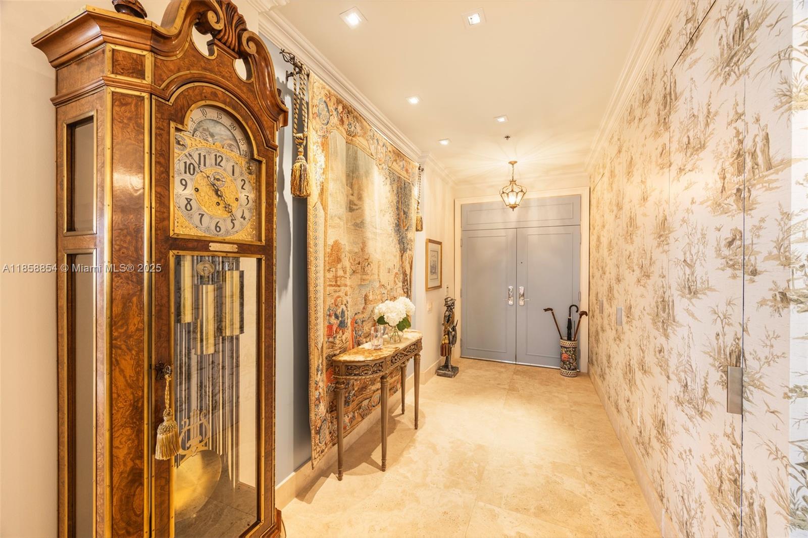 Discover an unparalleled lifestyle in this rarely available lower penthouse at iconic Villa Regina. Experience breathtaking bay views from this fully renovated residence featuring 12-ft ceilings, marble floors, impact glass & custom millwork. Gourmet kitchen w/ premium cabinetry, wine cooler & built-in breakfast nook. Luxurious primary suite offers a spa-like bath, walk-in closet & private terrace w/ stunning views. Spacious second bedroom & versatile walk-through den/library add functionality. Full-size laundry/utility rm. 2 garage spaces. Villa Regina offers top-tier amenities: waterfront pool, marina, gym, spa & more. Located on the quiet side of Brickell, steps from top dining & financial district. Enjoy a unique lifestyle that offers a vibrant city life in a serene, perched retreat.