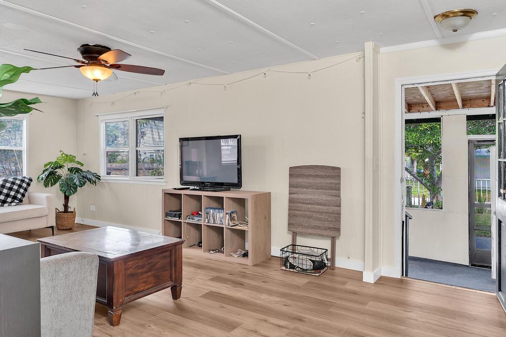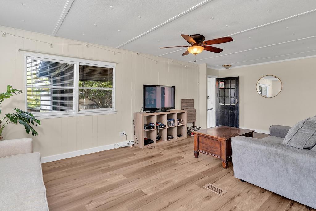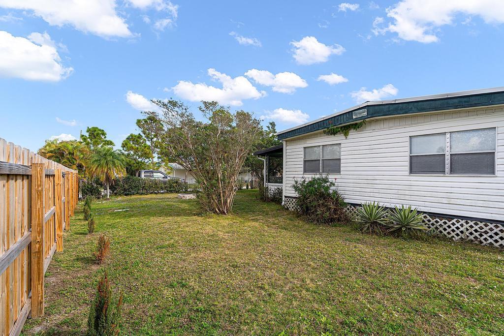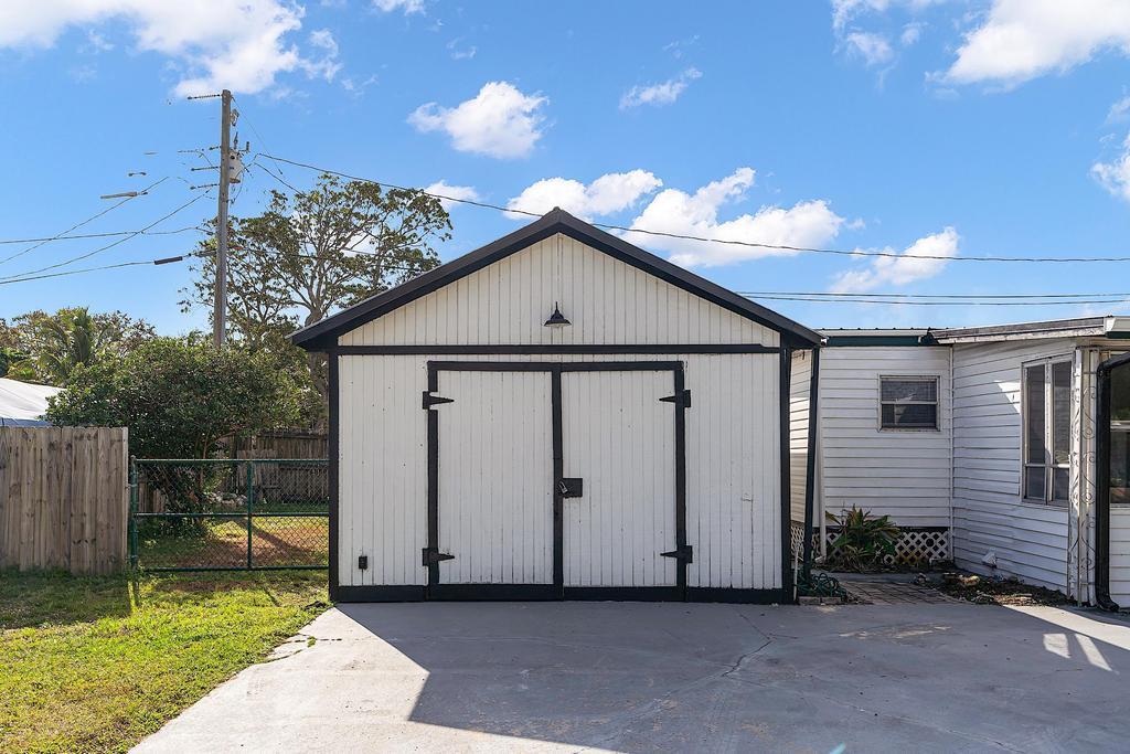 Old Florida welcomes you home. Spacious mobile home with detached garage on your private fenced-in lot, you own the land! No HOA. Home is complete with 2 bedrooms, 2 baths, a screened-in porch, laundry and plenty of space to spread out. Located in Hobe Sound down a quiet street, surrounded by nature, close to restaurants, shopping and minutes to the beach. Financing available. Property is currently leased through October 2026.
