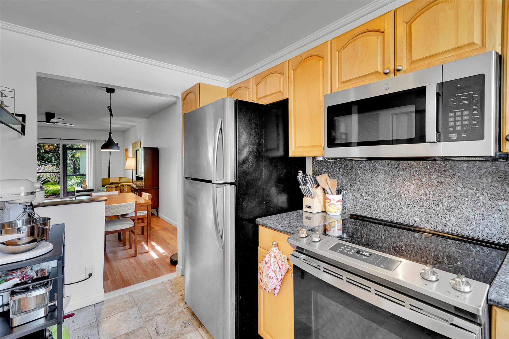 AMAZING LOCATION!!! THIS CHARMING CORNER UNIT IS THE PERFECT PLACE TO CALL HOME. LOVELY VIEW OF THE RIVER AND ALL THE BEAUTIFUL VEGETATION IN THE BACK YARD, WONDERFULLY PRIVATE, FEELS LIKE A LITTLE VILLA, AND THERE IS A BRAND NEW COMMUNITY BBQ VERY CLOSE TO YOUR BACK DOOR! THE KITCHEN BOASTS 2024 SINK, OVEN/STOVE, MICROWAVE, AND WASHER/DRYER IN ONE MACHINE. SMART THERMOSTAT INSTALLED FOR A/C. LOVELY LAMINATE FLOORING AND NEW LVP FLOORING IN THE SECOND BEDROOM AND THE PRIMARY BATH. EASY ACCESS TO WILTON DRIVE AND DOWNTOWN FT. LAUDERDALE. CORNER UNIT OFFERS AMAZING PRIVACY AND AN EXTRA WINDOW! GREAT ASSOCIATION, UP TO DATE ON CERTIFICATIONS AND INSPECTIONS, THEY ALSO HAVE RESERVES.