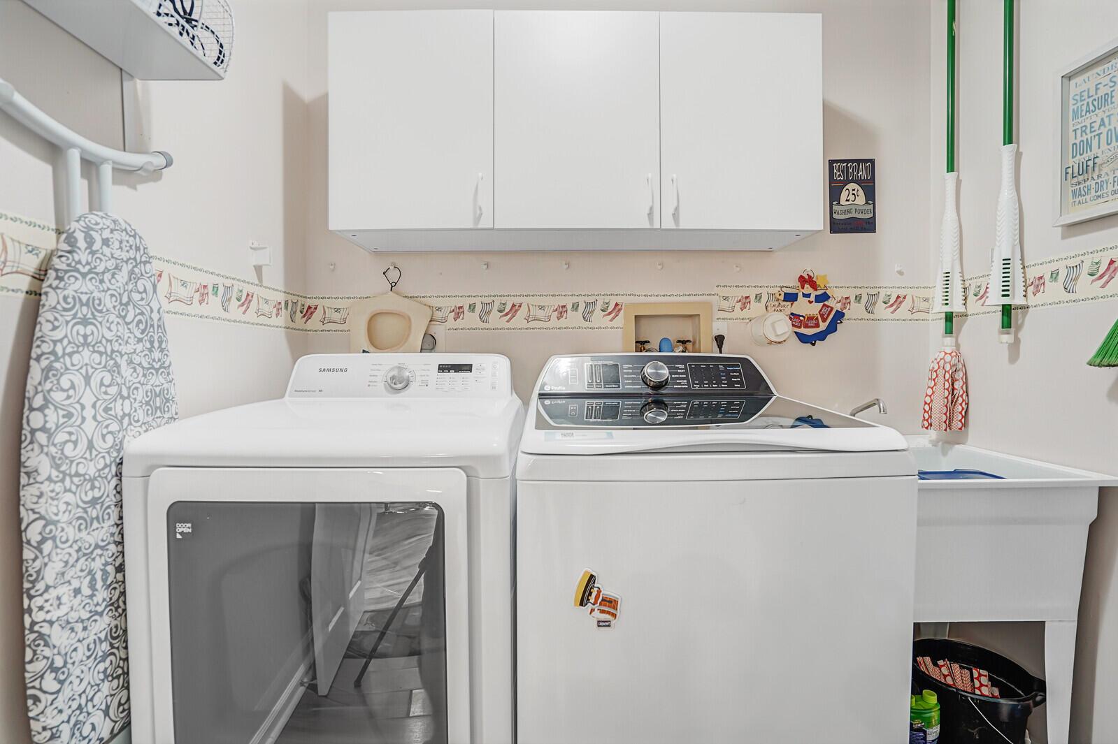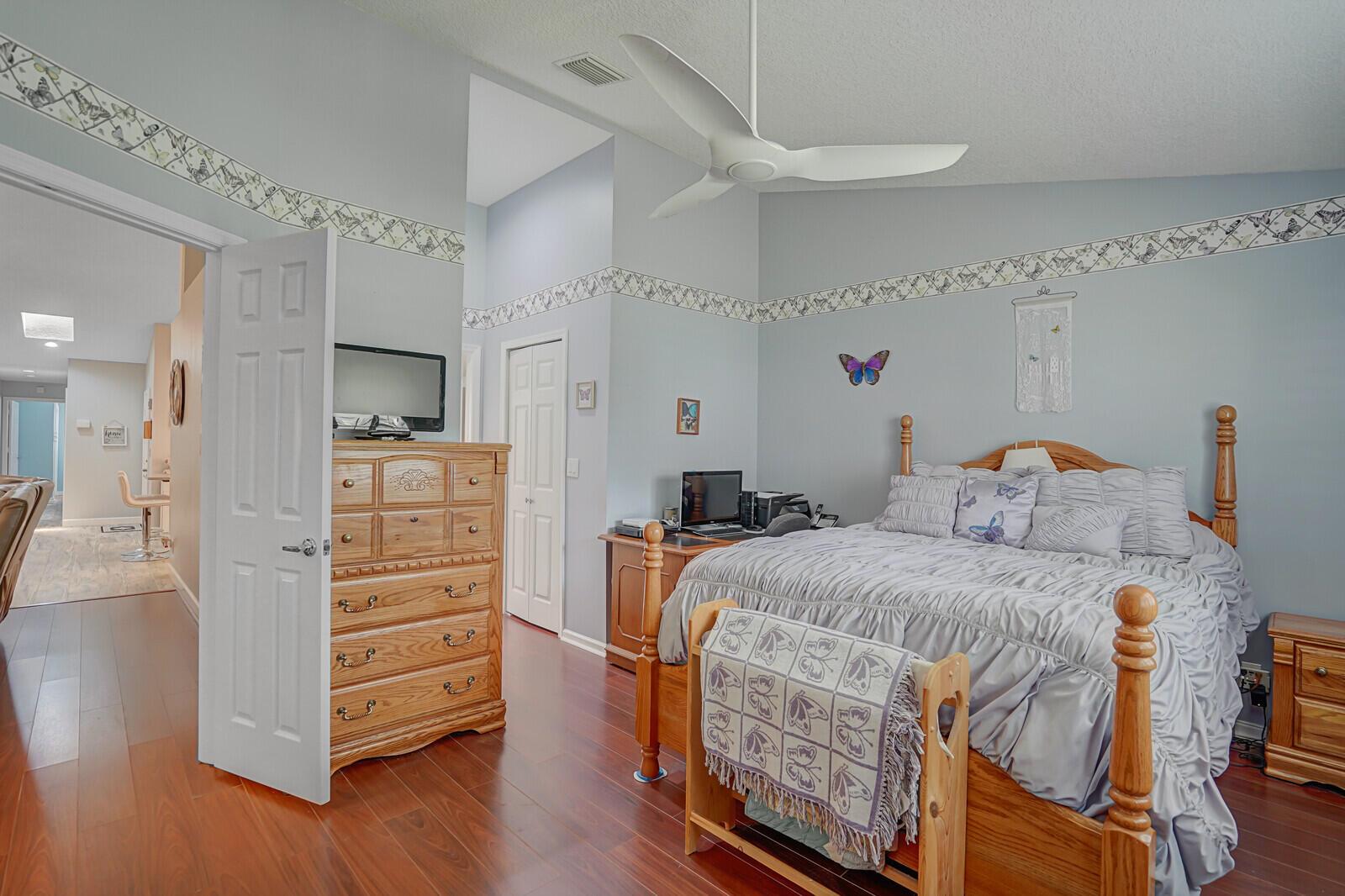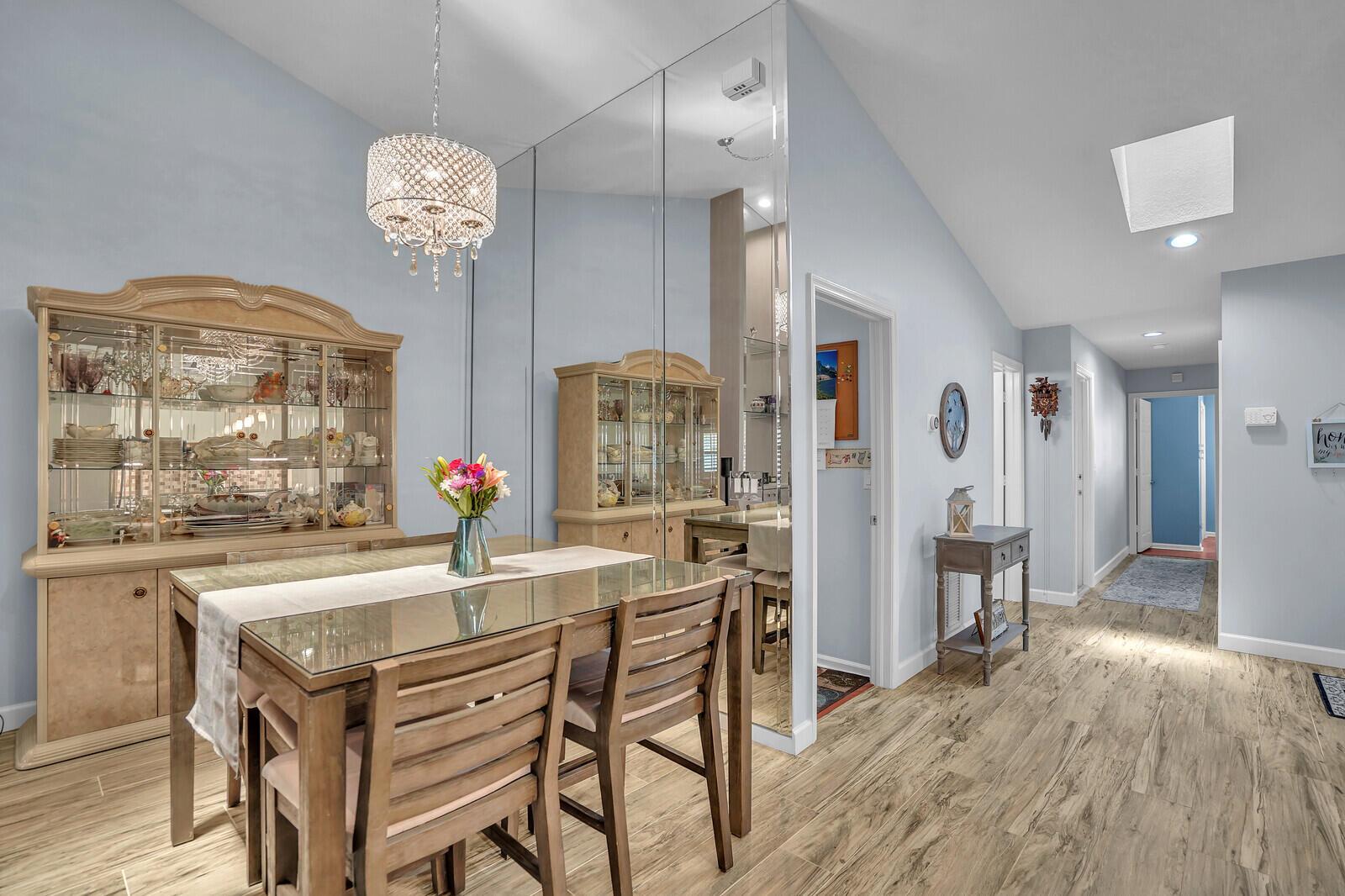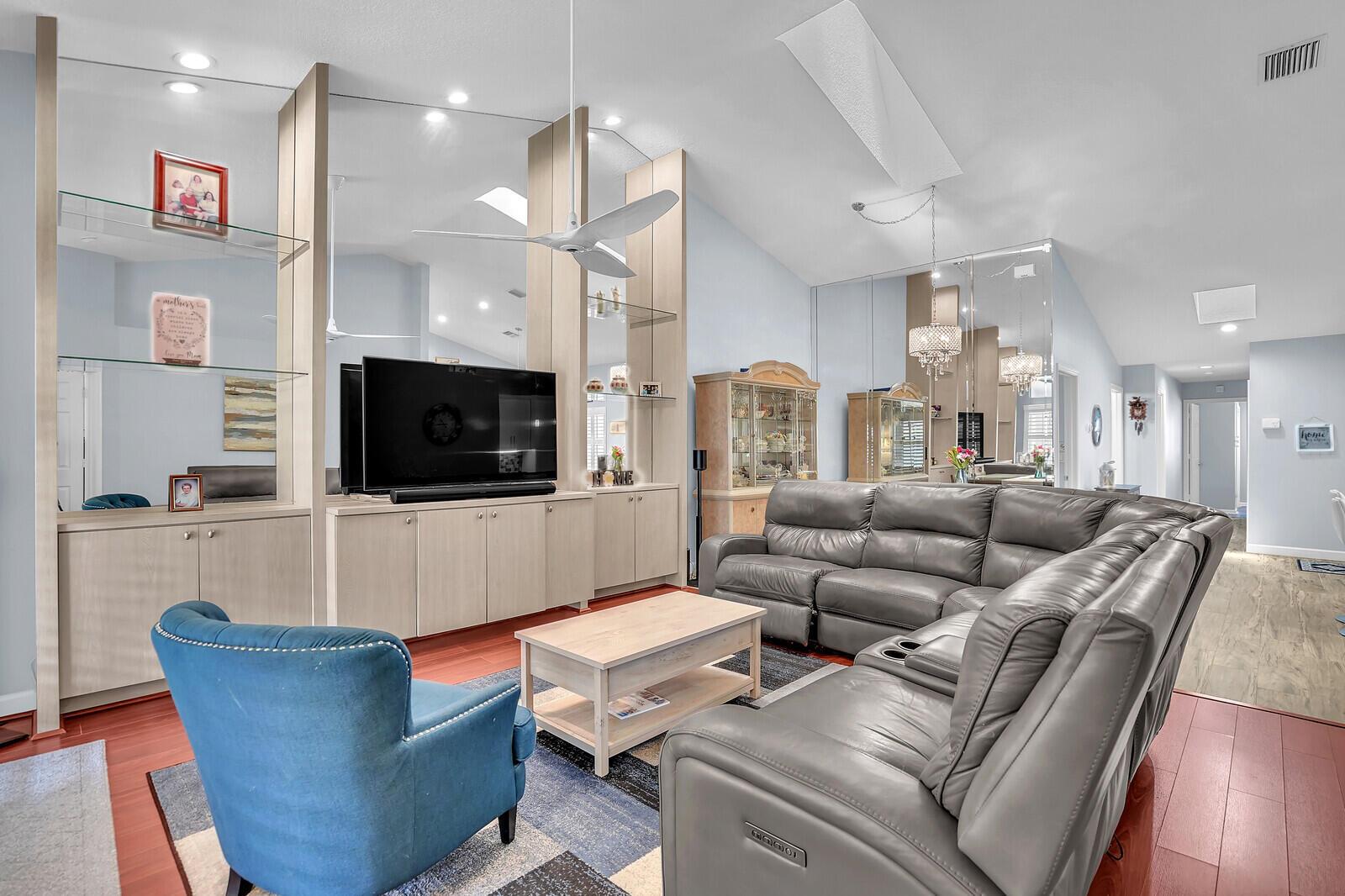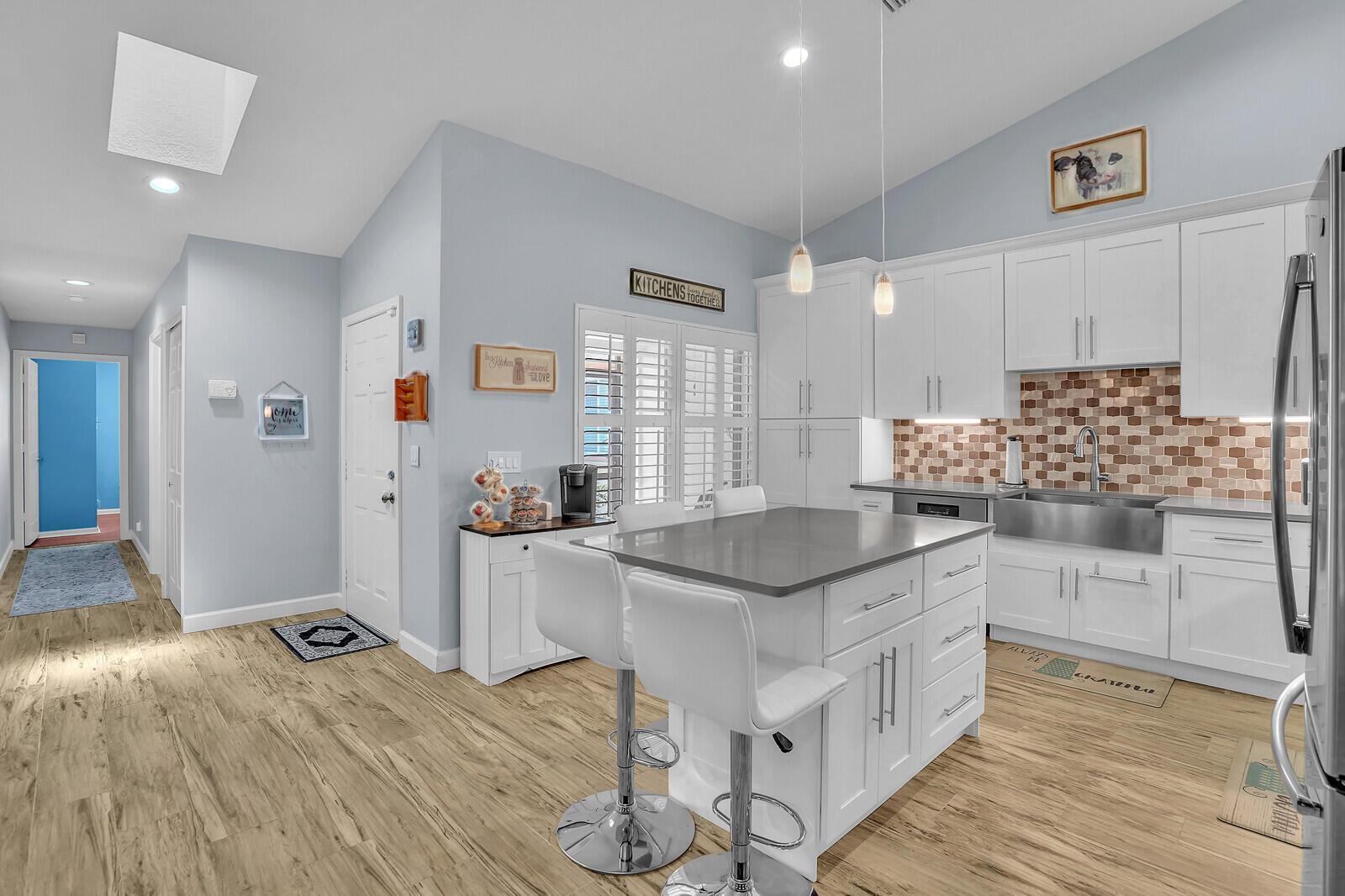 Brand new AC intsalled 09/11/25, Turn-key 3-bed, 2-bath home in Lantern Walk with garage and soaring ceilings. Updated kitchen features soft-close cabinets, farmhouse sink, backsplash, and stainless steel appliances with wood/tile flooring flows throughout. Custom closets in bedrooms . Accordion shutters, tile patios, screened front & back porches, and new pavers for grilling -- unique in community. New gutters & painted fascia (2024),plantation window treatments throughout home, epoxy garage floor, and 10-year roof maintained by HOA. Laundry with washer, dryer, and utility tub. Ceiling fans in living room & bedrooms do not convey; seller will replace or credit. Walk to clubhouse; close to shops and dining. Ready for any buyer!