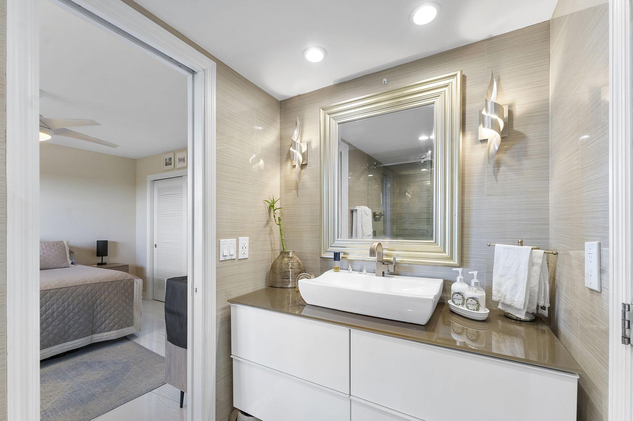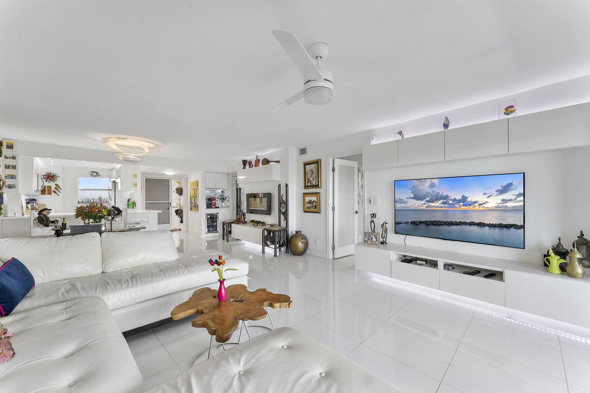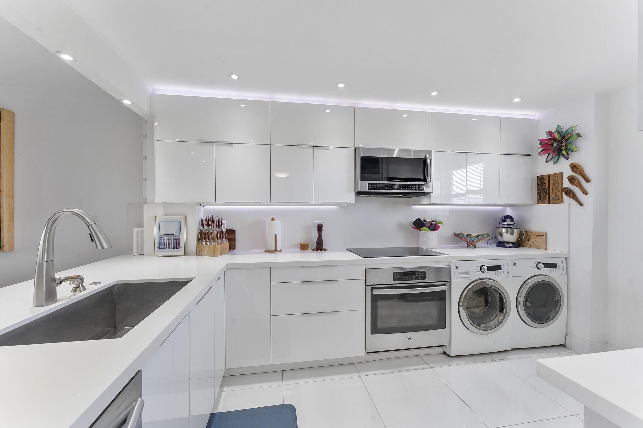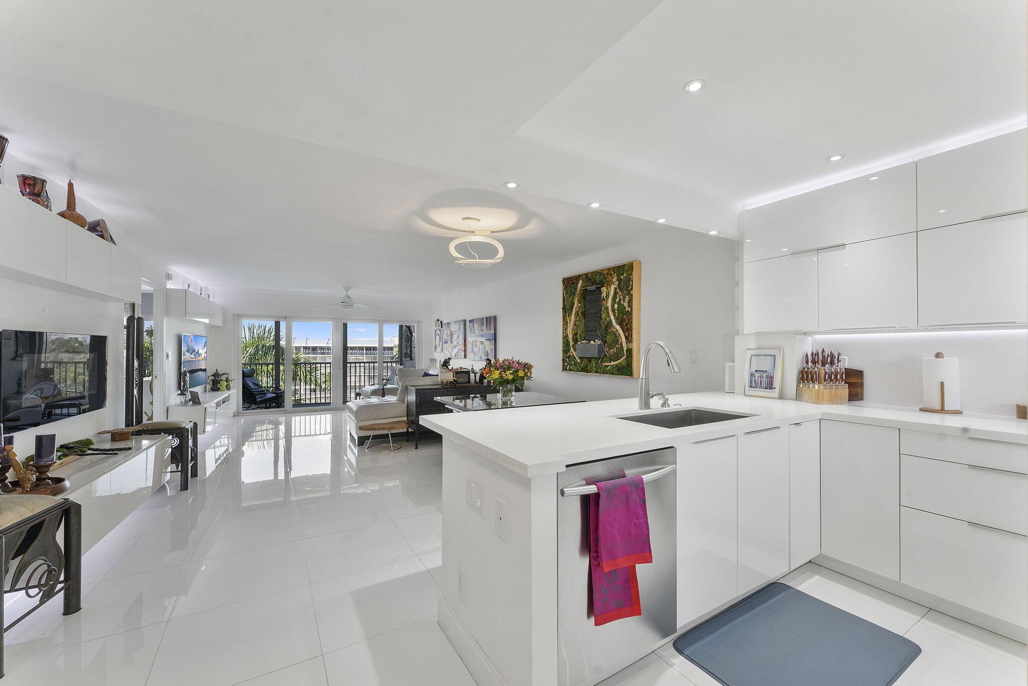 Your perfect waterfront condo awaits. Come see this beautifully renovated 2-bedroom, 2-bathroom condo. It features a bright, open floor plan with gleaming white tile flooring throughout and plenty of natural light. The kitchen has sleek white cabinetry and appliances, including a built-in oven and cooktop.