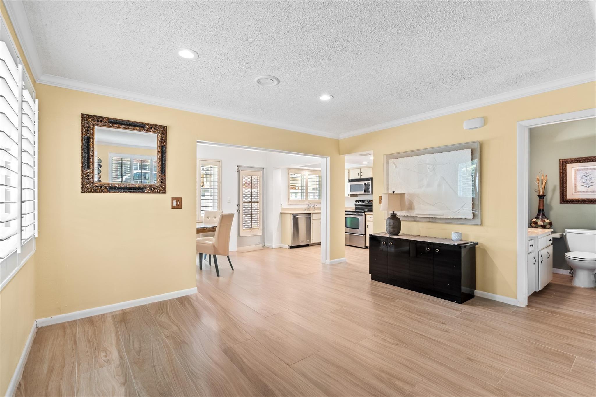 This corner unit offers a relaxed coastal lifestyle with thoughtful updates throughout. Ceramic tile flooring, impact windows and doors, and plantation shutters add comfort and ease. From the back door, you’ll catch glimpses of the ocean, to check the beach before heading out. The community includes a private deeded parking space, private deeded beach access to the shoreline, and a heated pool that’s perfect for every day swims. Inside, the unit is bright and welcoming, making the space feel open and inviting with plenty of natural light. With its tranquil setting and year-round livability, this home works equally well as a permanent residence or a low-maintenance retreat close to the beach, offering the best of Florida living and the convenience of coastal comfort.