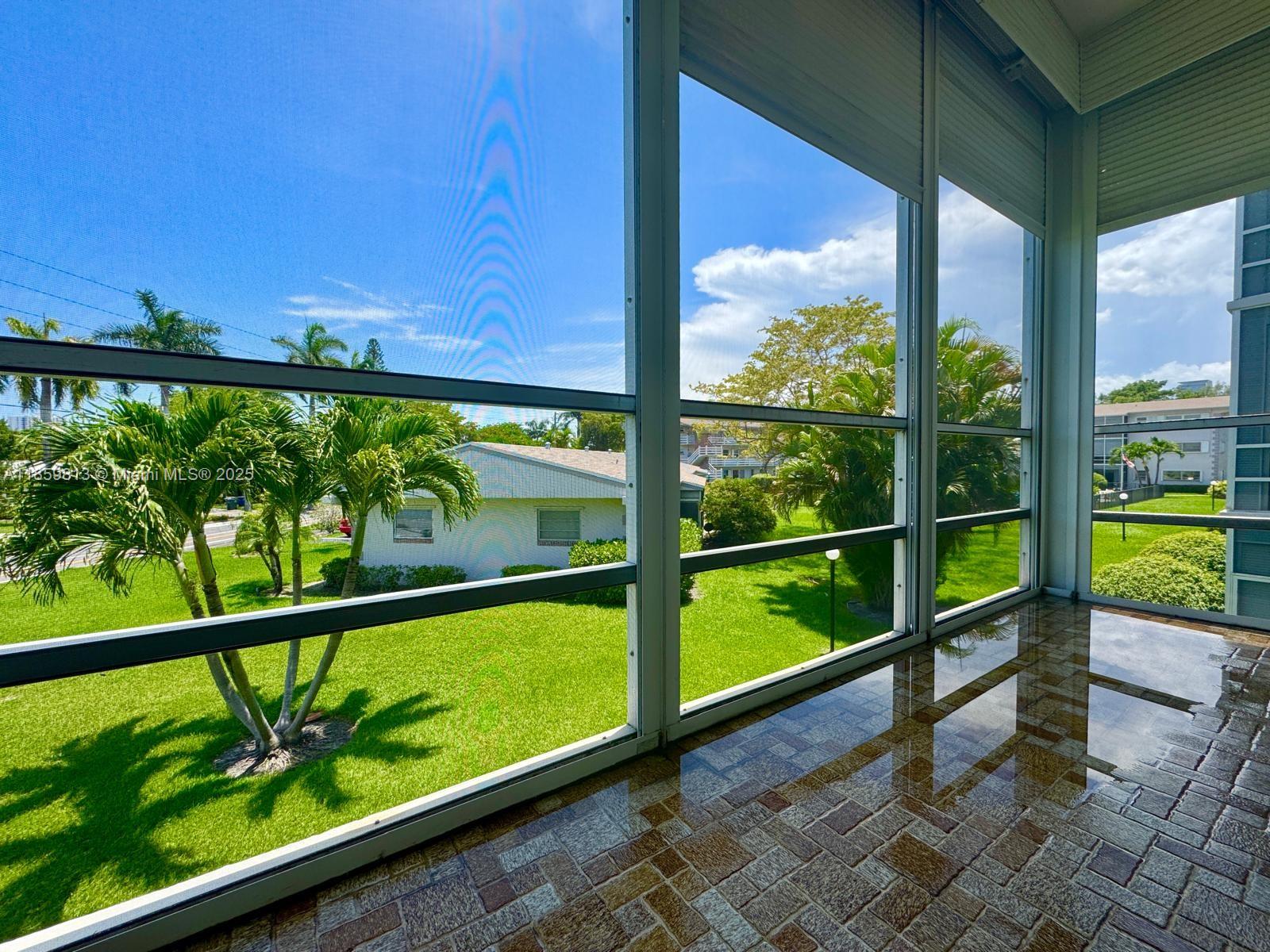 Nestled within the secure and highly desirable Golden Isles gated community, this one-bedroom, one-bathroom condominium is just minutes from the beach. The unit features a hurricane-impact slider that opens to a private screened-in porch with tranquil garden and pool views. This inviting outdoor space overlooks lush green surroundings, perfect for relaxing or entertaining. Residents enjoy a variety of community amenities including a BBQ and picnic area, clubhouse, community room, swimming pool, shuffleboard, vehicle wash area, trash chute, and elevator access. Ideally located, the property is only minutes from shopping, dining, and groceries, and less than one mile from Gulfstream Park Racing & Casino.