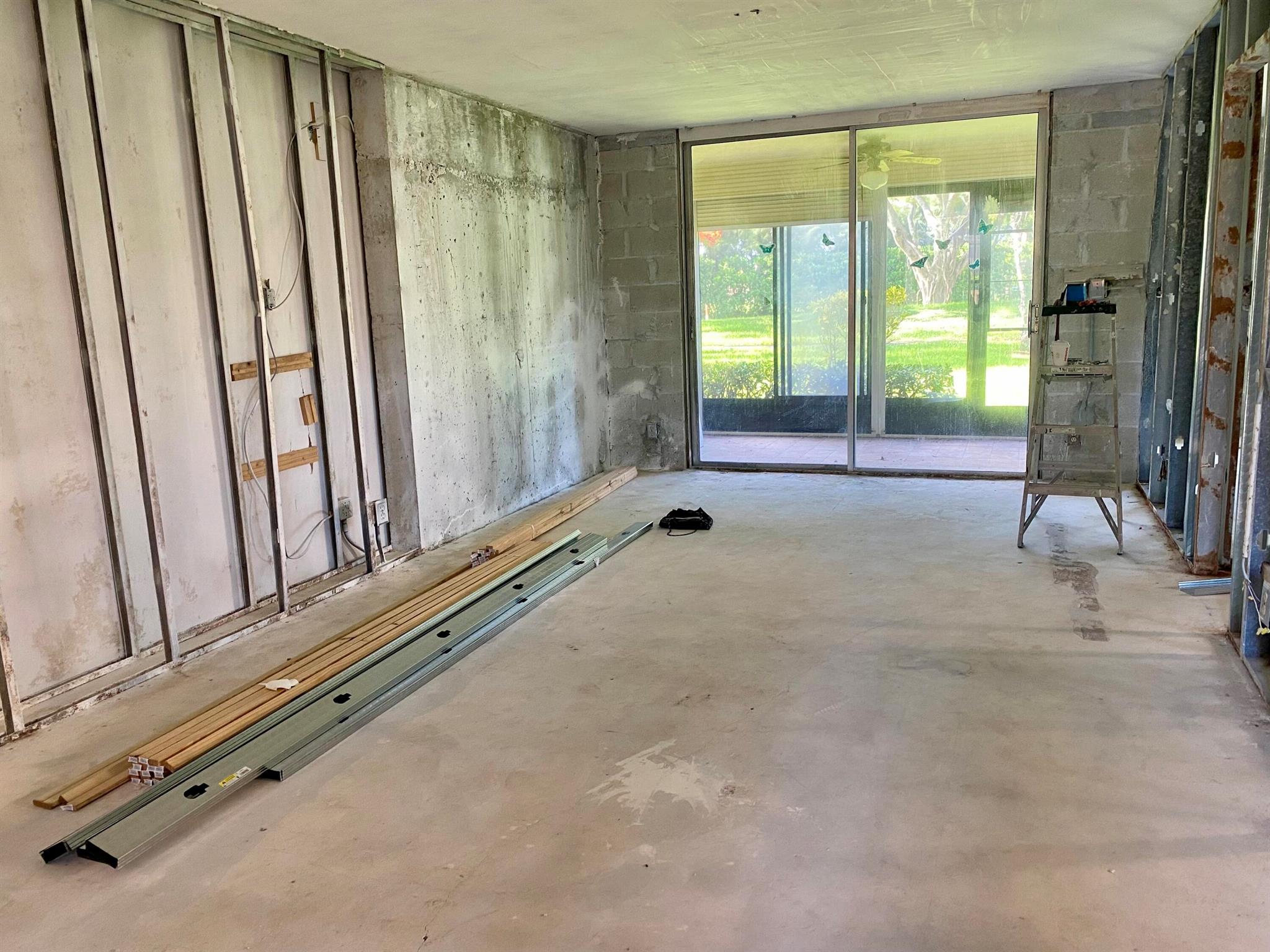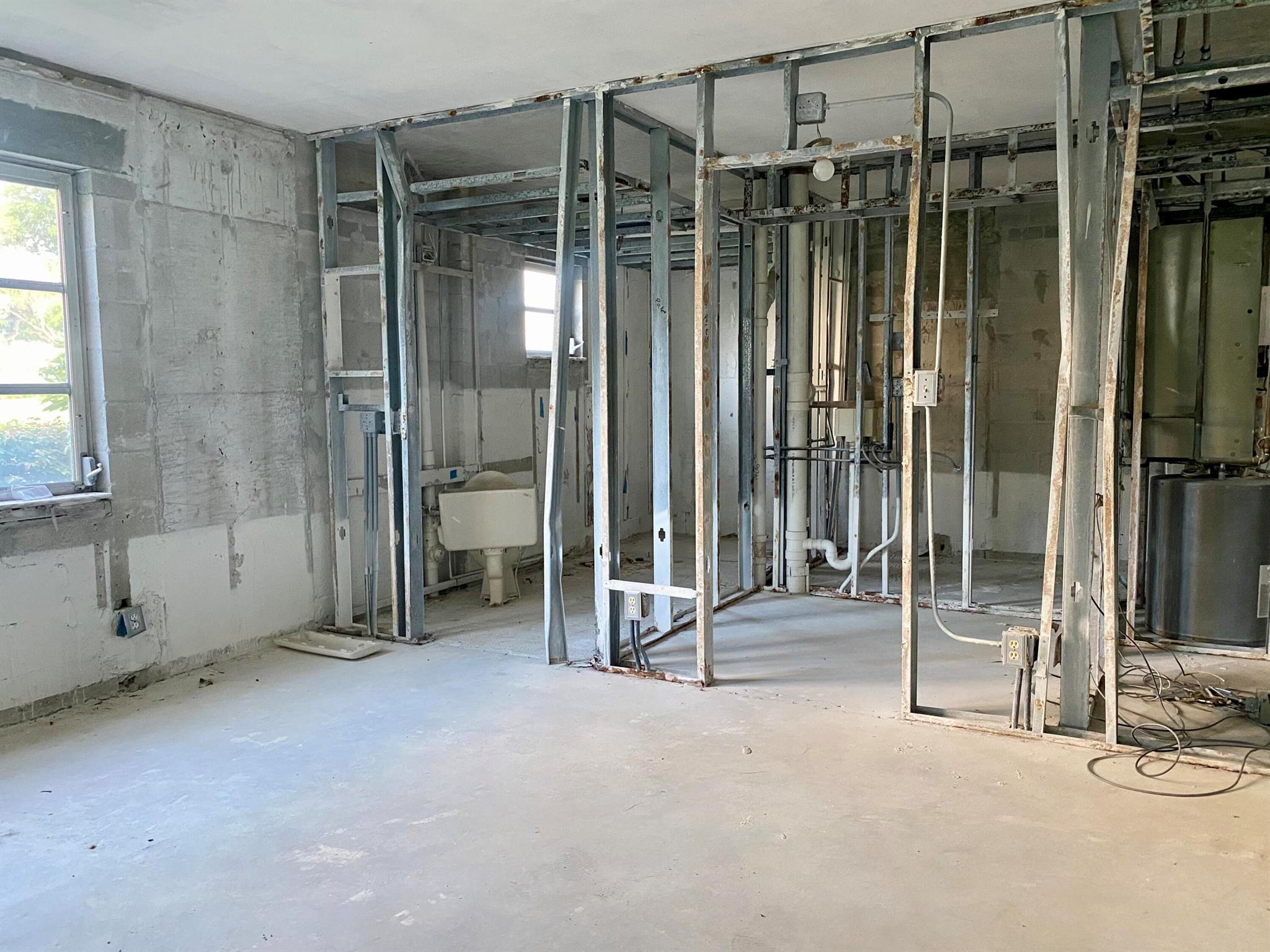 This 2 Bedroom/2 Bath true corner Condo has been taken down to the studs, offering a true blank canvas to design your dream home. completely gutted and ready for renovations, it gives you the freedom to create a brand new living space tailored perfectly to your style and needs. Located in a gated community with an updated clubhouse, indoor pool,Updated clubhouse, pickleball, tennis and many clubs to join. Located 15 minutes from .downtown Delray and beaches, you will enjoy both convenience and lifestyle in one location.