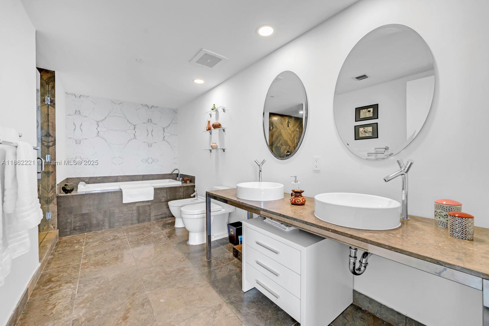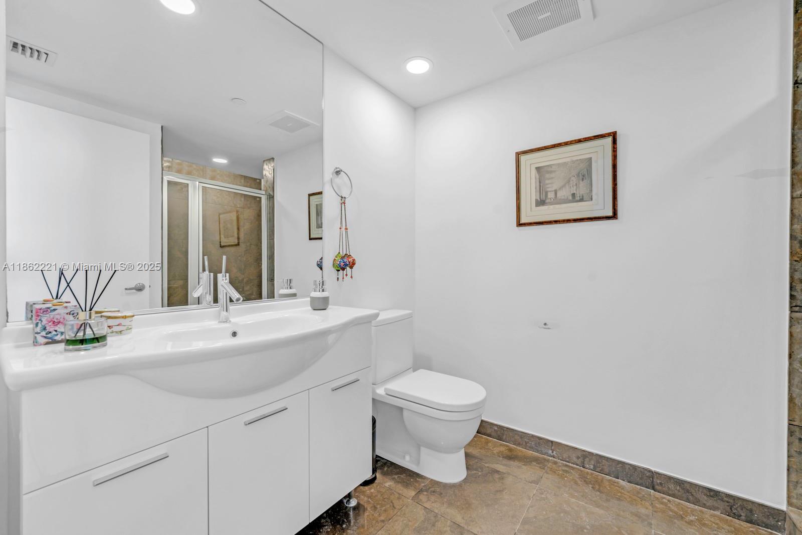 This exceptional 2-bedroom, 2-bathroom corner unit on the 50th floor, offers breathtaking water and city views through floor-to-ceiling impact windows. The residence features elegant Italian white porcelain tile throughout, an open kitchen with premium stainless steel appliances (WOLF/Subzero), custom-built closets, and electric curtains/shades. The master suite includes two walk-in closets for ample storage. ICON Brickell offers residents world-class amenities, including two 5-star restaurants, a state-of-the-art spa, an infinity pool, valet service, 24/7 security, a gym, and a theater.