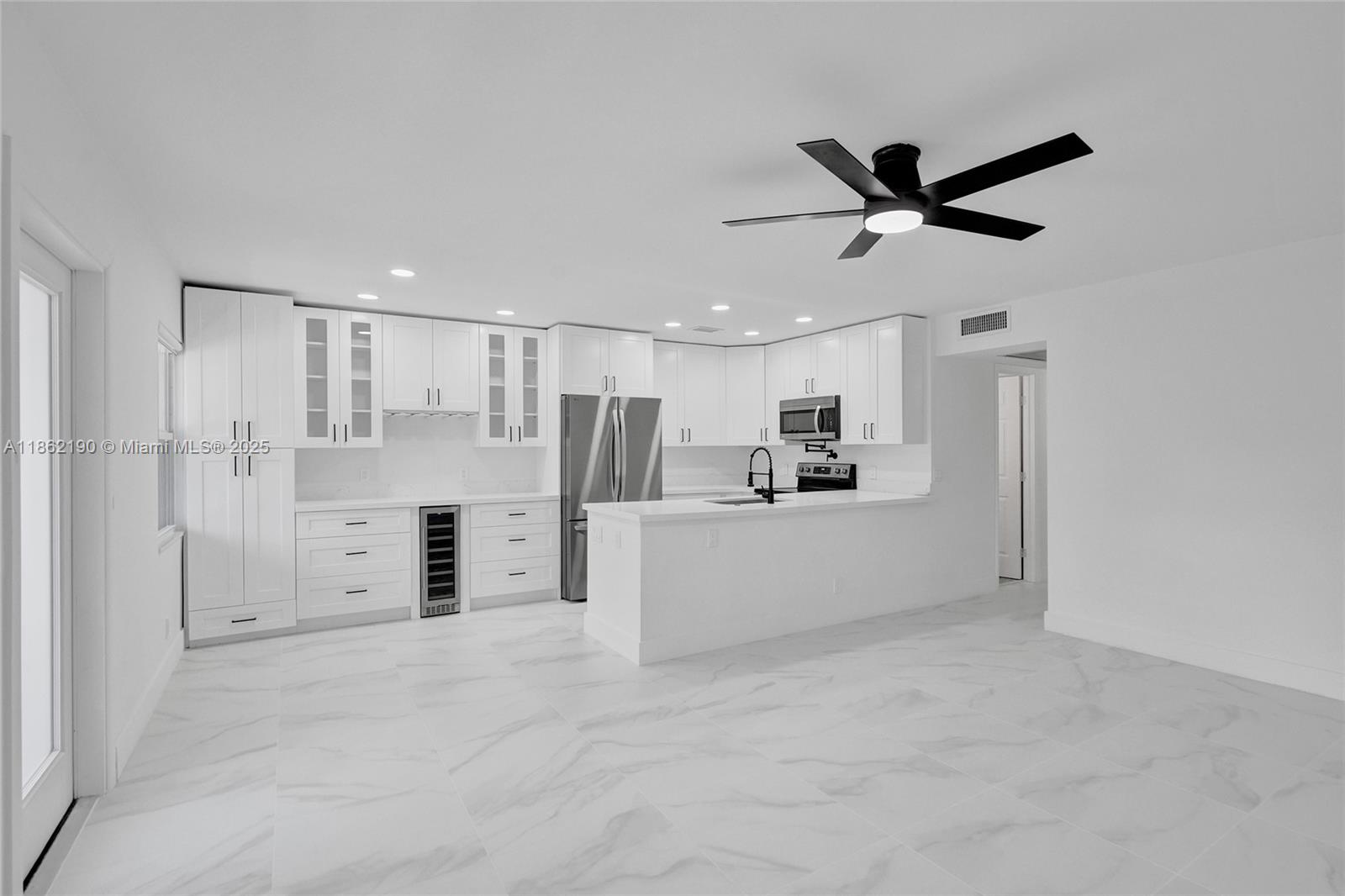 Step into this freshly renovated unit featuring impact windows and doors throughout.The open-concept kitchen is a chef’s dream with ample cabinet space, a pot filler for convenience, and a built-in wine cooler for wine enthusiasts. Enjoy porcelain tile flooring, modern zebra blinds, and beautifully upgraded bathrooms. The community offers courtesy buses to nearby shopping and beaches, plus an array of amenities including multiple pools, theater, exercise room, pickleball courts, and more. This stunning unit truly has it all, don’t miss the chance to make it yours!