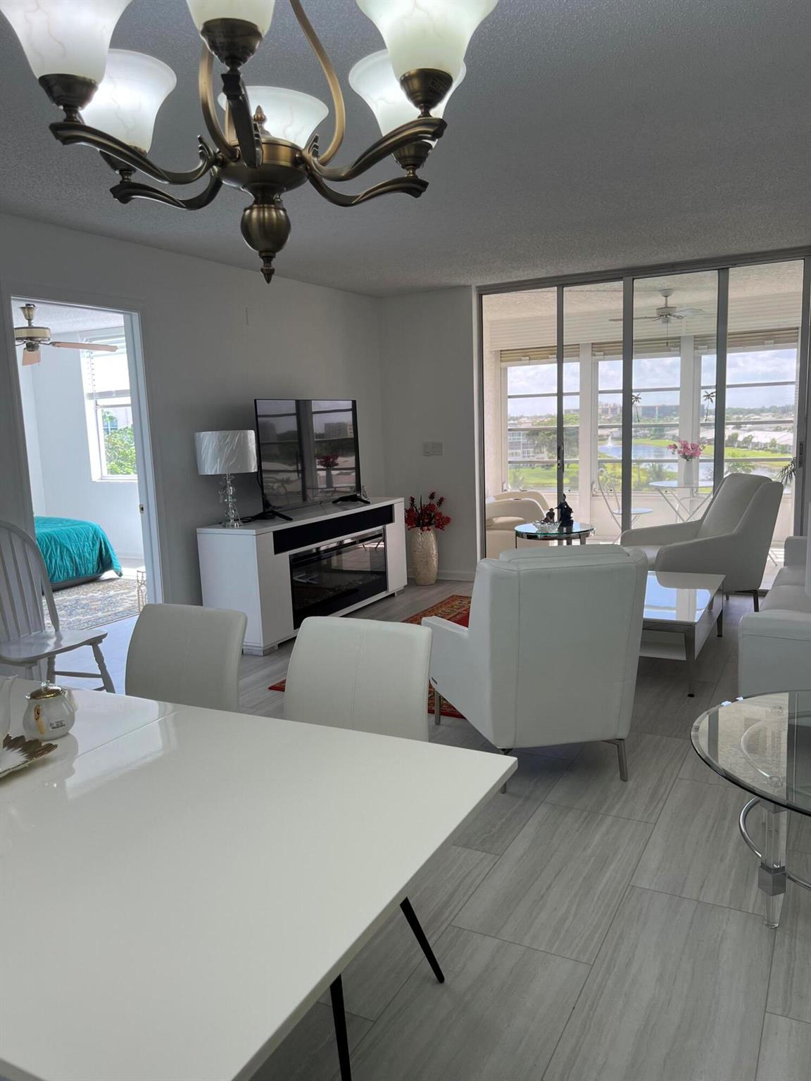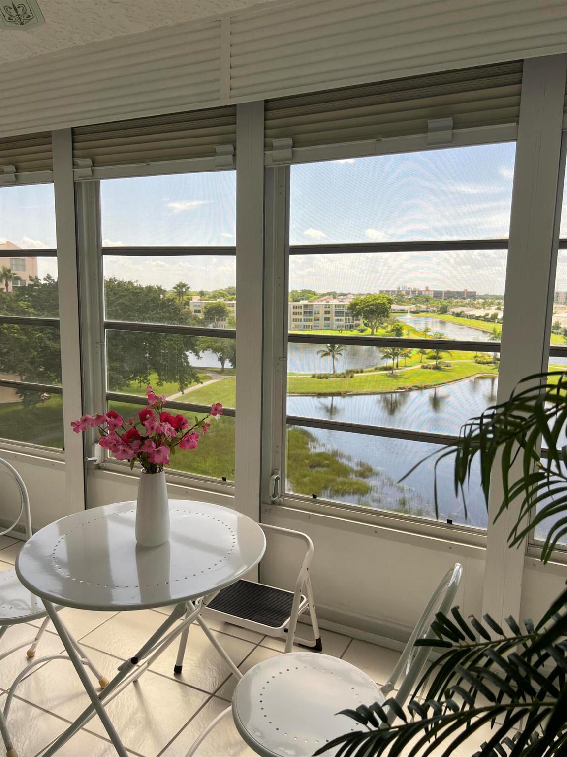 You must not miss this gorgeous home! The building with the most breathtaking views of several Lakes and Amazing Sunsets!. THIS IS WHERE CONVENIENCE MEETS LUXURY 1 bedroom 2 full bathrooms ,in a 55+ community VIEWS! .Beautifully remodeled kitchen and tastefully furnished with El Dorado Furniture. New cabinets, custom corrian counters SS appliances in your Eat in Kitchen with opening to dining/living & VIEWS! Walk in Closet, Laundry inside, extra storage space across the elevator, also trash shoot for your convenience..Social gatherings AT THE CLUBHOUSE and outdoor Amenities: Sauna, pool and shuffleboard COURTS all included. Close to Great Restaurants social Game rooms, Shopping, Hospitals, Less than 5 miles to the most beautiful beaches and renowned DownTown Delray. Did I say Furnished?