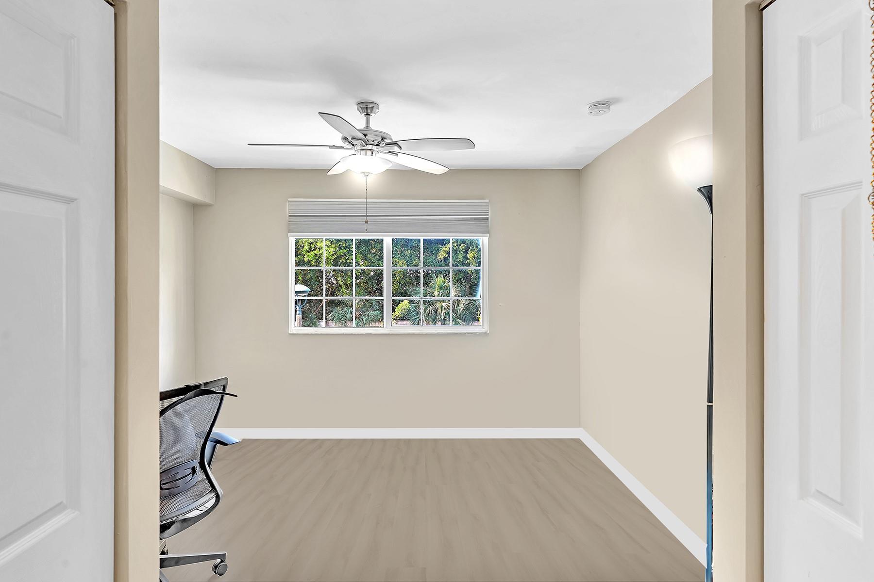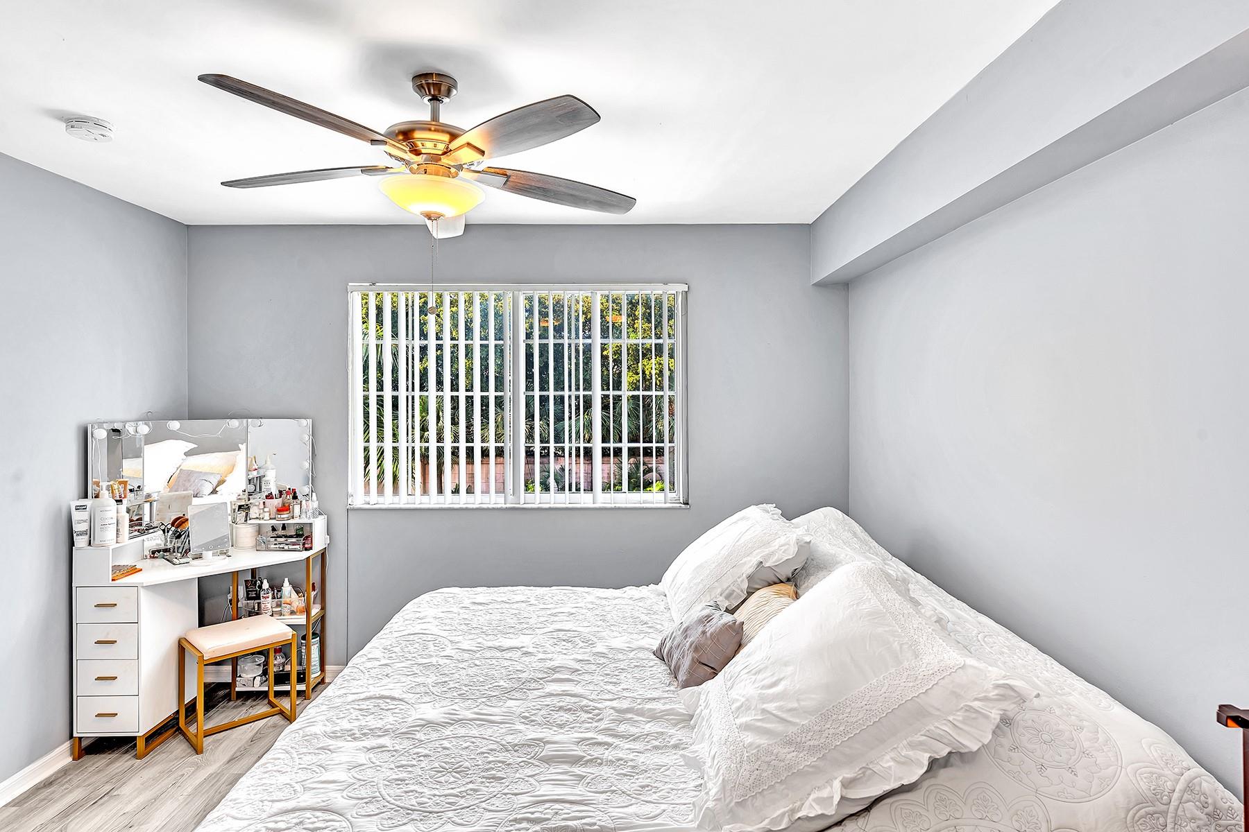 Located east of US1, this beautifully renovated 2/2 unit in the gated community of Village East is close to the beach, airport, downtown, Las Olas, shopping, restaurants and much more. This is a top level unit with Vaulted Ceilings, Walk-in closets, and updates throughout. Updates include light grey hardwood laminate floors in the bedrooms, dark grey floors in the kitchen. One bathroom has been updated with marble on both the floors and in the shower. The second bathroom features a tall sliding glass door and custom shower seat. Replaced both the Air Conditioner & Water heater. This community allows for rentals first year of ownership with a 90-day minimum lease, 2x per year, great for investors or the owner who would like to rent the unit out while not in use