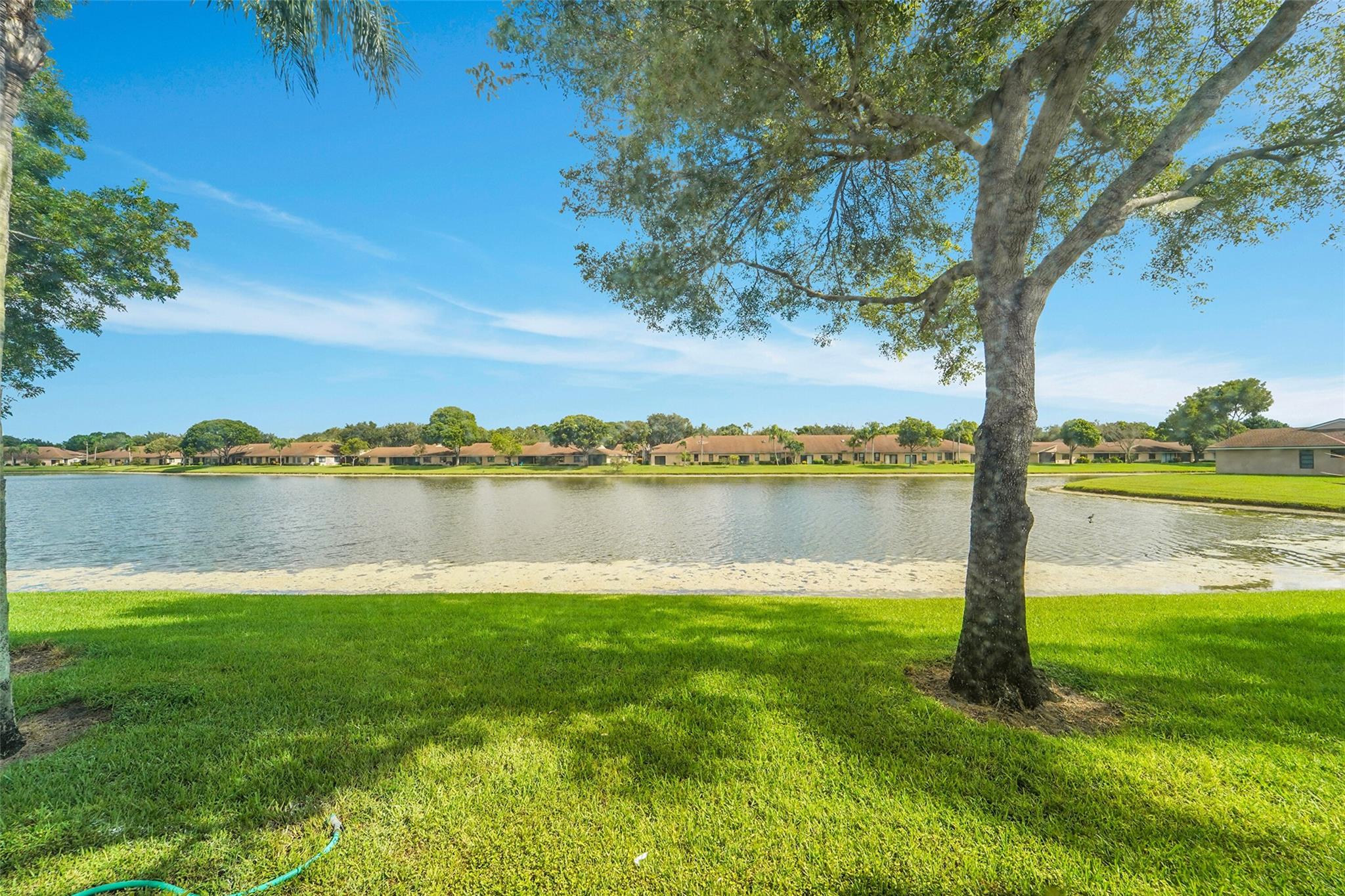 Step into the possibilities with this rarely available, oversized 2-bedroom, 2-bath villa condo with a versatile flex space--perfect for a home office or den. Nestled within the gated 55+ community of Whisper Walk, this well-maintained residence is in nice condition and filled with natural light, creating a warm and welcoming ambiance. The thoughtfully arranged layout includes a spacious kitchen with granite countertops, separate laundry room and attached 1 car garage. The large primary suite boasts a custom walk-in closet and private en-suite bath. Whisper Walk offers a serene, park-like setting with beautifully landscaped grounds and exceptional amenities designed for an active lifestyle. The lake views from this beautiful property are so peaceful & relaxing. Come see it for yourself.