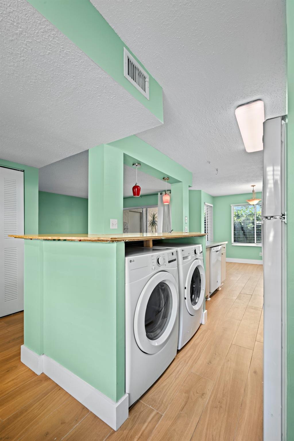 This Condo Qualifies for Low Down Payment! Step into beautiful and airy FIRST FLOOR unit in the desirable Napoli Gardens. Completely open concept with kitchen overlooking the living area. Wood-look tile throughout the main living/kitchen area and laminate in the bedroom. FULL SIZE washer and dryer, AC 2020, walk-in closet, and a private patio with storage closet and NO back neighbors. Small nook perfect for a desk or breakfast table. Resort-style amenities including pool, jacuzzi, tennis courts. PET FRIENDLY (1 pet up to 40lbs, no aggressive breeds). Close to majors highways, shopping plazas, schools, etc. Investor-friendly, can rent immediately. Healthy association and low HOA. Vacant and easy to show! *Note that some photos are virtually staged*