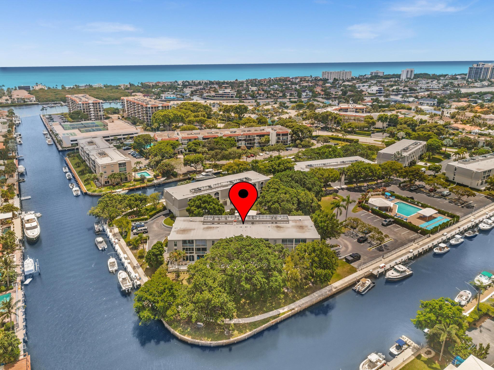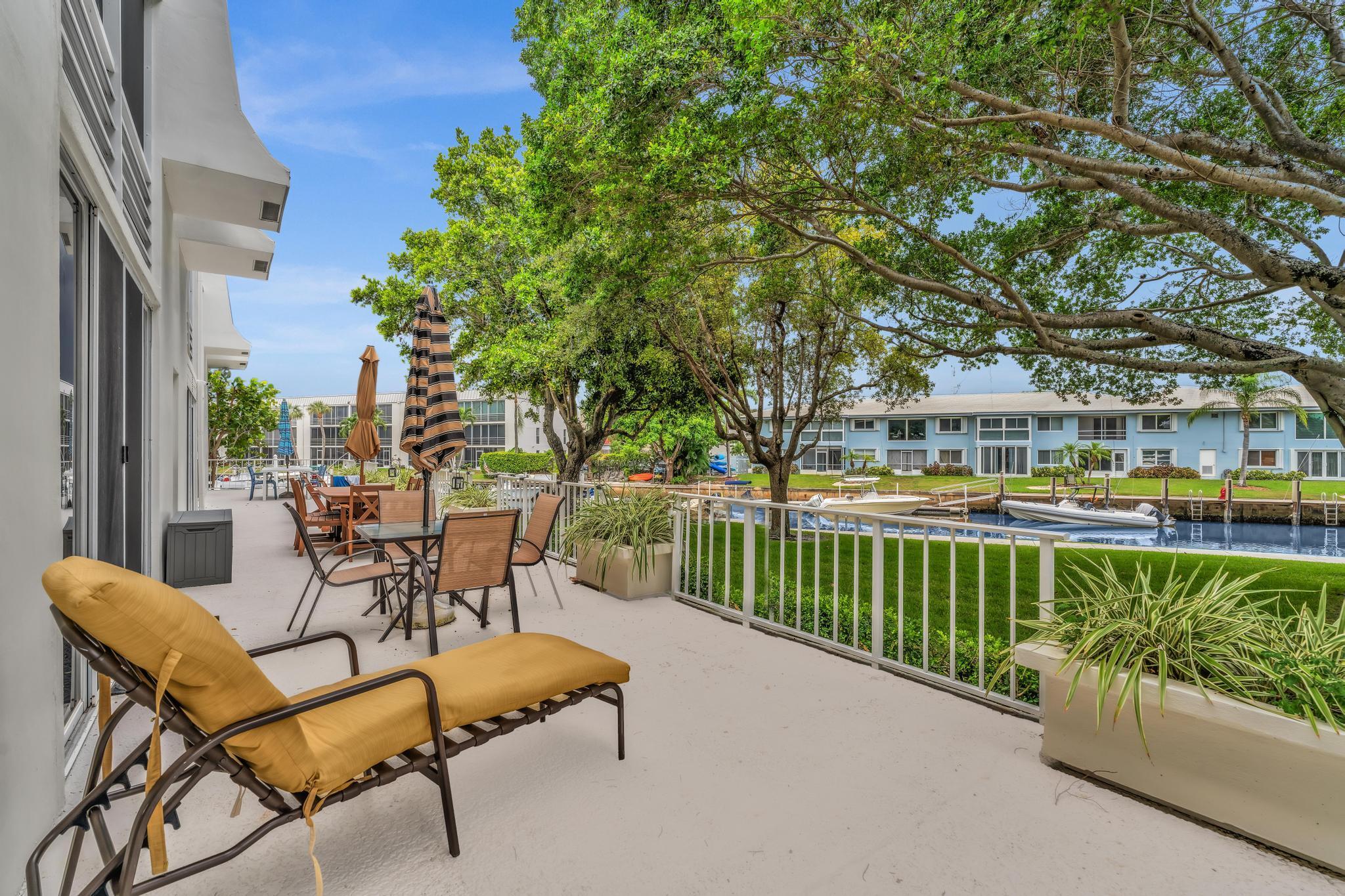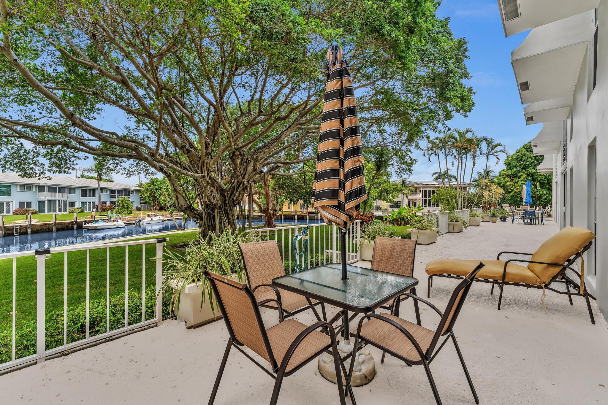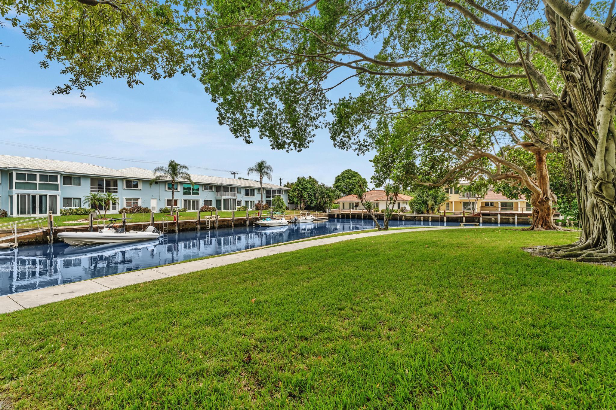 This beautiful East of US-1 unit features a water view with access to the Intracoastal and Ocean, no fixed bridges. Rare first floor unit with exclusive walk out area, with boat dockage available once you get on the list. Up to 25-foot boat. Awesome west view of canal, with mature trees canopy in a very desirable neighborhood to call home. 2025 New A/C unit. French Village sits on seven acres and features a serene walking path were you can watch the boats go past or gaze at luxury homes. Equidistant to Ft Lauderdale and Palm Beach airports. Close to Boca Raton and Delray Beach downtown areas, for the best of both worlds. 1 bedroom and 1.5 baths. Tiled living areas, carpeted bedroom. Extra storage, garage parking with convenient elevator access. Just completely renovated pool.
