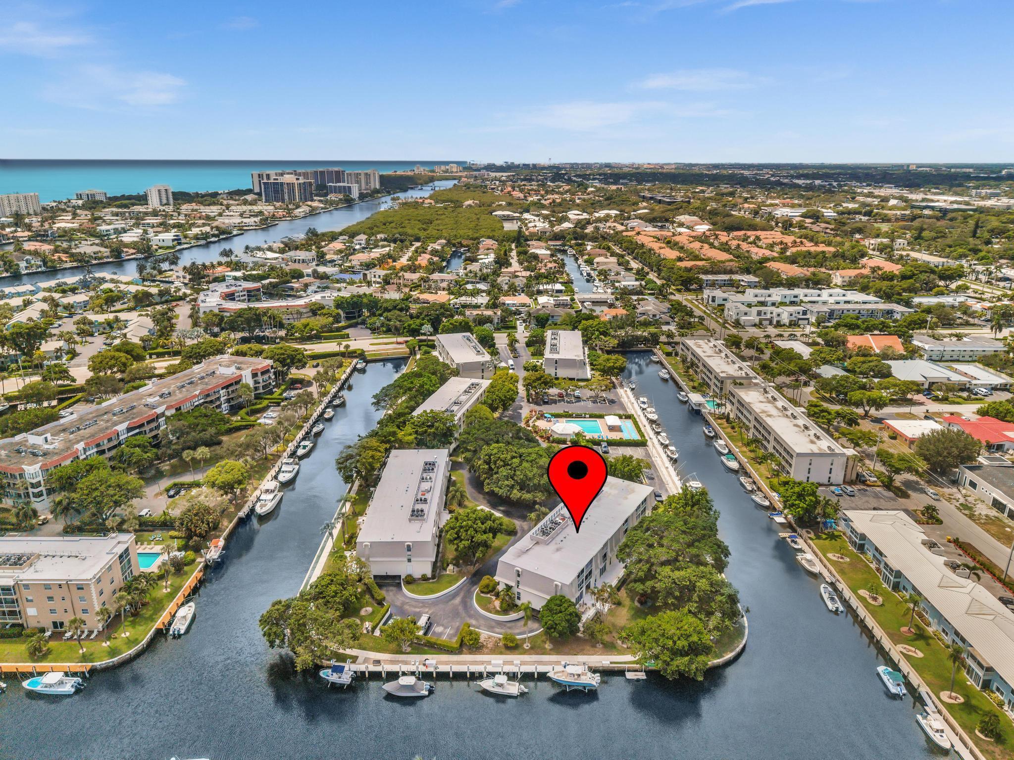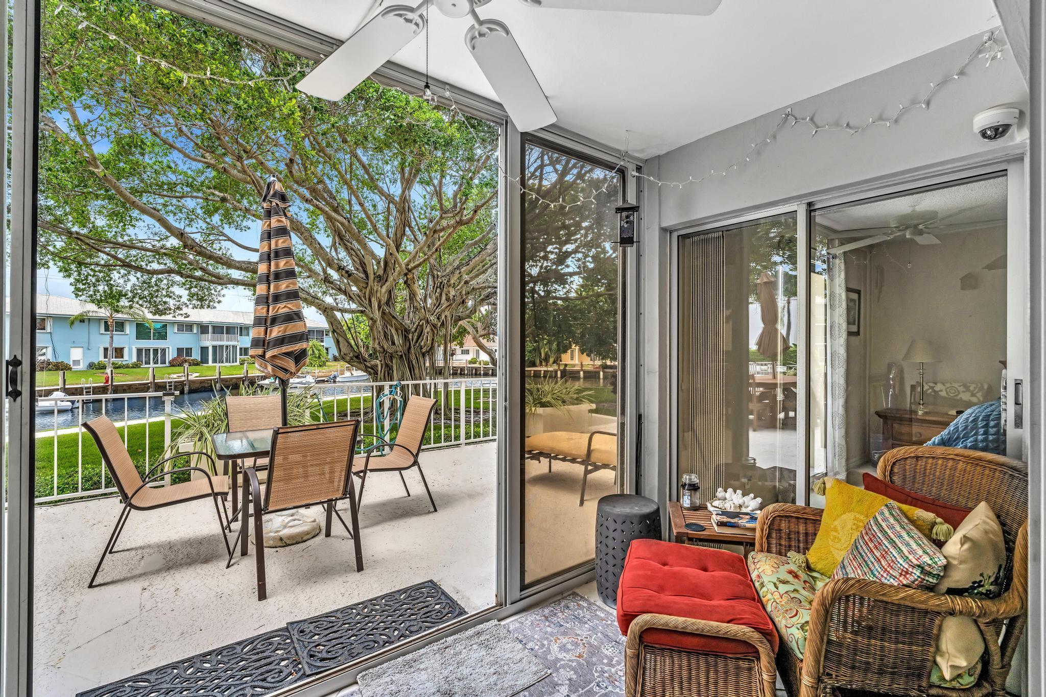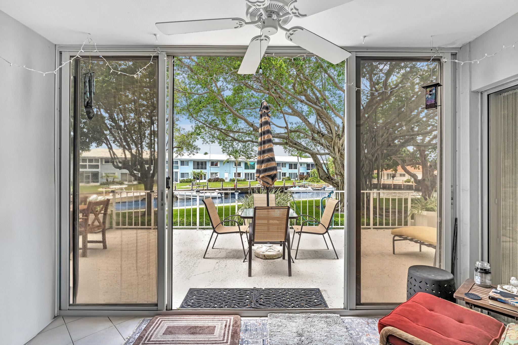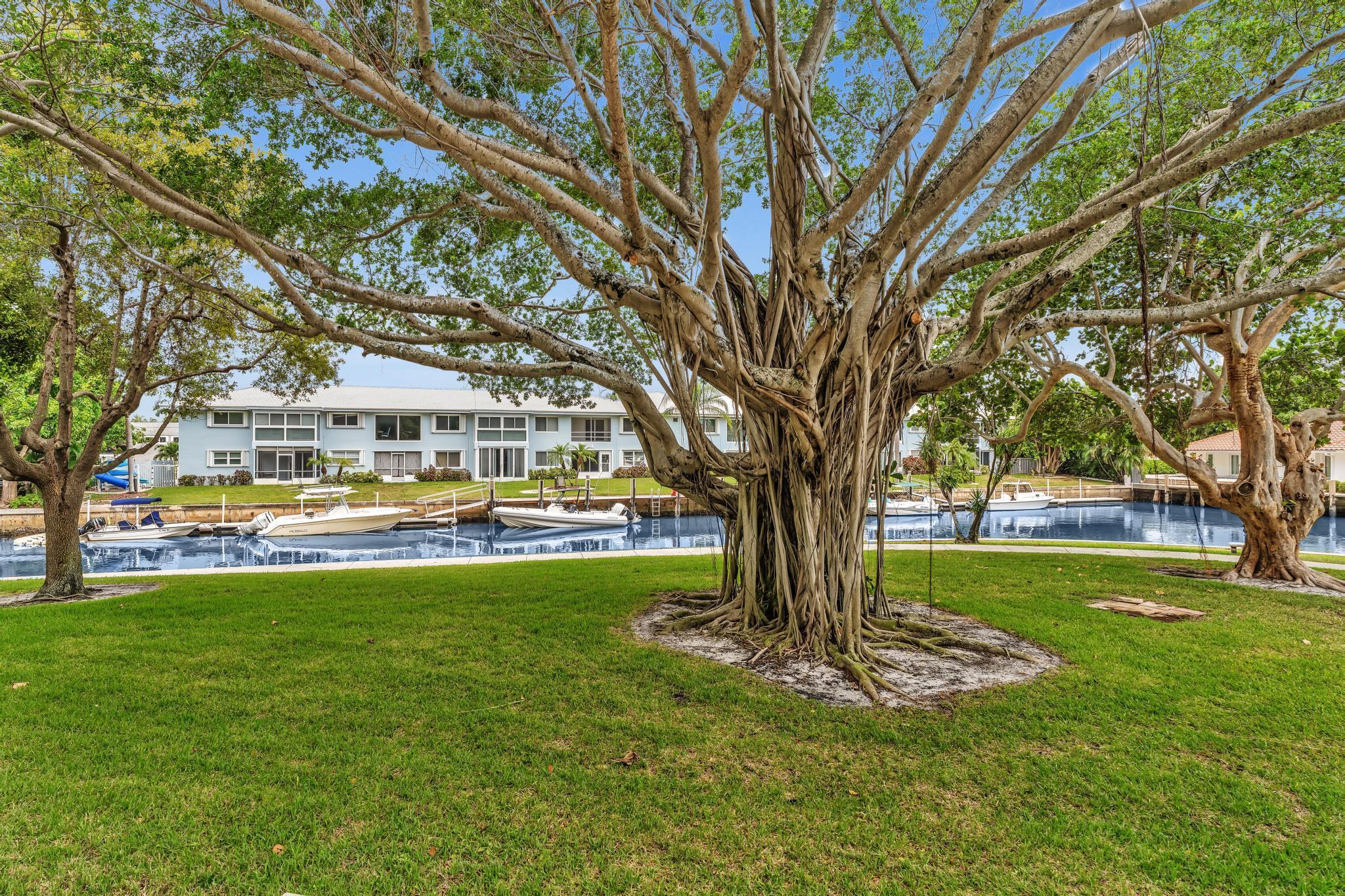 This beautiful East of US-1 unit features a water view with access to the Intracoastal and Ocean, no fixed bridges. Rare first floor unit with exclusive walk out area, with boat dockage available once you get on the list. Up to 25-foot boat. Awesome west view of canal, with mature trees canopy in a very desirable neighborhood to call home. 2025 New A/C unit. French Village sits on seven acres and features a serene walking path were you can watch the boats go past or gaze at luxury homes. Equidistant to Ft Lauderdale and Palm Beach airports. Close to Boca Raton and Delray Beach downtown areas, for the best of both worlds. 1 bedroom and 1.5 baths. Tiled living areas, carpeted bedroom. Extra storage, garage parking with convenient elevator access. Just completely renovated pool.