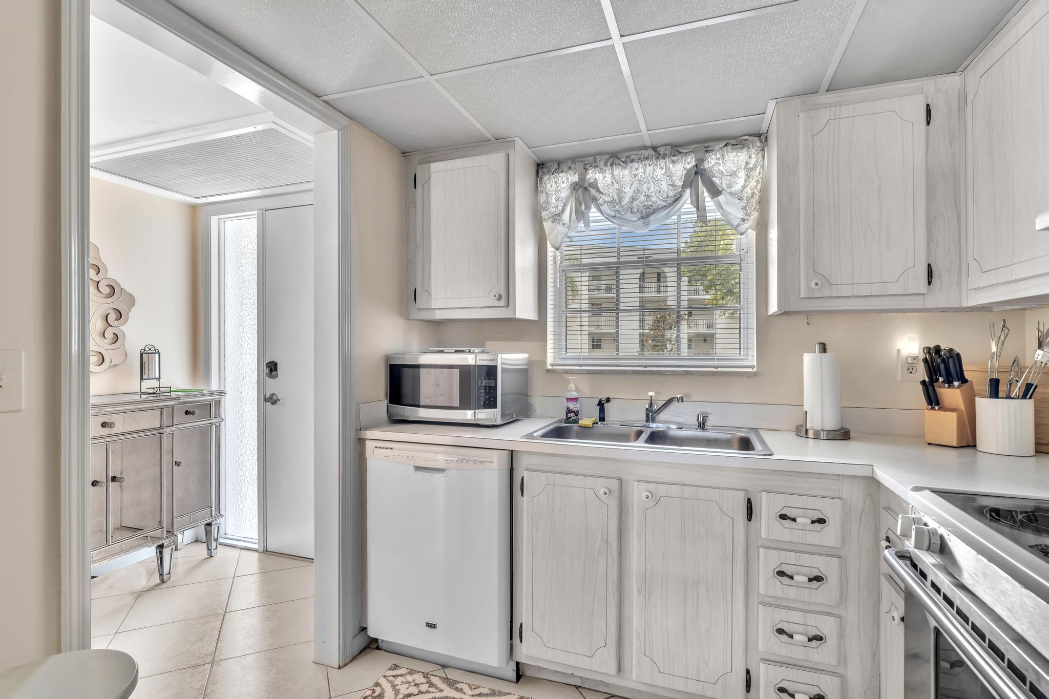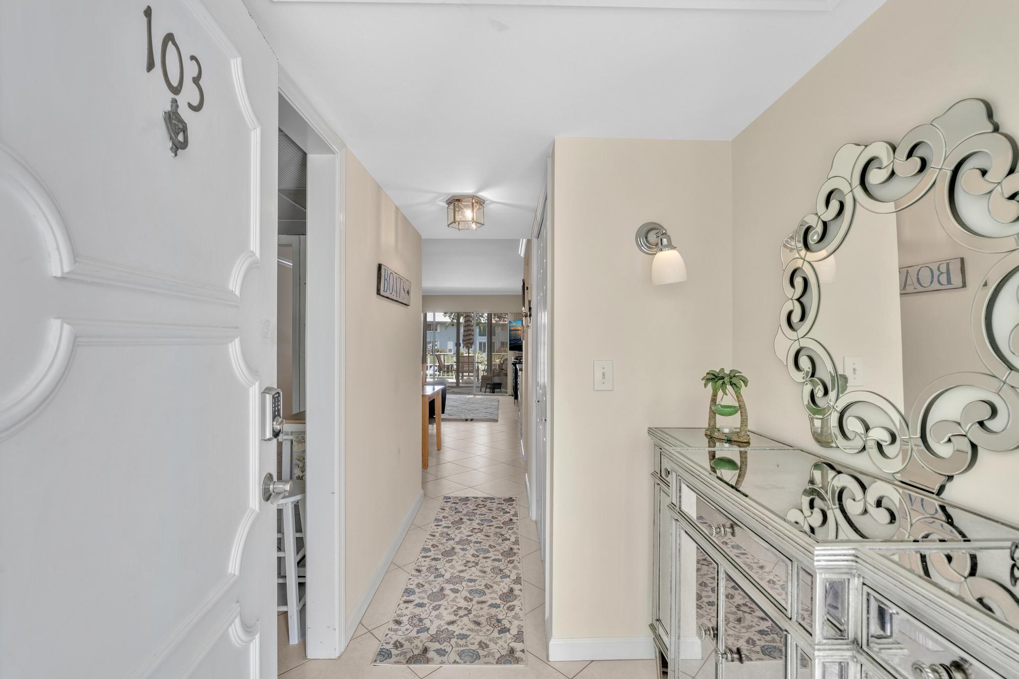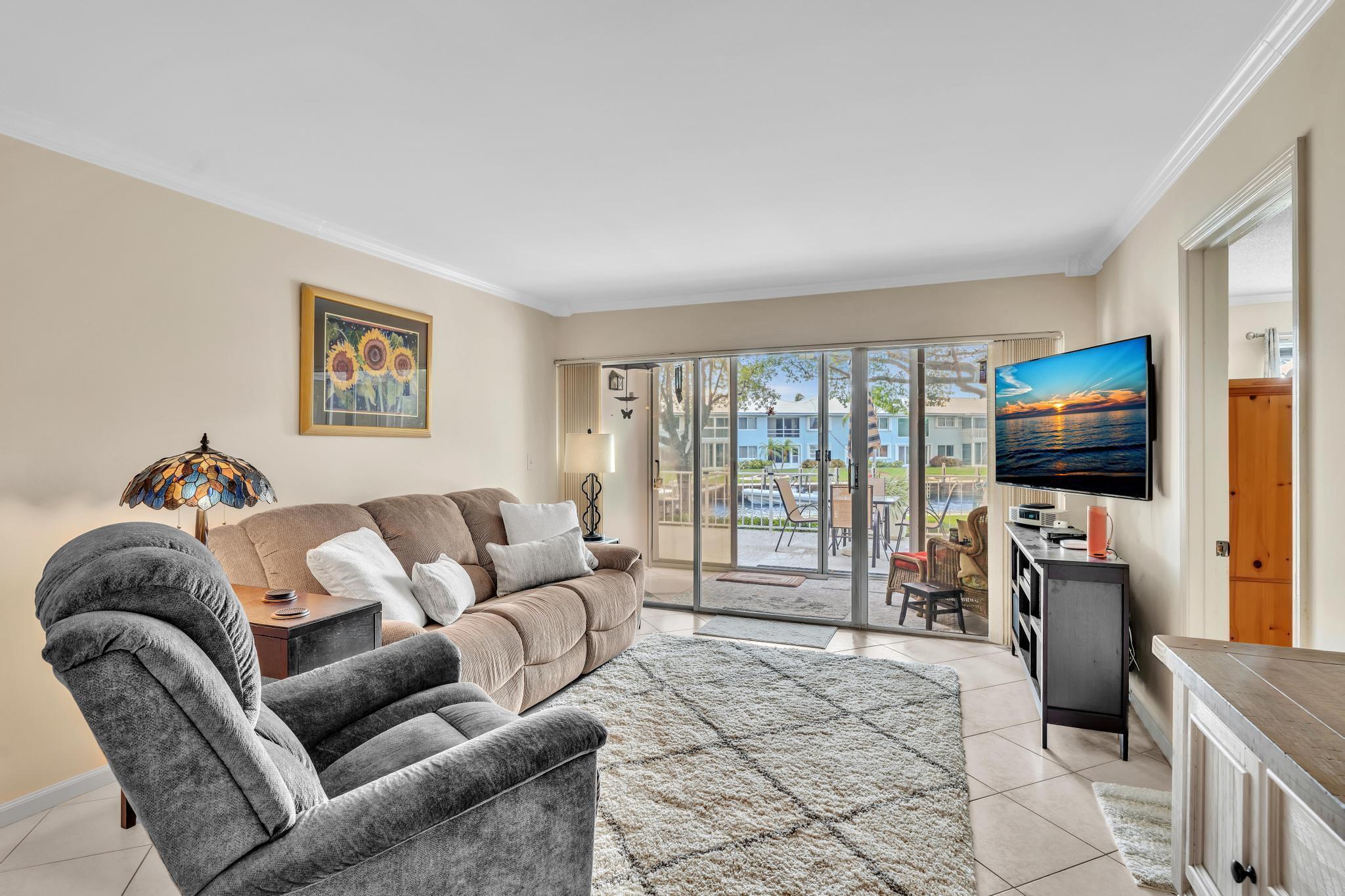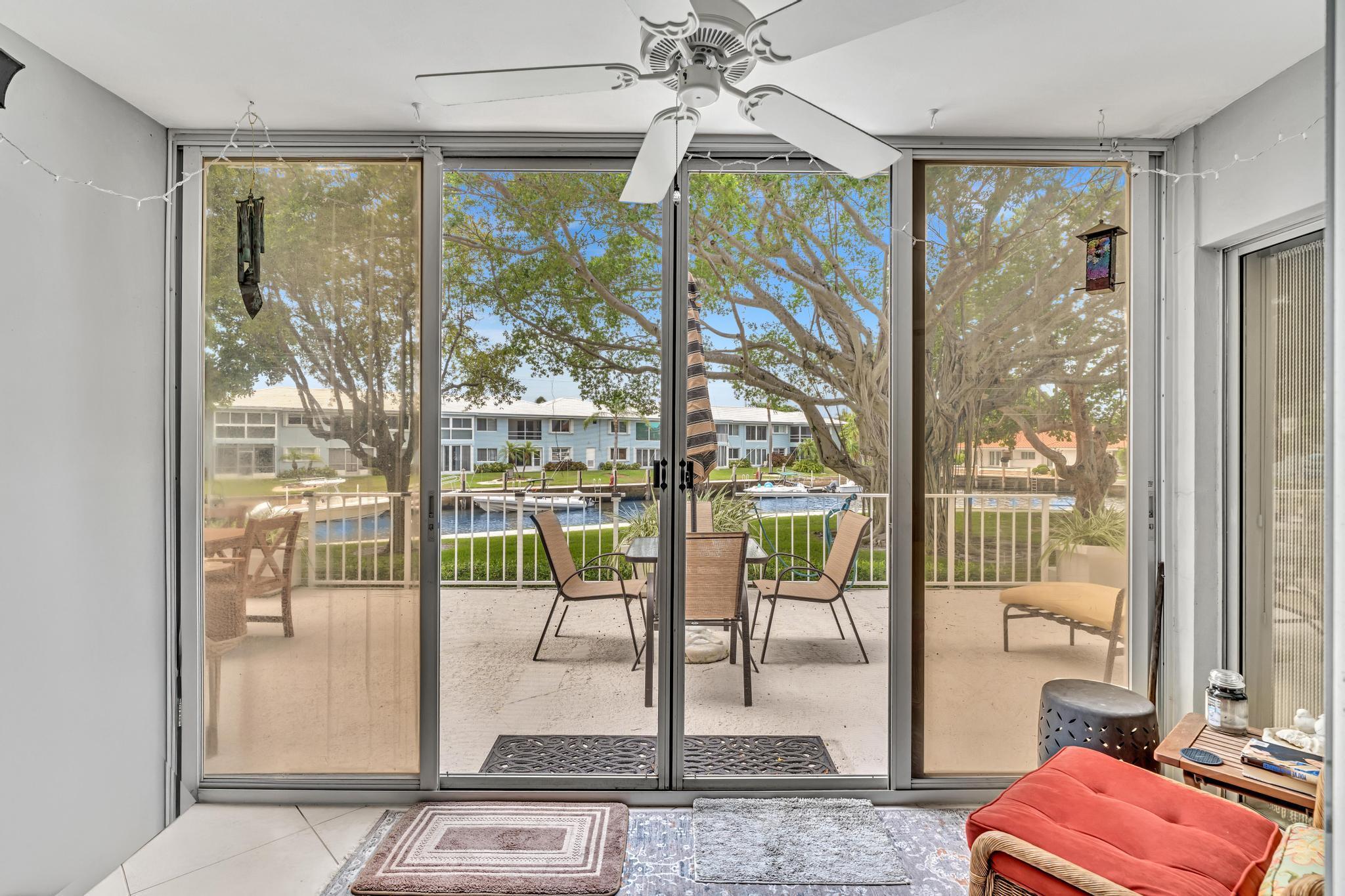This beautiful East of US-1 unit features a water view with access to the Intracoastal and Ocean, no fixed bridges. Rare first floor unit with exclusive walk out area, with boat dockage available once you get on the list. Up to 25-foot boat. Awesome west view of canal, with mature trees canopy in a very desirable neighborhood to call home. 2025 New A/C unit. French Village sits on seven acres and features a serene walking path were you can watch the boats go past or gaze at luxury homes. Equidistant to Ft Lauderdale and Palm Beach airports. Close to Boca Raton and Delray Beach downtown areas, for the best of both worlds. 1 bedroom and 1.5 baths. Tiled living areas, carpeted bedroom. Extra storage, garage parking with convenient elevator access. Just completely renovated pool.