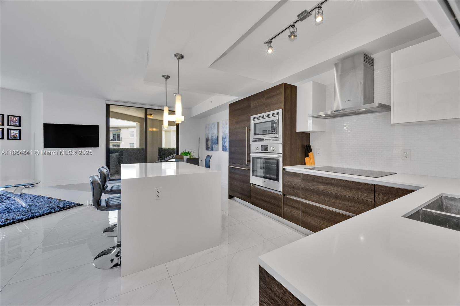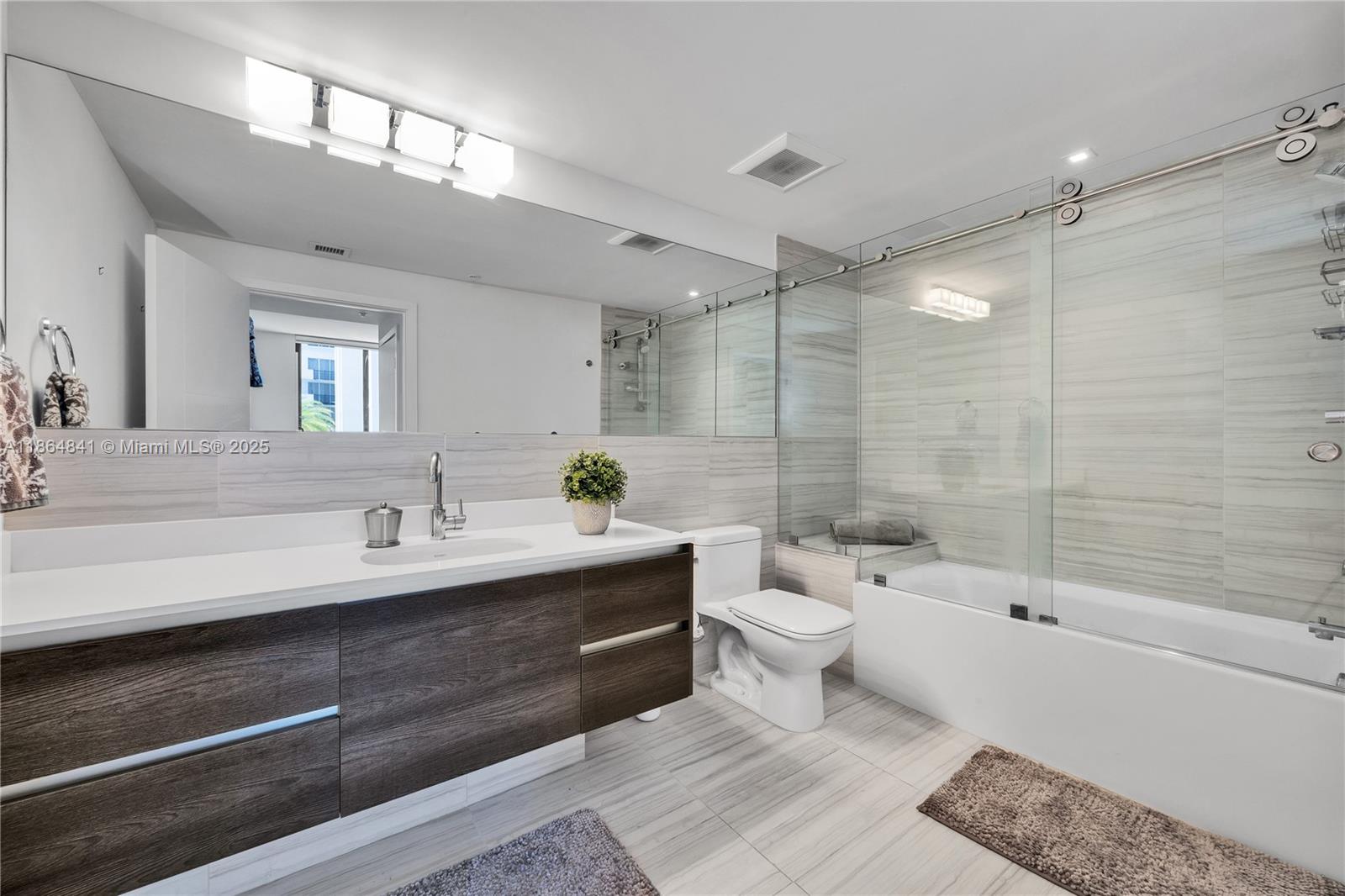 Experience the best of Coral Gables living in this beautifully maintained 2-bedroom, 2.5-bath condo featuring impact windows and doors, Italkraft cabinets, quartz countertops, Bosch appliances, a Nest thermostat, and keyless locks. The spacious primary suite includes a walk-in closet and a spacious en-suite bath, while the second bedroom offers custom built-ins and its own private bathroom. A dedicated laundry room with washer and dryer adds convenience. Step out onto the open terrace to enjoy relaxing street views. The building offers impeccable resort-style amenities and services, including a saline-heated pool, summer kitchen, upscale fitness center, 24-hour concierge and security, and valet parking.