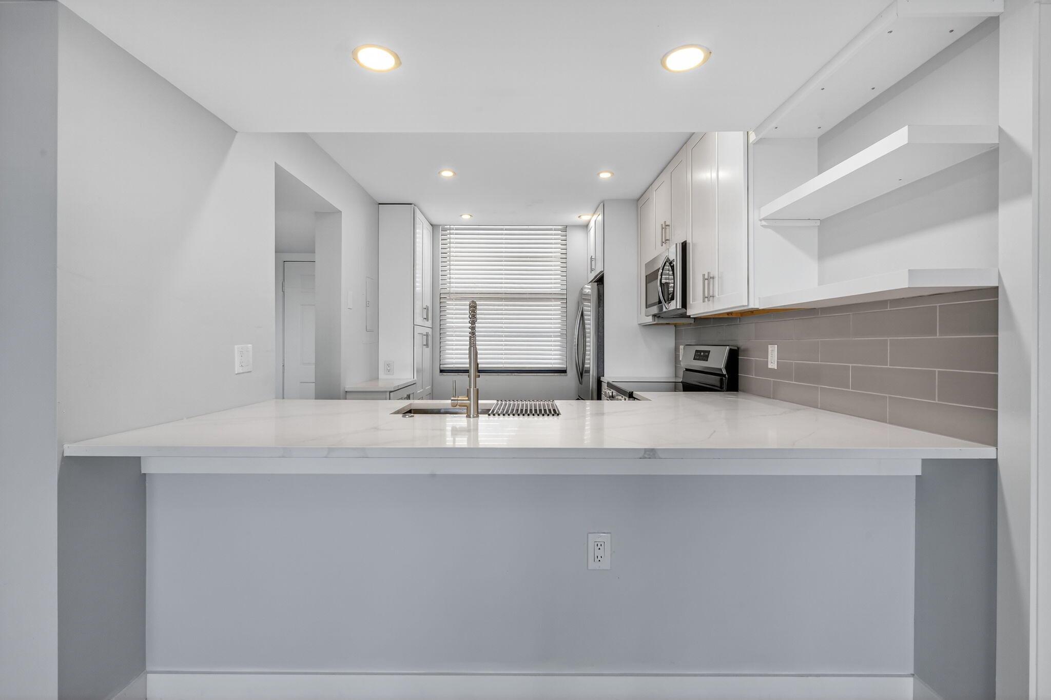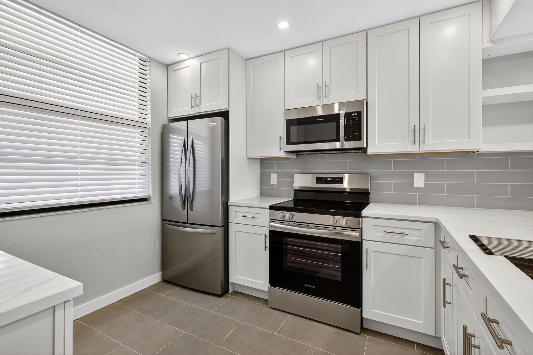 Newly remodeled condo MINUTES from Downtown West Palm Beach and PBI AirportSpacious modern style 2/2 with a large storage/laundry room that could be made into a den, gym, etc.Entrance through private gate at Land of the Presidents.Quartz countertops and ceramic tile.