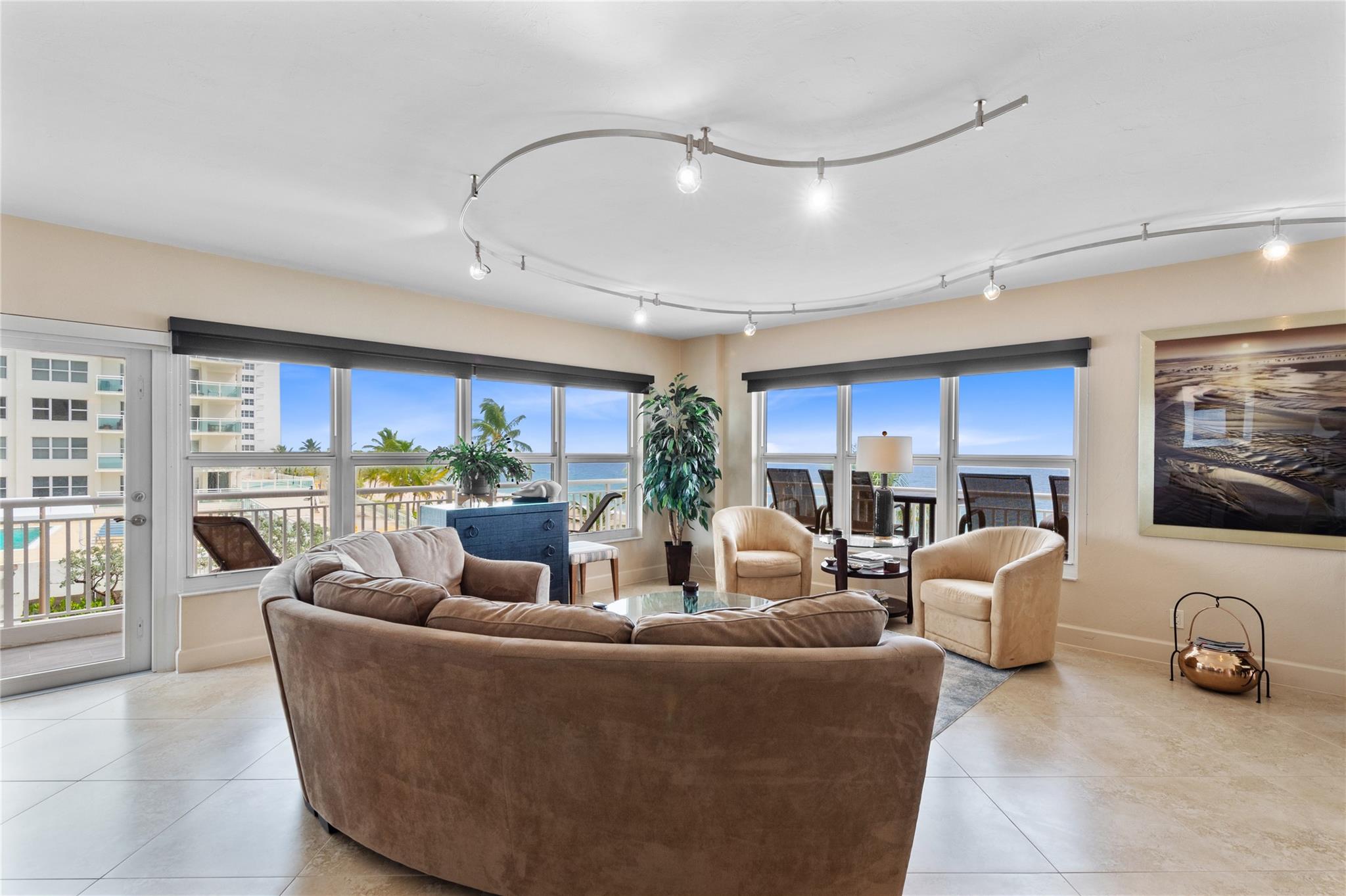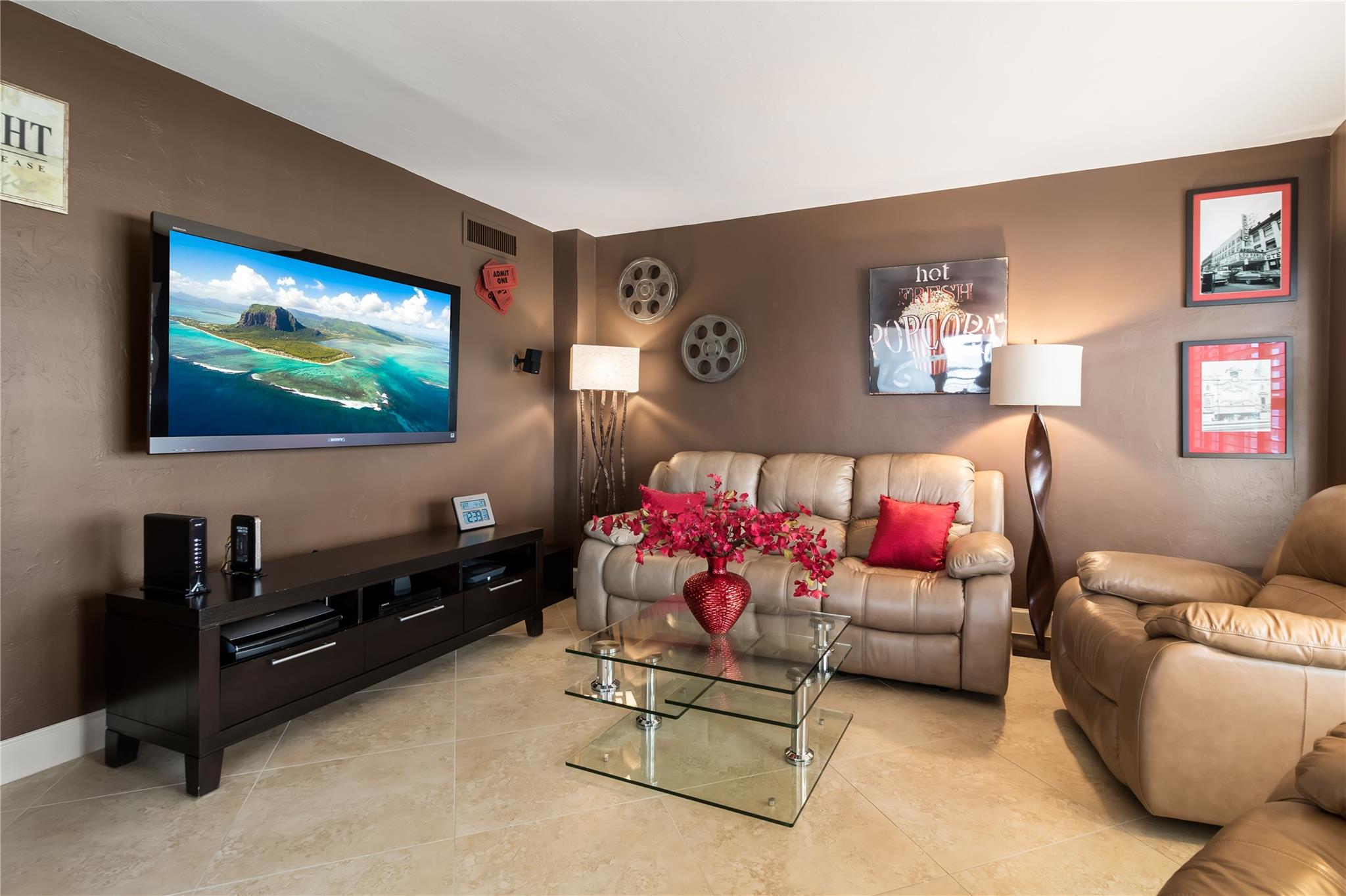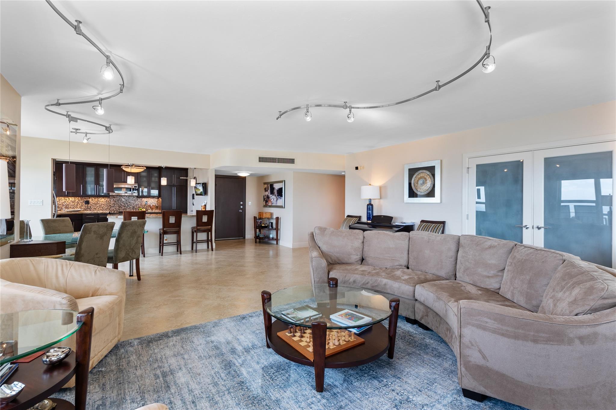 Stunning Oceanfront Condo! 2,150 SF unit with panoramic beach views from an expansive east-facing wraparound balcony—perfect for sunrise coffee or evening cocktails. High-end finishes throughout: custom cabinetry, granite peninsula (89"x40") ideal for prep or entertaining, alabaster lighting, Bose surround sound, and sleek porcelain tile. Plush carpet in bedrooms for added comfort. Enormous master suite with his & hers walk-in closets. Media room can convert back to a 3rd bedroom with ease. Immaculate and move-in ready! Includes 2 premium tandem garage spots 97 & 111 (a $120K value). Resort-style living with unbeatable ocean views—schedule your private tour today! Located in a well-maintained building with secure entry, pool, gym, and easy beach access—this is coastal luxury at its best!