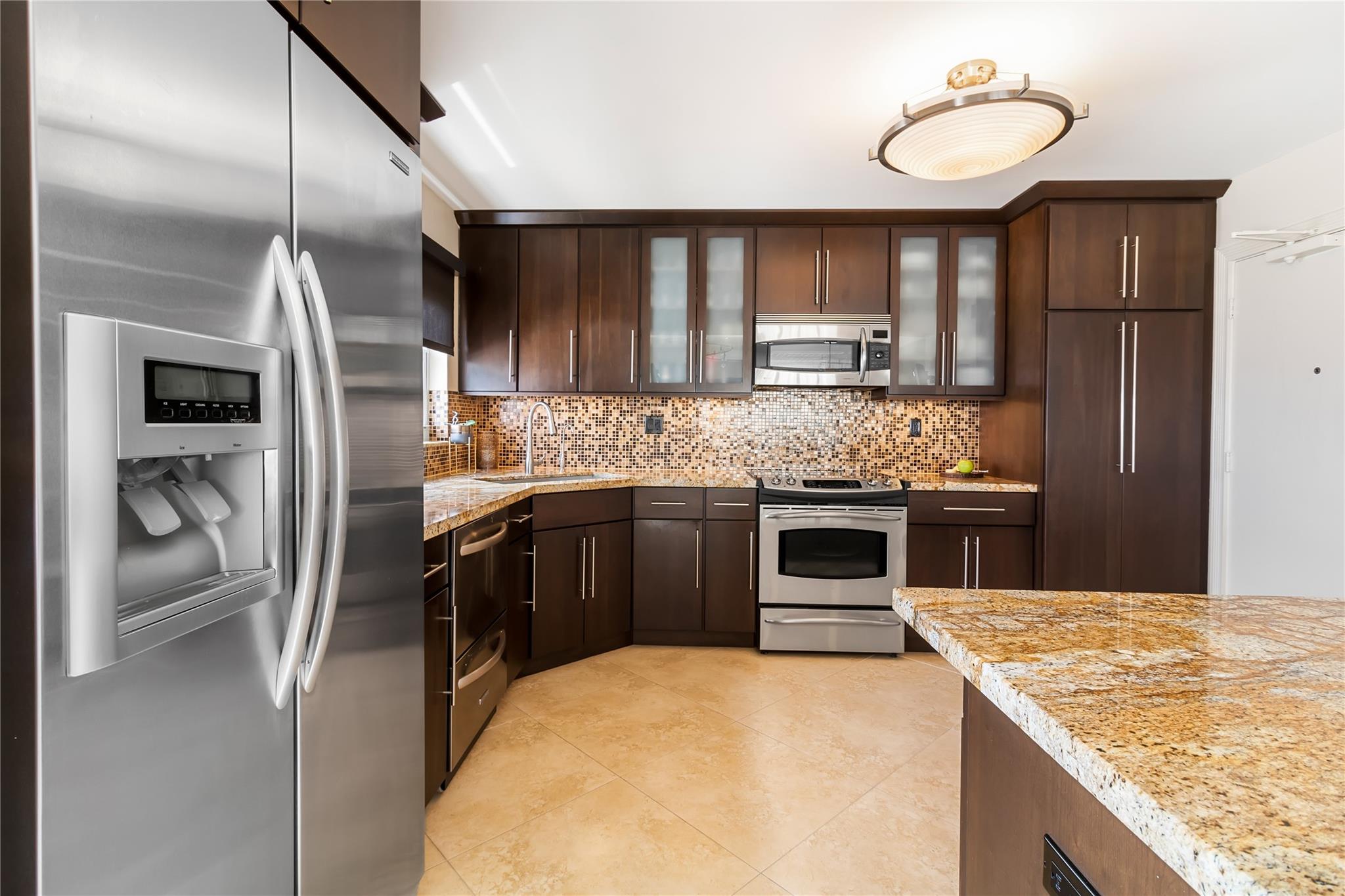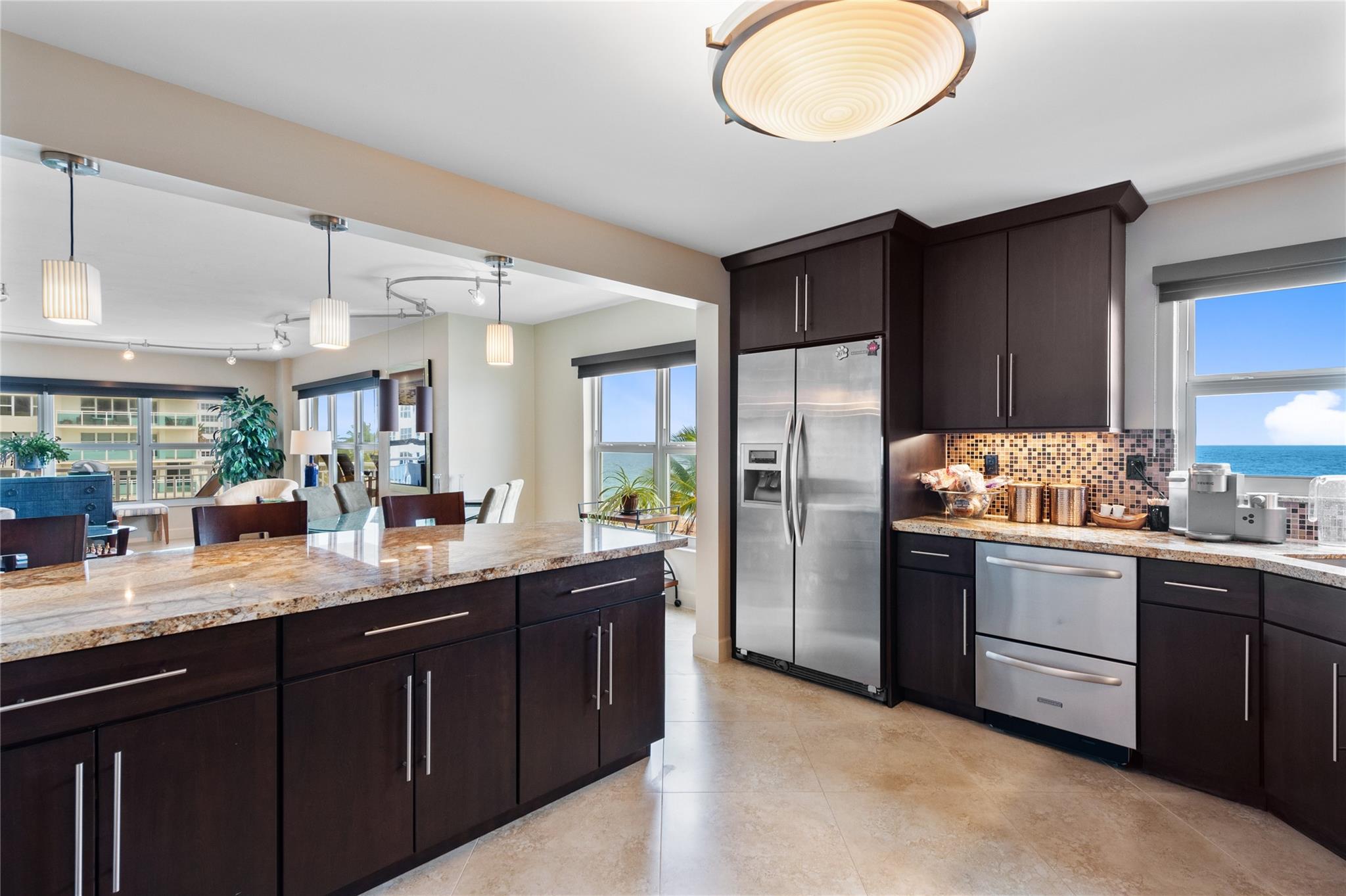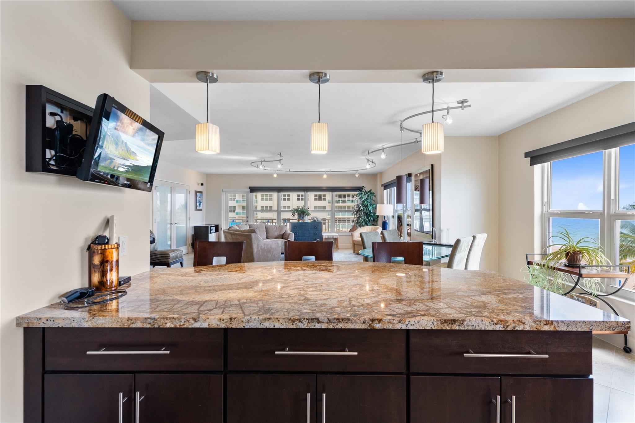 Stunning Oceanfront Condo! 2,150 SF unit with panoramic beach views from an expansive east-facing wraparound balcony—perfect for sunrise coffee or evening cocktails. High-end finishes throughout: custom cabinetry, granite peninsula (89"x40") ideal for prep or entertaining, alabaster lighting, Bose surround sound, and sleek porcelain tile. Plush carpet in bedrooms for added comfort. Enormous master suite with his & hers walk-in closets. Media room can convert back to a 3rd bedroom with ease. Immaculate and move-in ready! Includes 2 premium tandem garage spots 97 & 111 (a $120K value). Resort-style living with unbeatable ocean views—schedule your private tour today! Located in a well-maintained building with secure entry, pool, gym, and easy beach access—this is coastal luxury at its best!