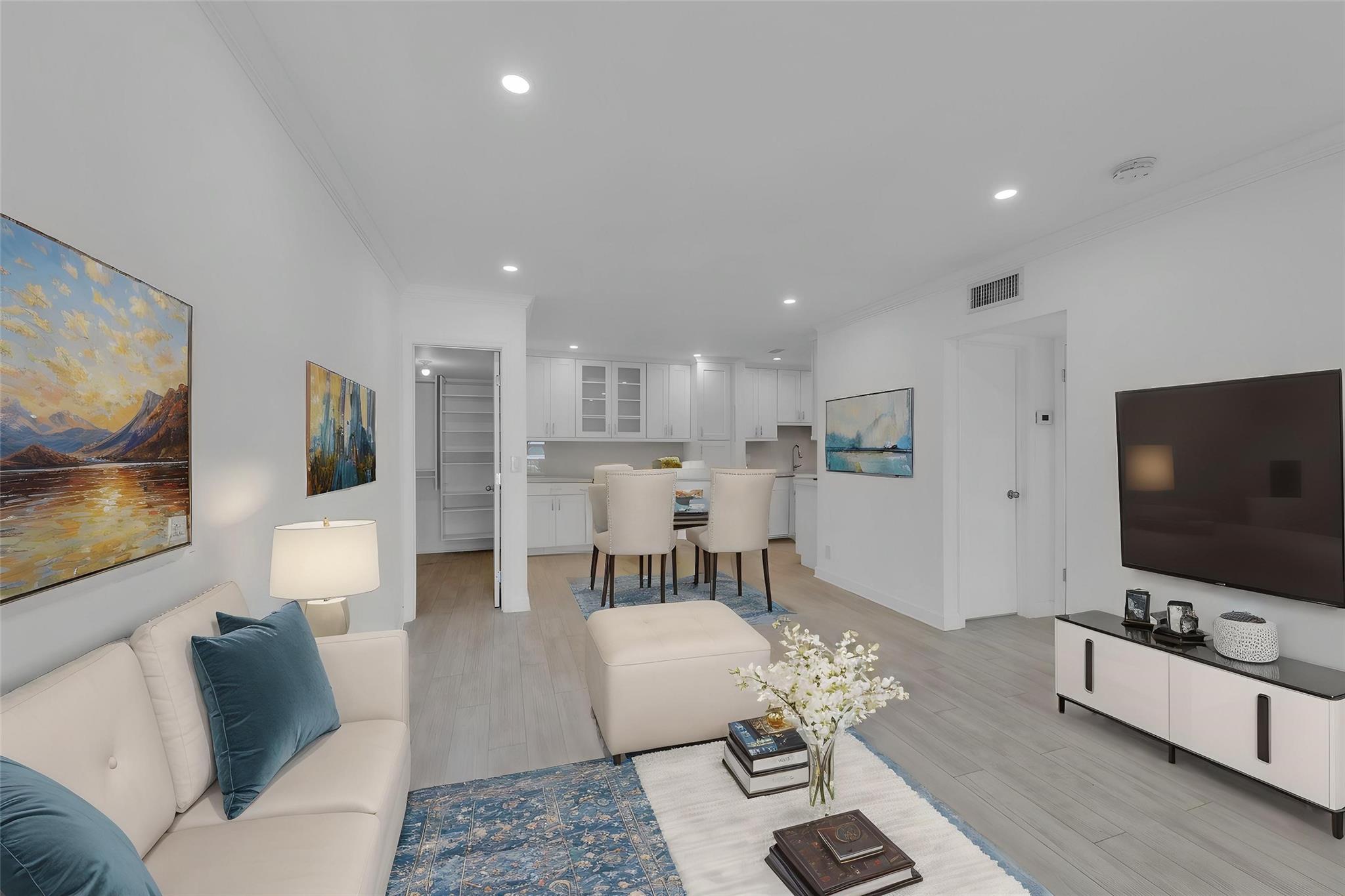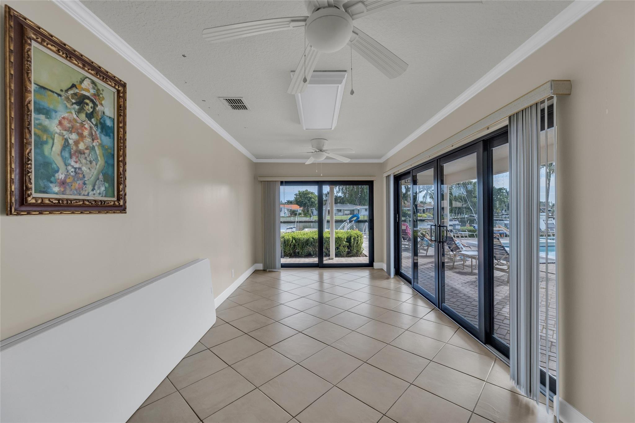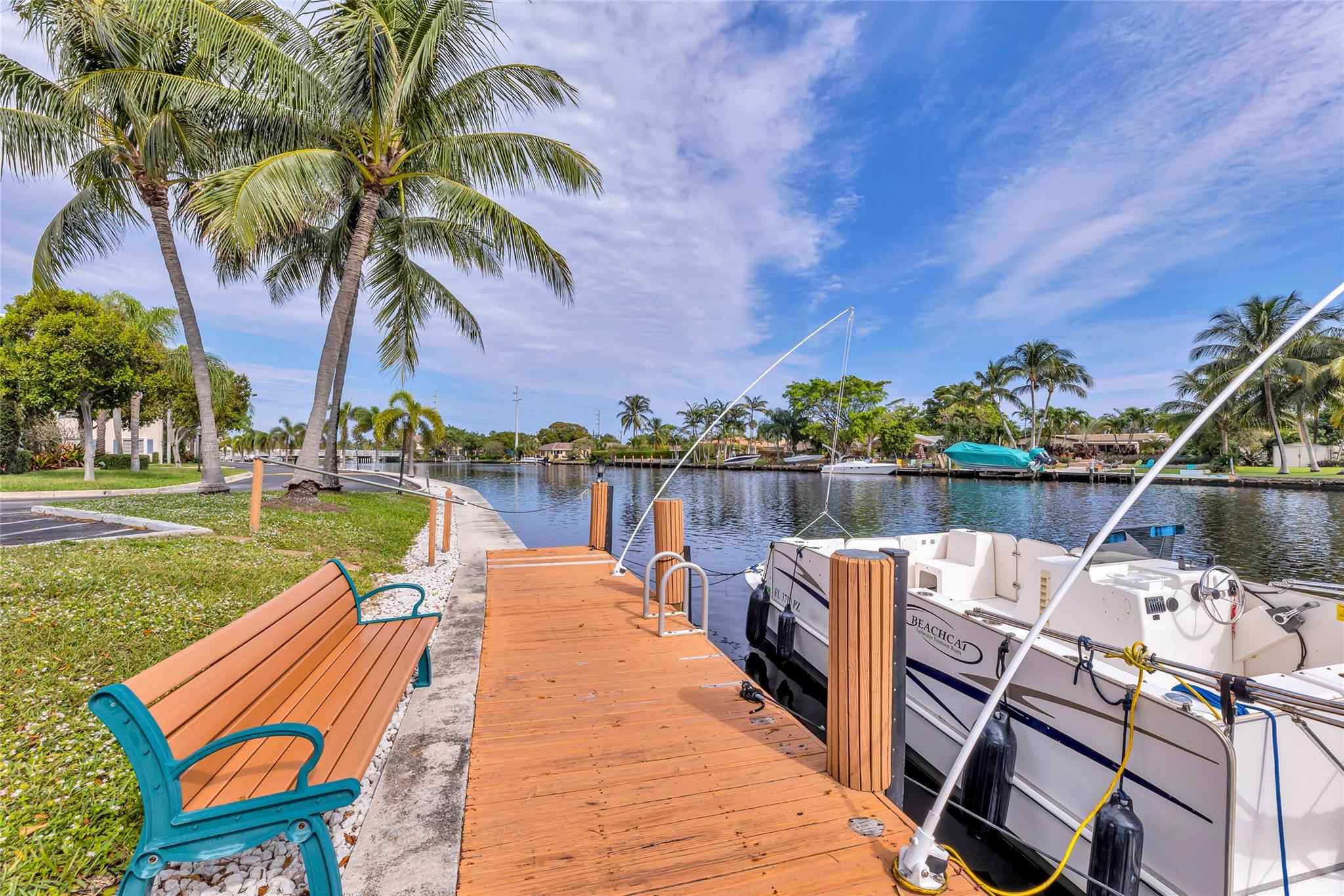 Price Improvement! Beautifully renovated, light, bright and spacious 1BR/1.5BA. Rare 1st floor corner condo in a nice waterfront community. Expanded kitchen has extra cabinets and Corian countertops. Newer impact windows and sliding doors. Plantation shutters. Great amenities that include community dock, heated pool on the water, bar-b-que, beautiful clubhouse with full kitchen, fitness center and more. Dockage through the association when available. Furniture is virtually staged. Association fee $1,395 is paid quarterly so approximately $465/month. Small pet ok. All ages.