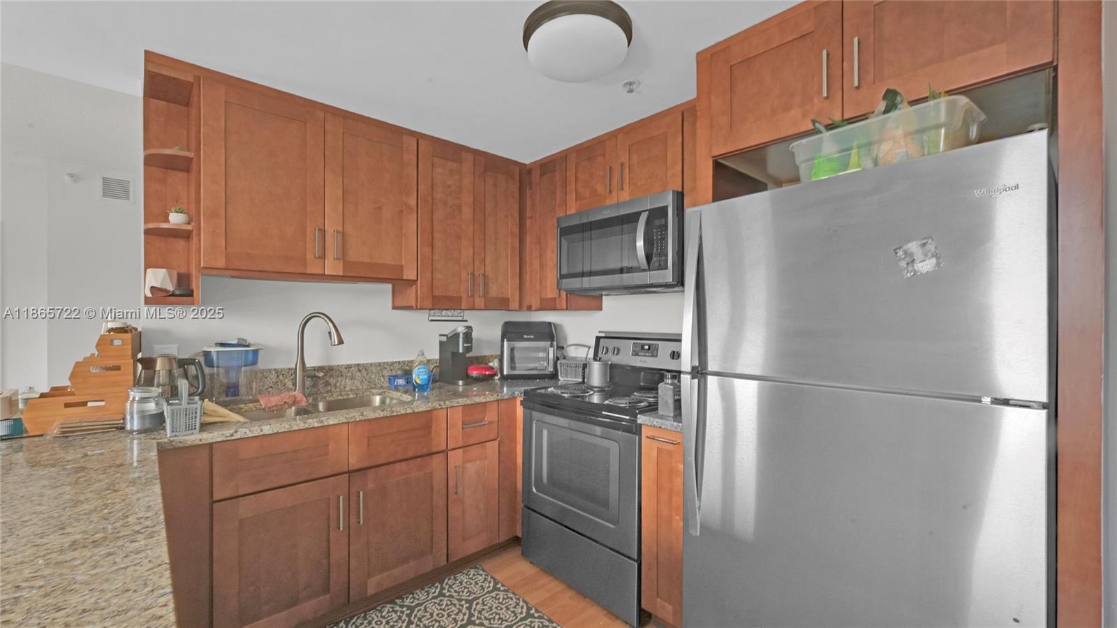 Modern 1 bed, 1.5 bath condo featuring in-unit laundry, stainless steel appliances, and a spacious open layout. The primary suite offers a private bath, plus an additional half bath for guests. Enjoy resort-style amenities including a pool, gym, BBQ area, and club room. Conveniently located near shopping, dining, and entertainment, this condo offers both comfort and lifestyle.The unit is being sold furnished.