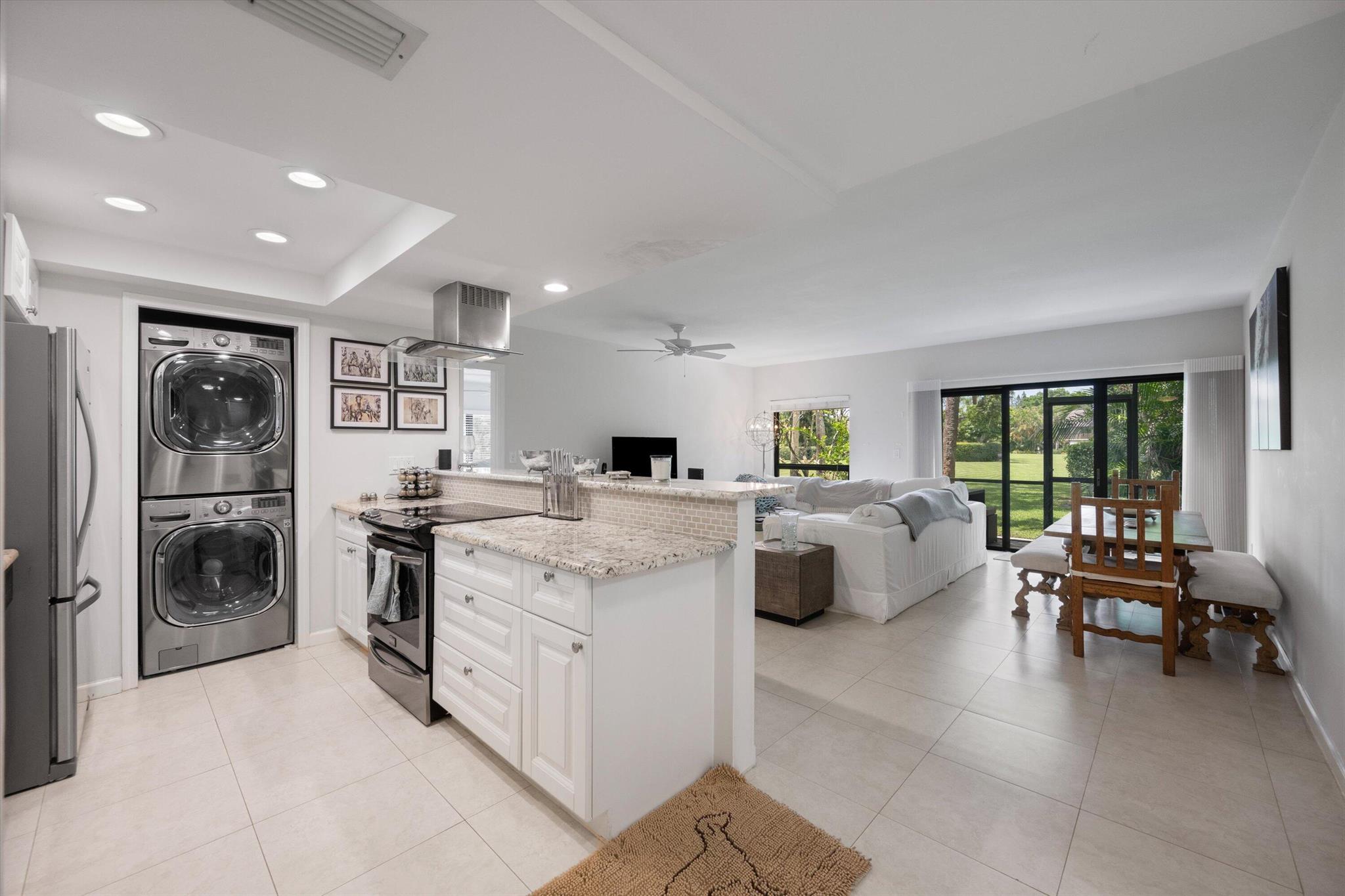 Welcome to this stunning first-floor condo located in the sought-after Bagatelle neighborhood. This 2-bedroom, 2-bathroom unit has been thoughtfully updated throughout, offering a perfect blend of style and comfort.Step into the renovated kitchen featuring sleek stainless steel appliances, granite countertops, and modern cabinetry--ideal for any home chef. Both bathrooms have been beautifully remodeled with quartz vanities, frameless glass showers, and elegant finishes.Additional highlights include custom closets, tasteful flooring, and a serene view of the courtyard--perfect for enjoying your morning coffee. The owner spared no expense in transforming this unit into a true dream home.Life at Palm Beach Polo offers 2 onsite Restaurants, access to Gym, Tennis and Pickelball Courts,