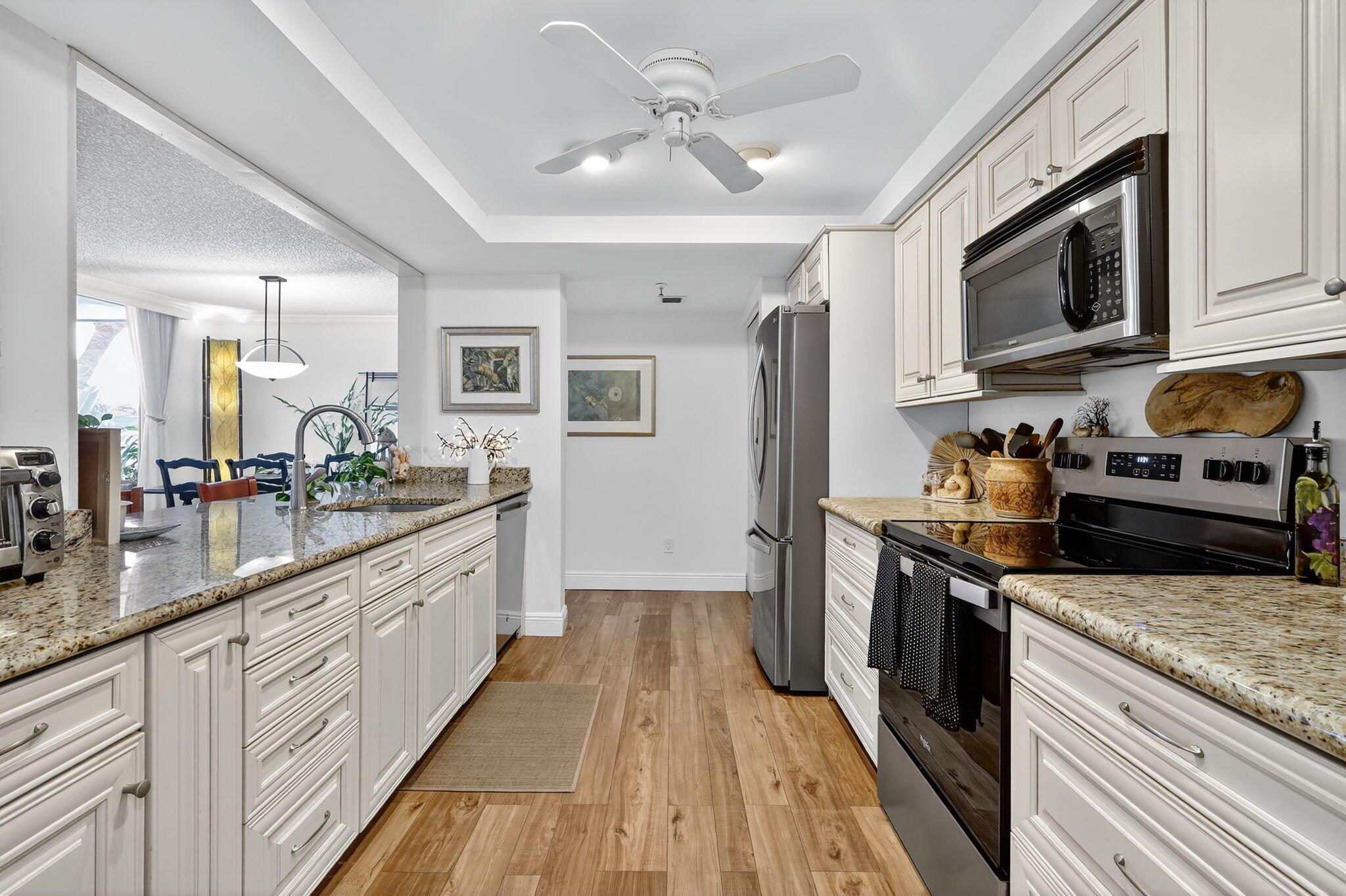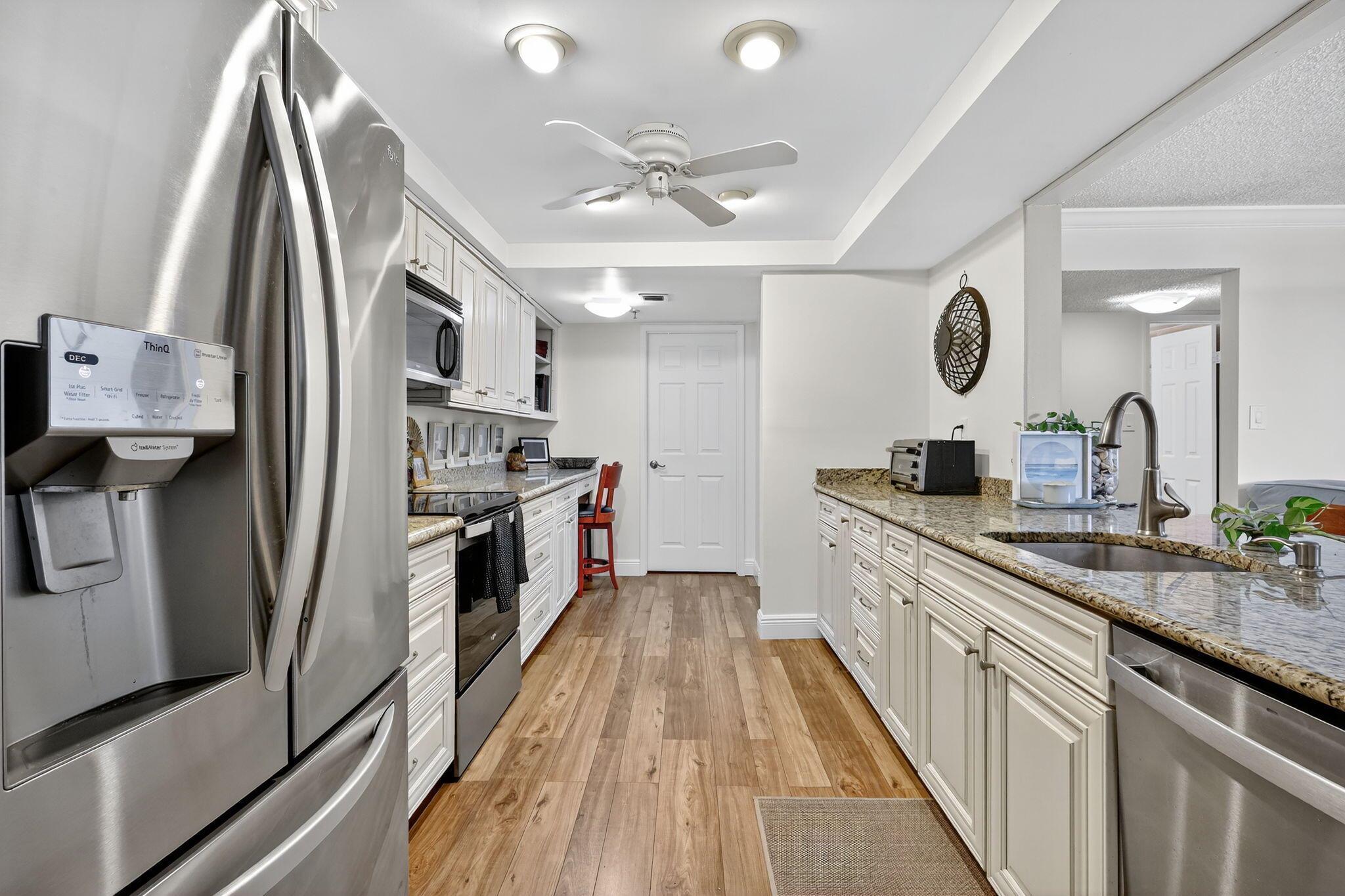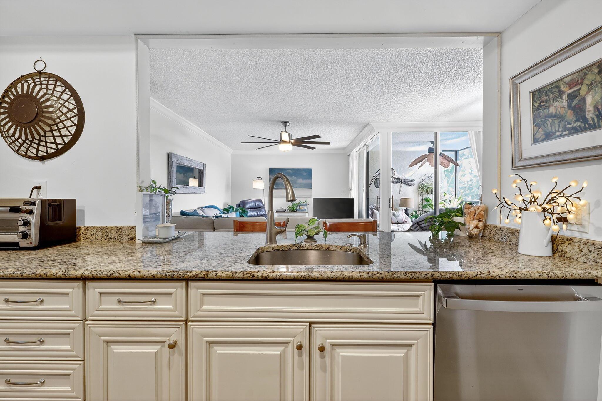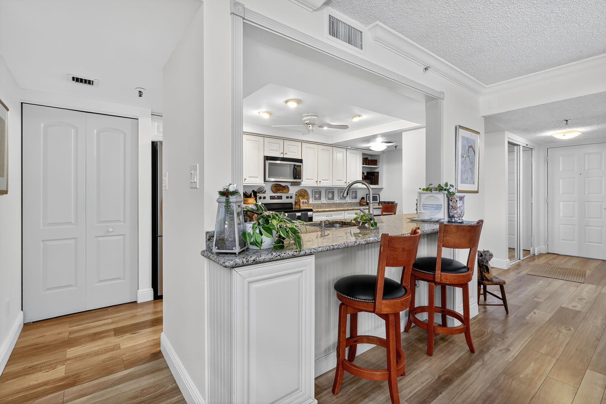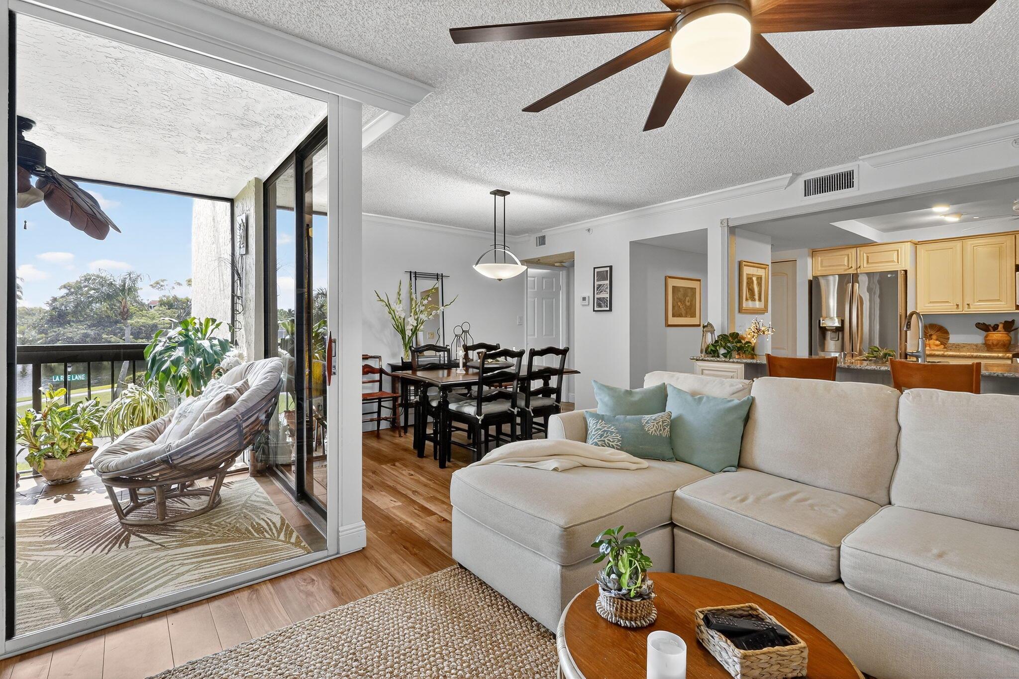 Fantastic lakeview condo. Tastefully updated, this 2 bedroom, 2 bathroom unit features a split floor plan. Upgraded flooring, baseboards, and crown molding throughout. The kitchen has been opened up with granite countertops, high hat lighting, and stainless appliances Washer and dryer in unit. Enjoy beautiful views of the lake, and the serene sounds of 2 illuminated fountains from your balcony. Lakeside Condo is an immaculately kept community replete with amenities. Relax in the new remodeled clubhouse. Or stay active in the poolside fitness room. Free public tennis courts are available within walking distance. Small RVs allowed to be parked. Close proximity to the beach, excellent restaurants, shopping (Trader Joe's, brand new Whole Foods, etc), and vibrant downtown Delray. Easy to show