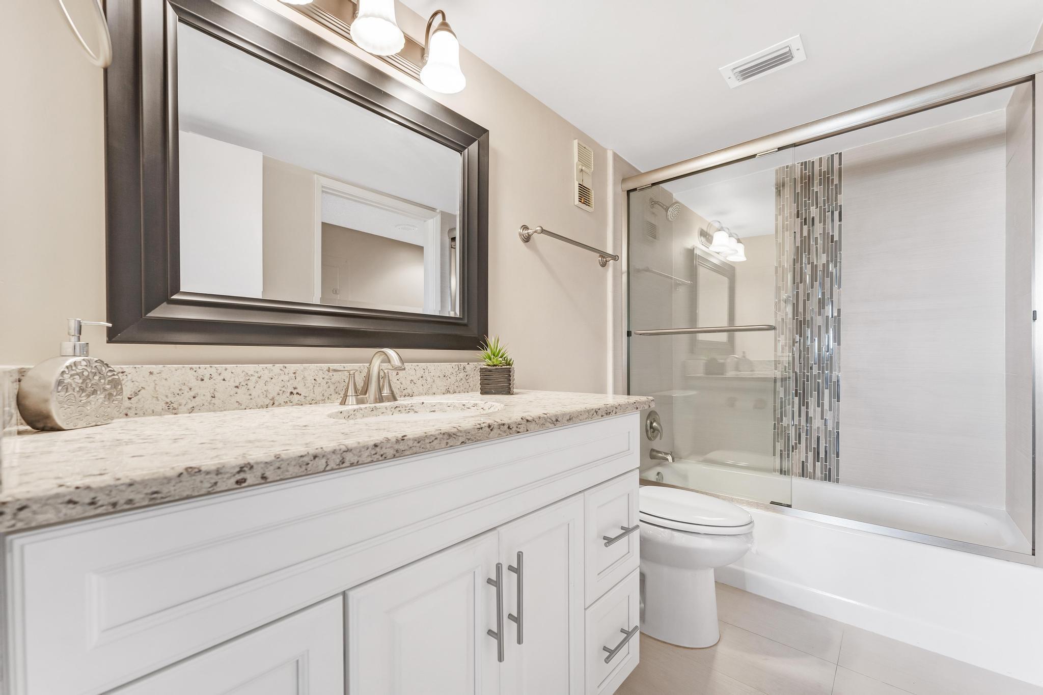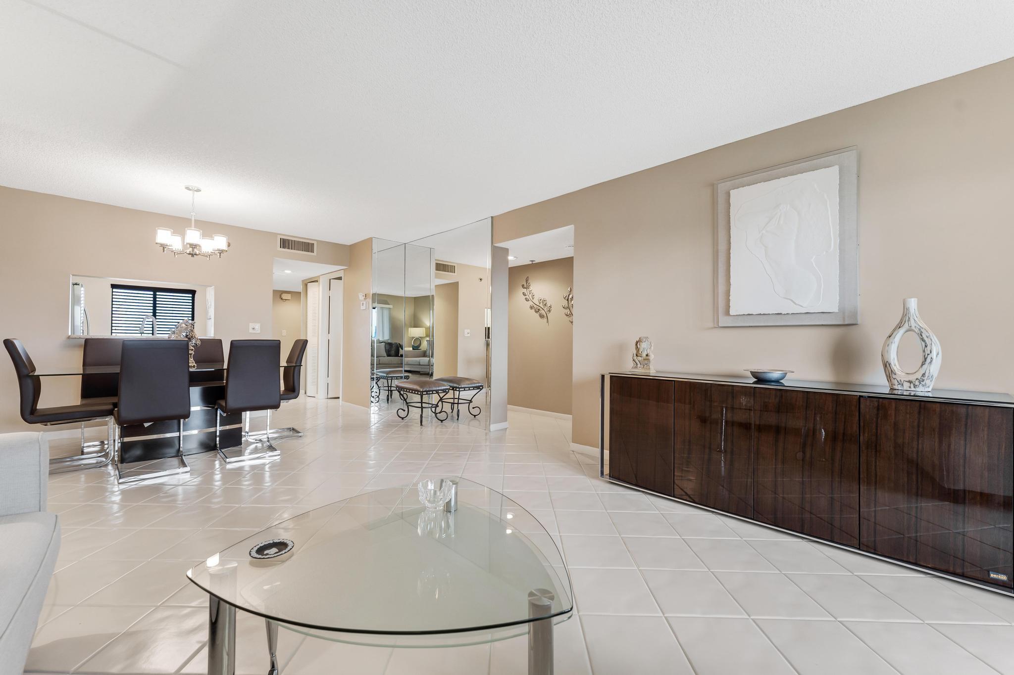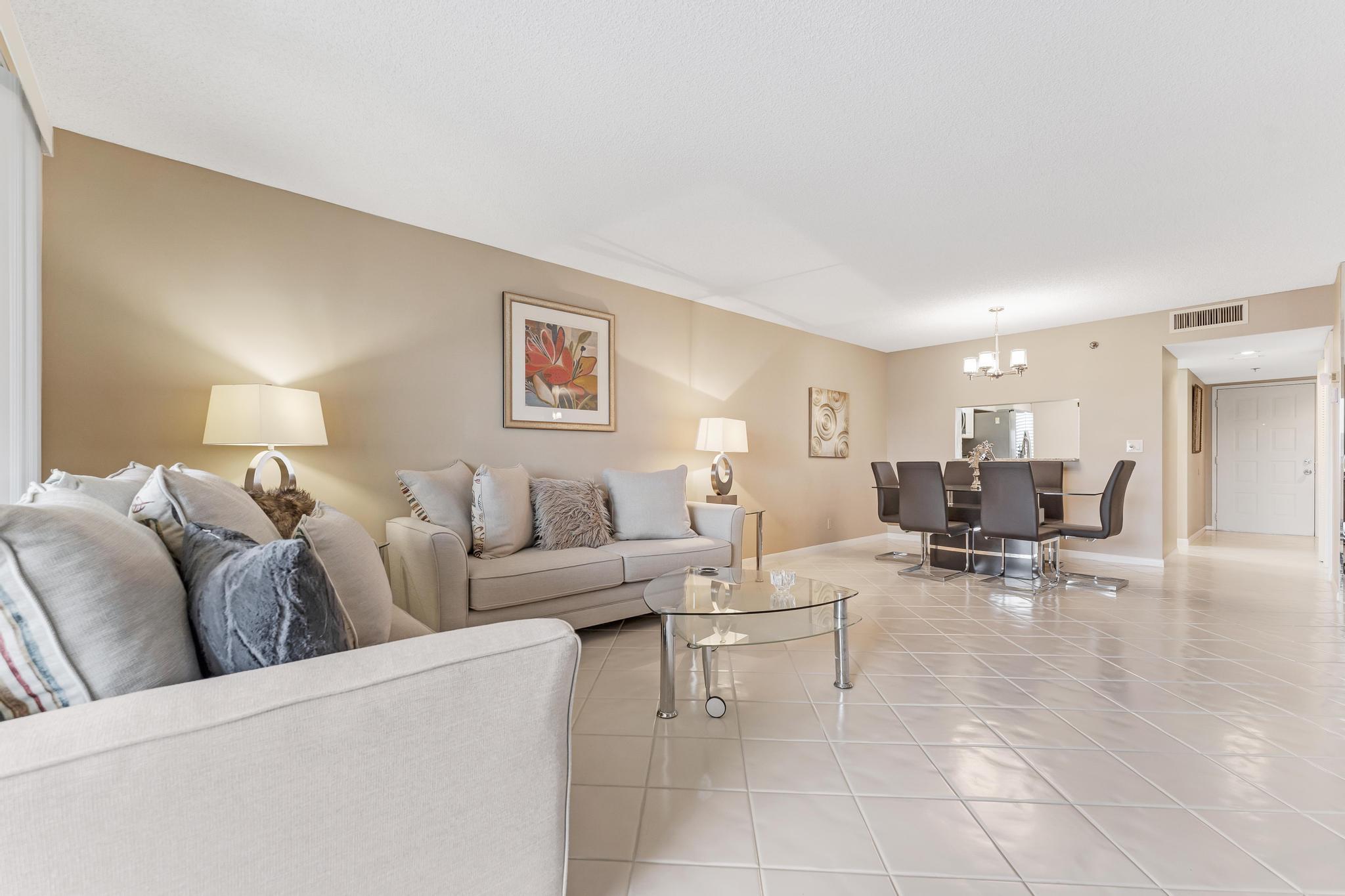 Welcome to this lovely condo in impeccable condition. Beautifully furnished. Shows like a model. Great remodeled kitchen w/ granite countertop and SS appliances. Large, bright living-dining area. Nice tile flooring throughout the living area. Exit from the living room to the enclosed balcony. Lovely views from the 7th floor looking out over the lake sipping your morning coffee.. X-large main bedroom w/ sitting area and renovated en suite bathroom. Nice sized guest bedroom w/ renovated bathroom. This large model has a separate laundryroom. This condo is directly across from the section pool. Nothing to be done with this unit. Move in and unpack your bags. Again, beautifully furnished.