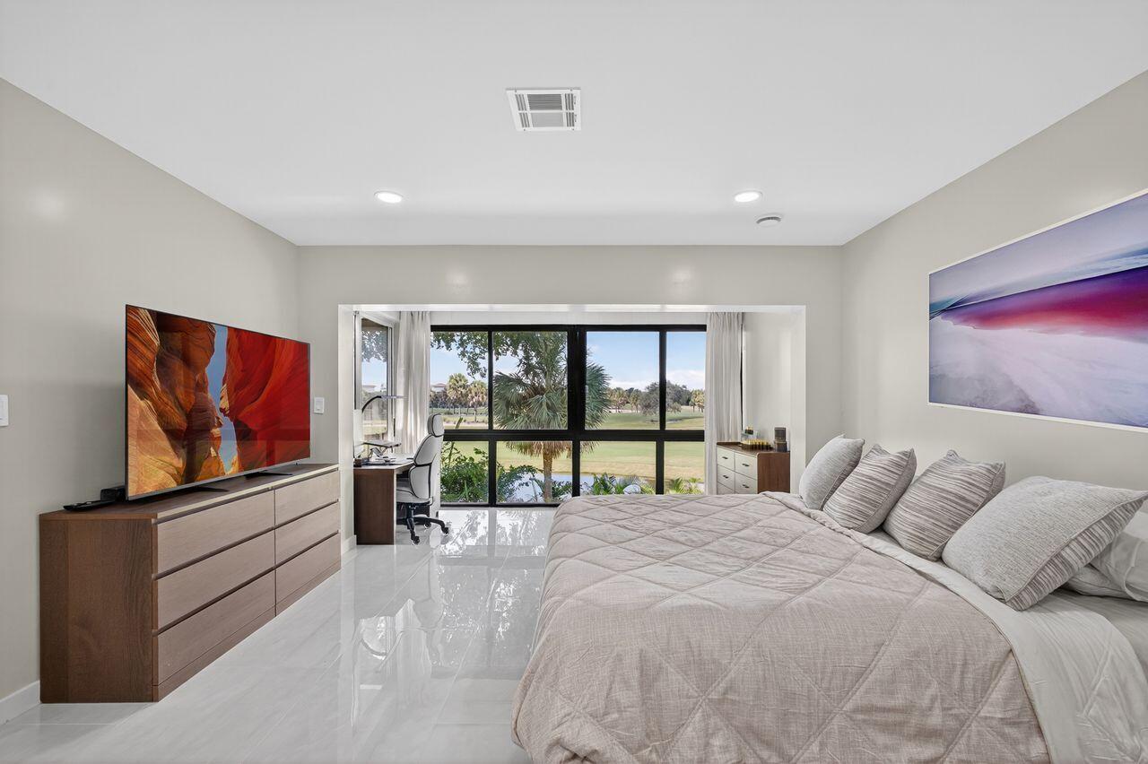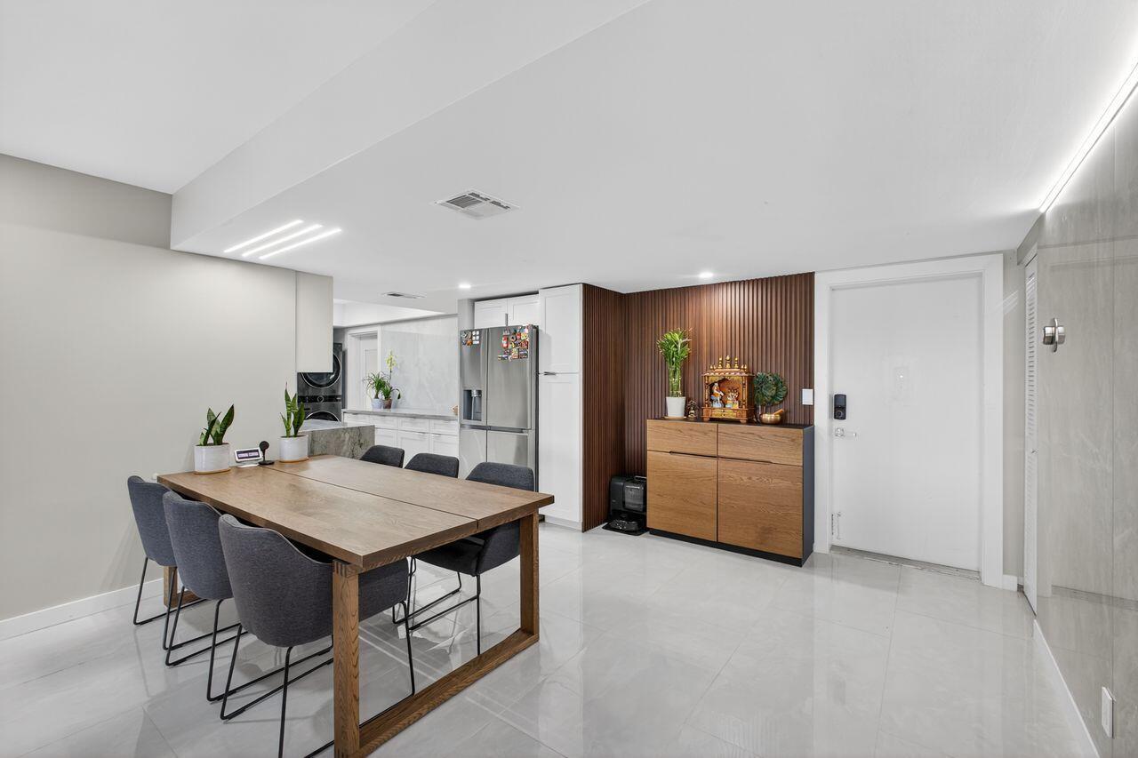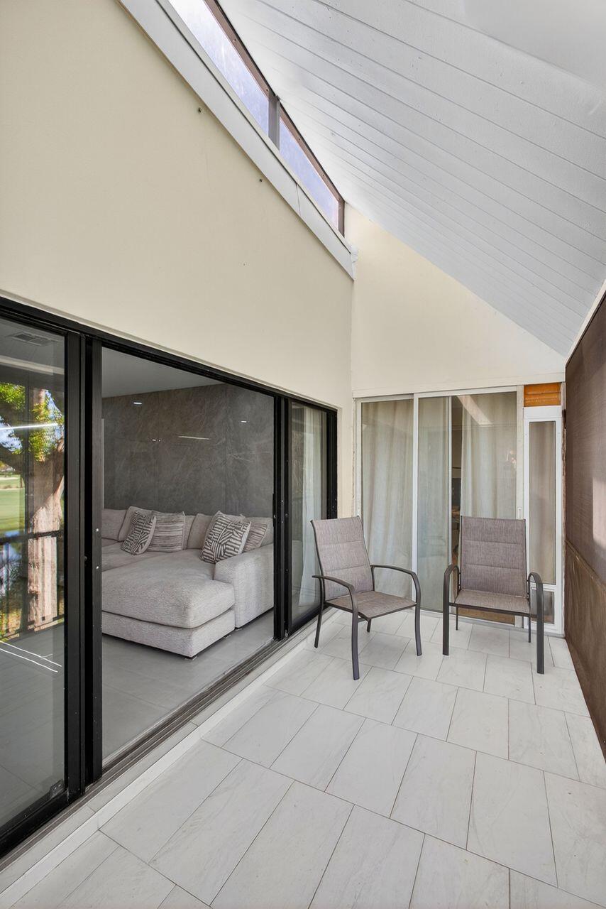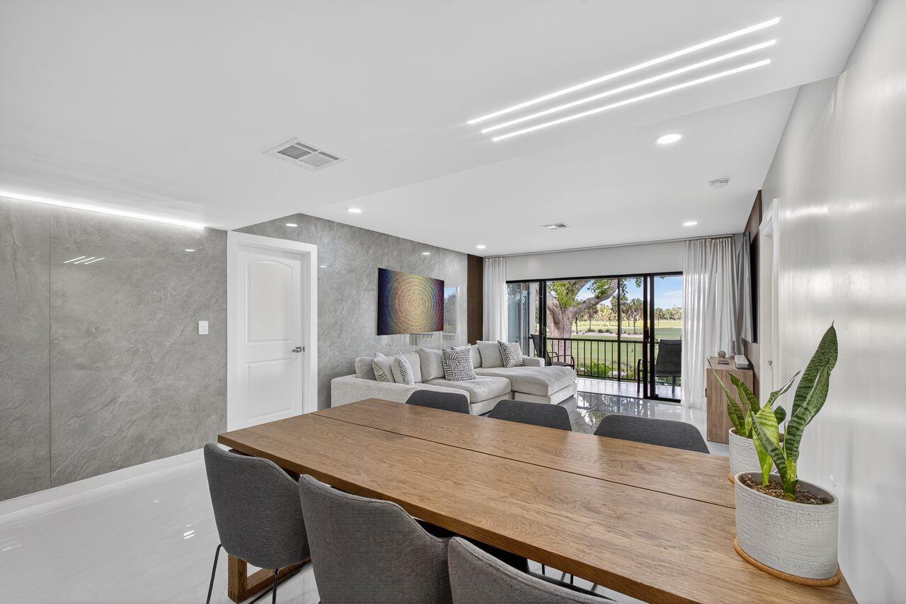 Step into this stunning two bedroom, two bath condo in a gated community just 5 minutes from downtown and 10 minutes from the beach. Enjoy breathtaking golf course views through floor-to-ceiling impact glass windows and relax on two covered patios which are perfect as sunrooms or office dens. Every inch of this home was upgraded with high-end tile flooring throughout, format accent wall tiles, wooden slat detailing and satin-finish Behr Marquee paint. The kitchen is a chef's dream with stone countertops, granite sink, full backsplash, soft-close cabinetry and smart LG appliances including a steam dishwasher and oven/air fryer combo. Smart home features include recessed LED lighting and Alexa/Google-compatible switches. See More
