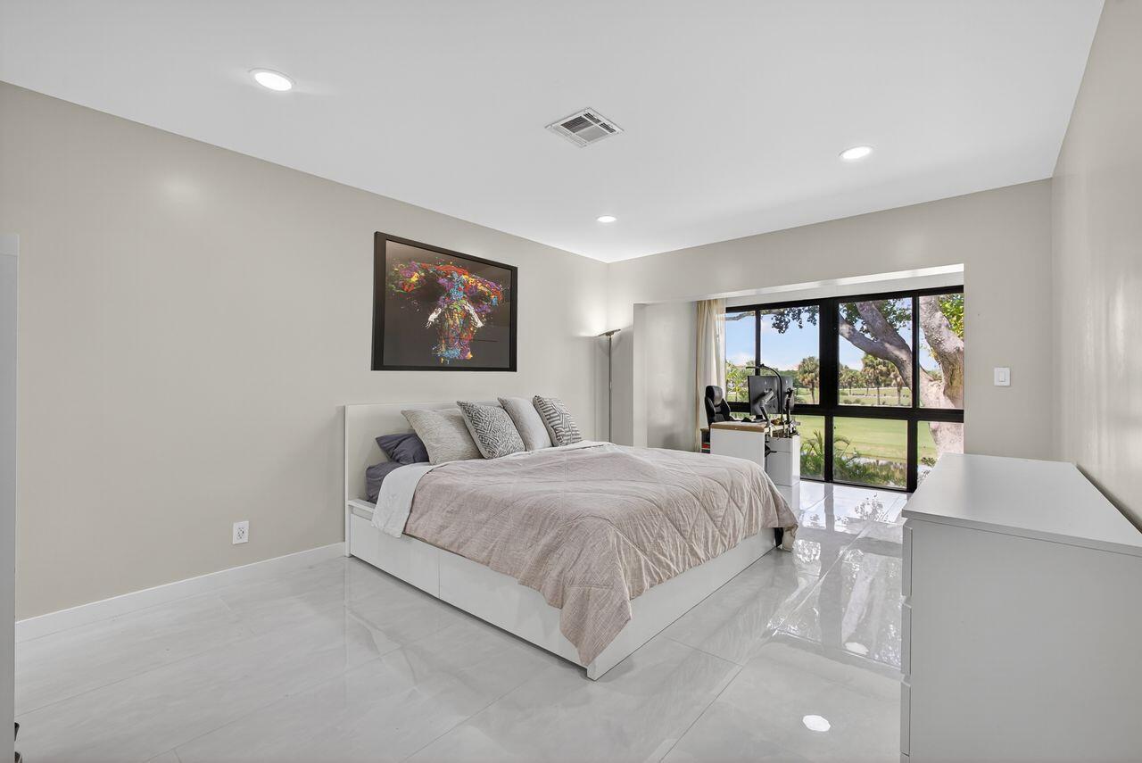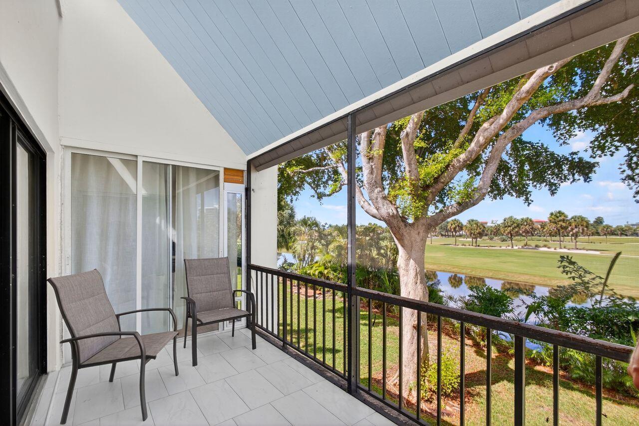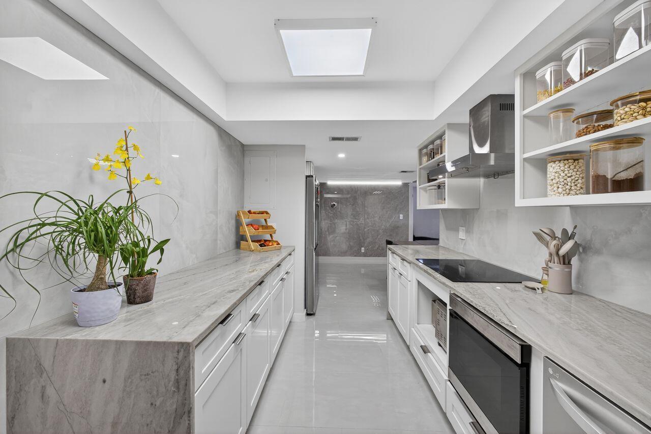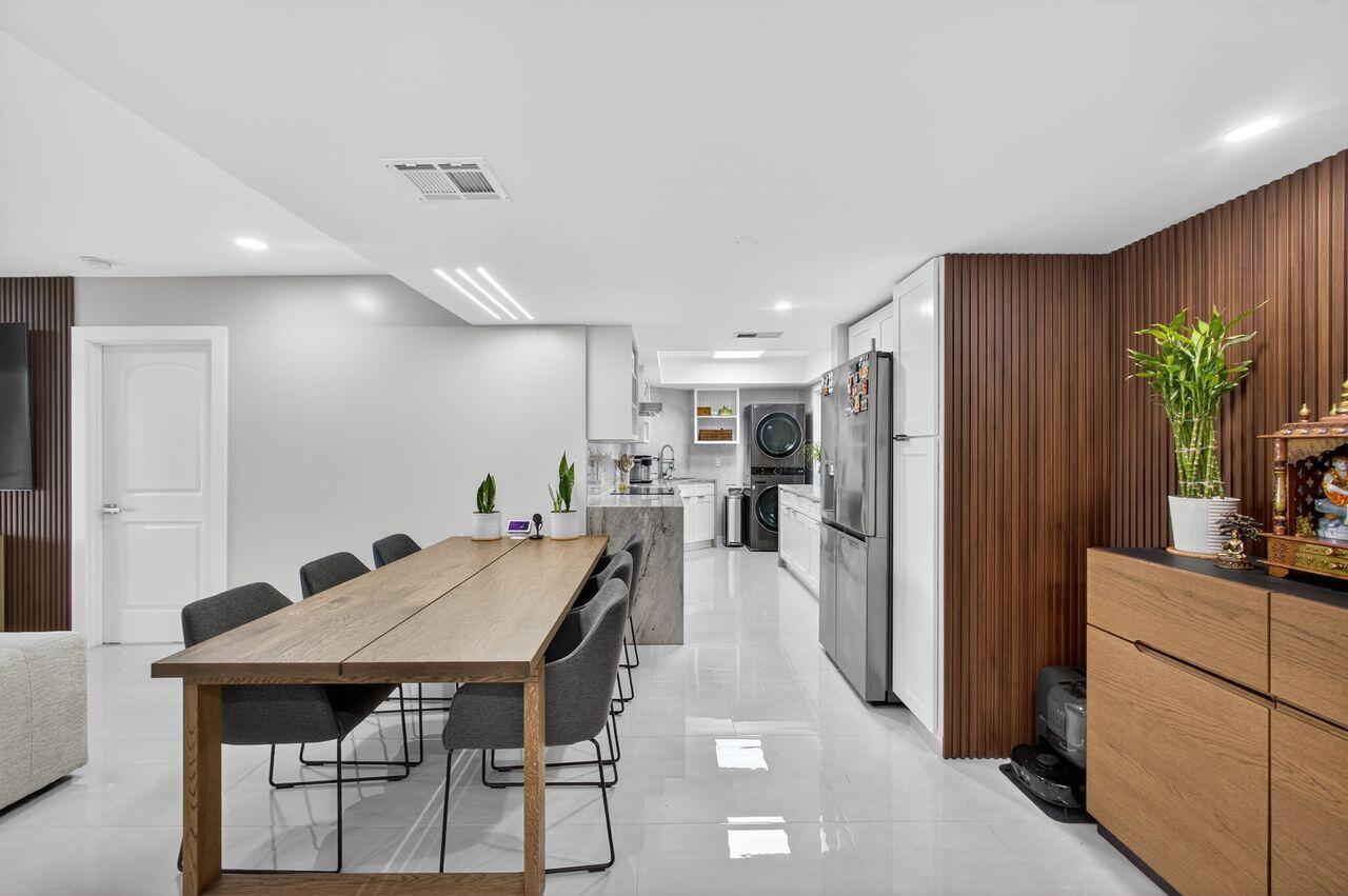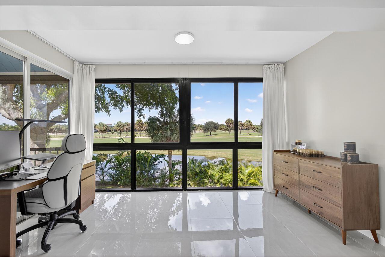 Step into this stunning two bedroom, two bath condo in a gated community just 5 minutes from downtown and 10 minutes from the beach. Enjoy breathtaking golf course views through floor-to-ceiling impact glass windows and relax on two covered patios which are perfect as sunrooms or office dens. Every inch of this home was upgraded with high-end tile flooring throughout, format accent wall tiles, wooden slat detailing and satin-finish Behr Marquee paint. The kitchen is a chef's dream with stone countertops, granite sink, full backsplash, soft-close cabinetry and smart LG appliances including a steam dishwasher and oven/air fryer combo. Smart home features include recessed LED lighting and Alexa/Google-compatible switches. See More