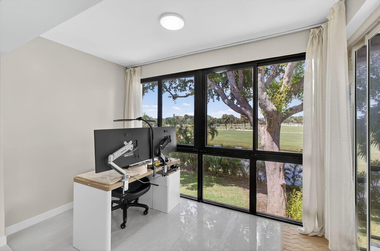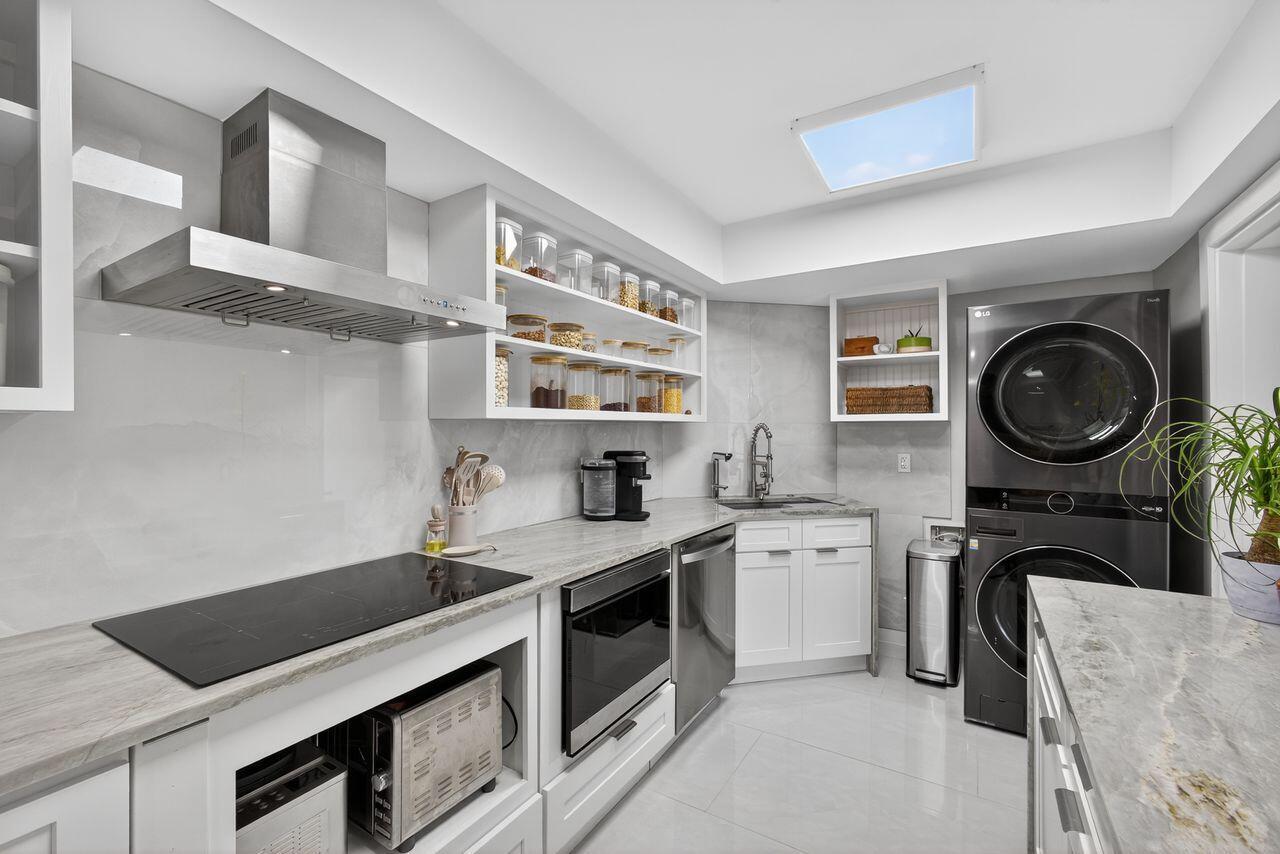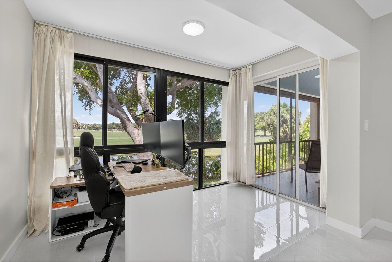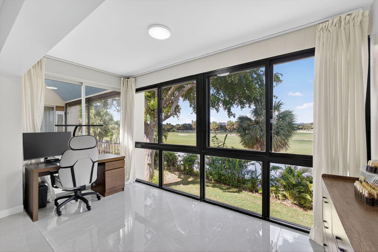 Step into this stunning two bedroom, two bath condo in a gated community just 5 minutes from downtown and 10 minutes from the beach. Enjoy breathtaking golf course views through floor-to-ceiling impact glass windows and relax on two covered patios which are perfect as sunrooms or office dens. Every inch of this home was upgraded with high-end tile flooring throughout, format accent wall tiles, wooden slat detailing and satin-finish Behr Marquee paint. The kitchen is a chef's dream with stone countertops, granite sink, full backsplash, soft-close cabinetry and smart LG appliances including a steam dishwasher and oven/air fryer combo. Smart home features include recessed LED lighting and Alexa/Google-compatible switches. See More