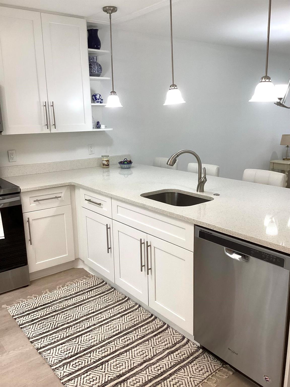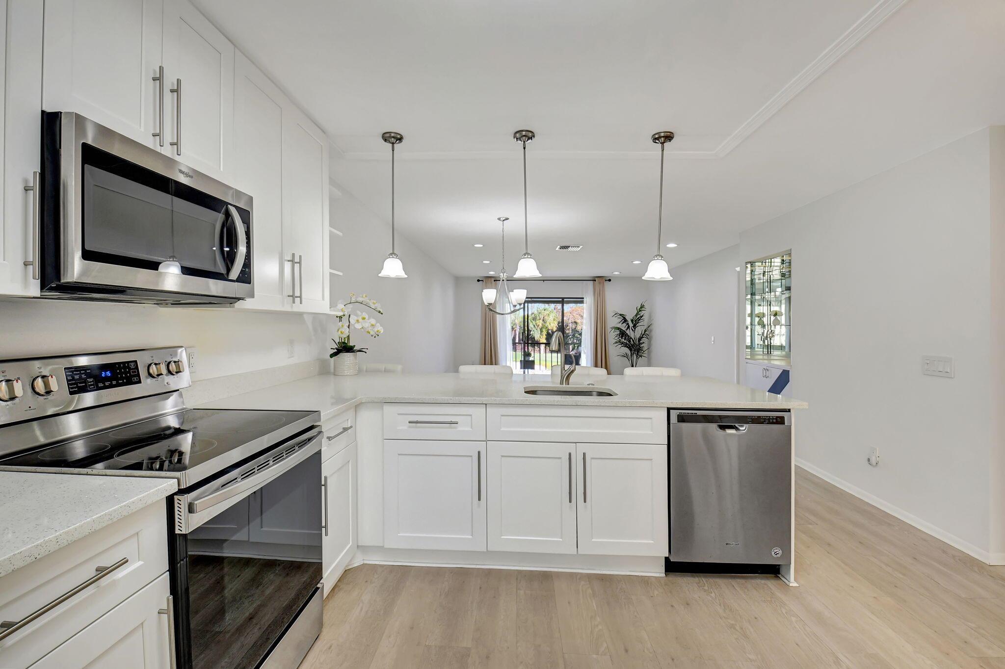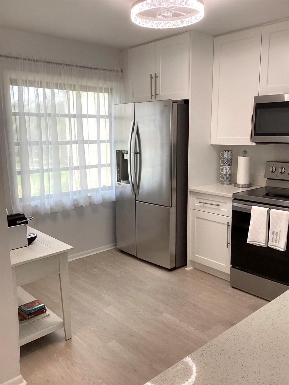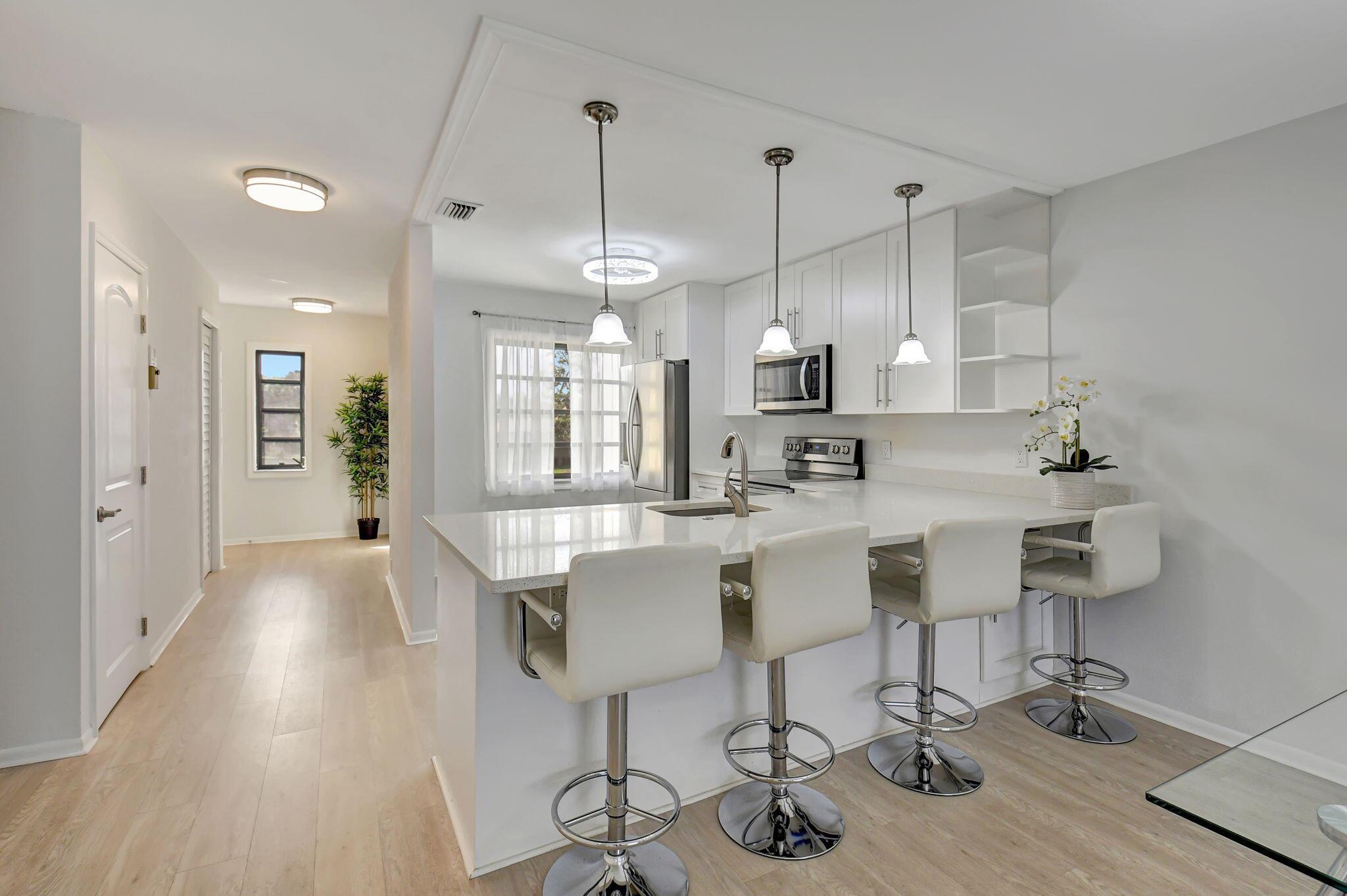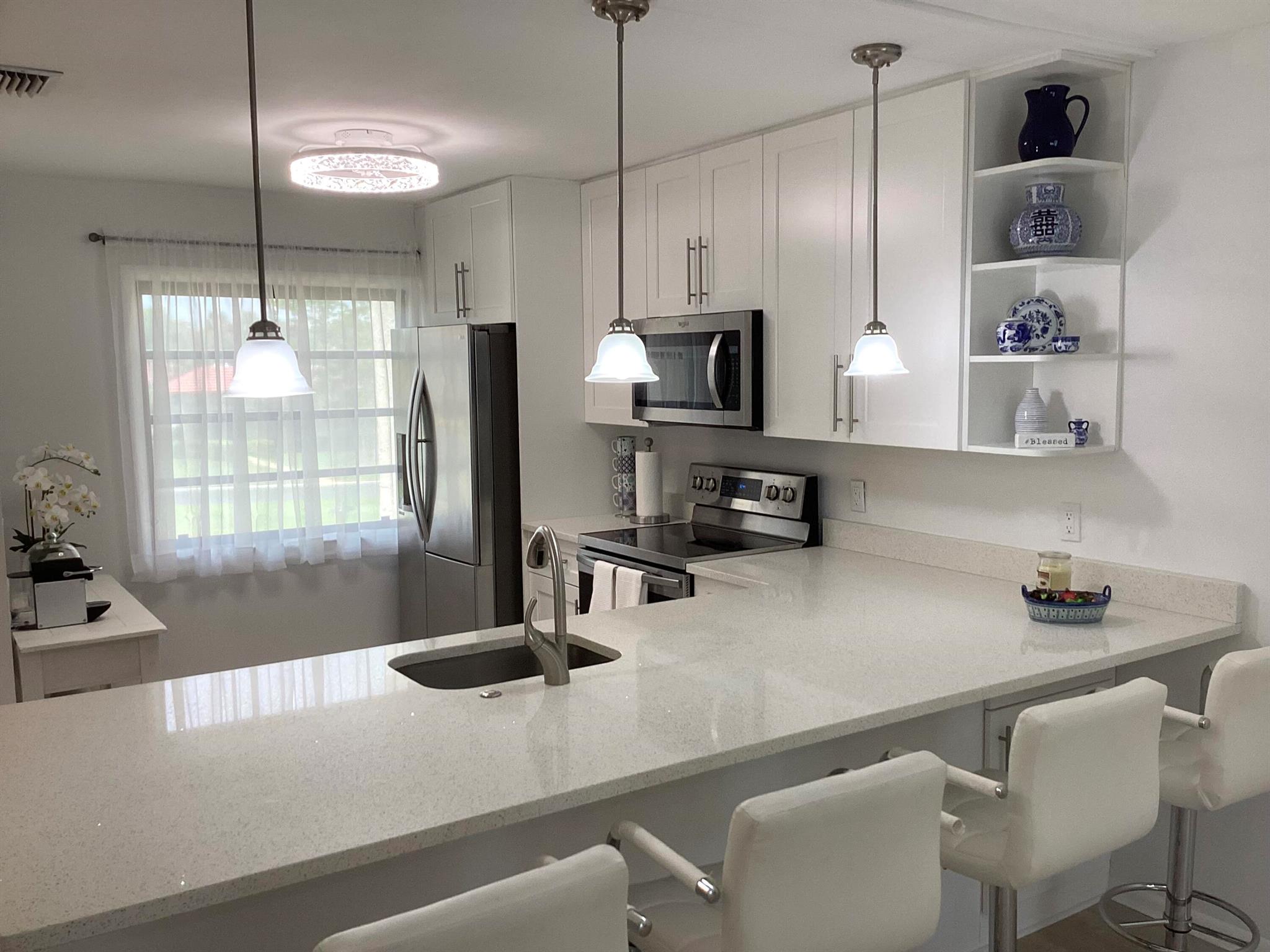 MOVE-IN READY...Come see this light-filled, furnished, fully remodeled 2 bed/2 bath unit with panoramic golf views in the Fairways of Boca Lago 55+ community with NO MANDATORY CLUB MEMBERSHIP. Beautiful quartz countertops, Stainless Steel appliances in Open Kitchen to dining/living areas. Covered/screened patio with high end tile flooring. The entire unit has luxury vinyl floors with custom tile floors in both bathrooms. Interior doors feature contemporary frosted glass panels. Enjoy this one-of-a-kind completely updated unit to relax with family and friends. This unit has assigned parking and located just steps from community pool. Close to all shopping, dining, hospitals, and highway. This is a MUST SEE! (Also available unfurnished).