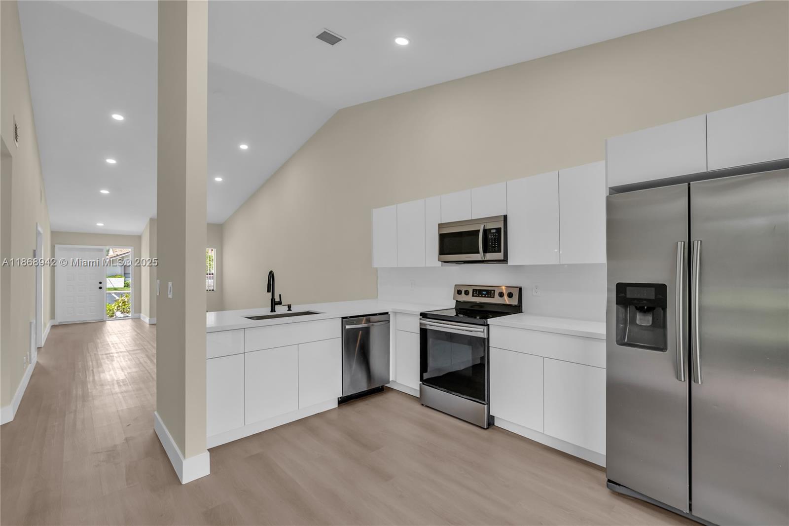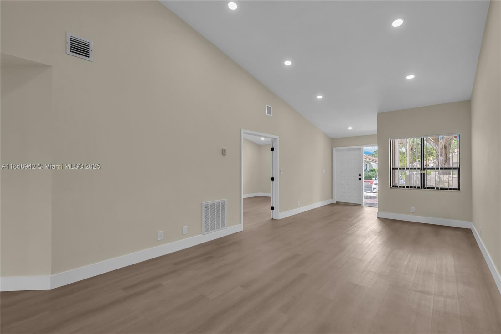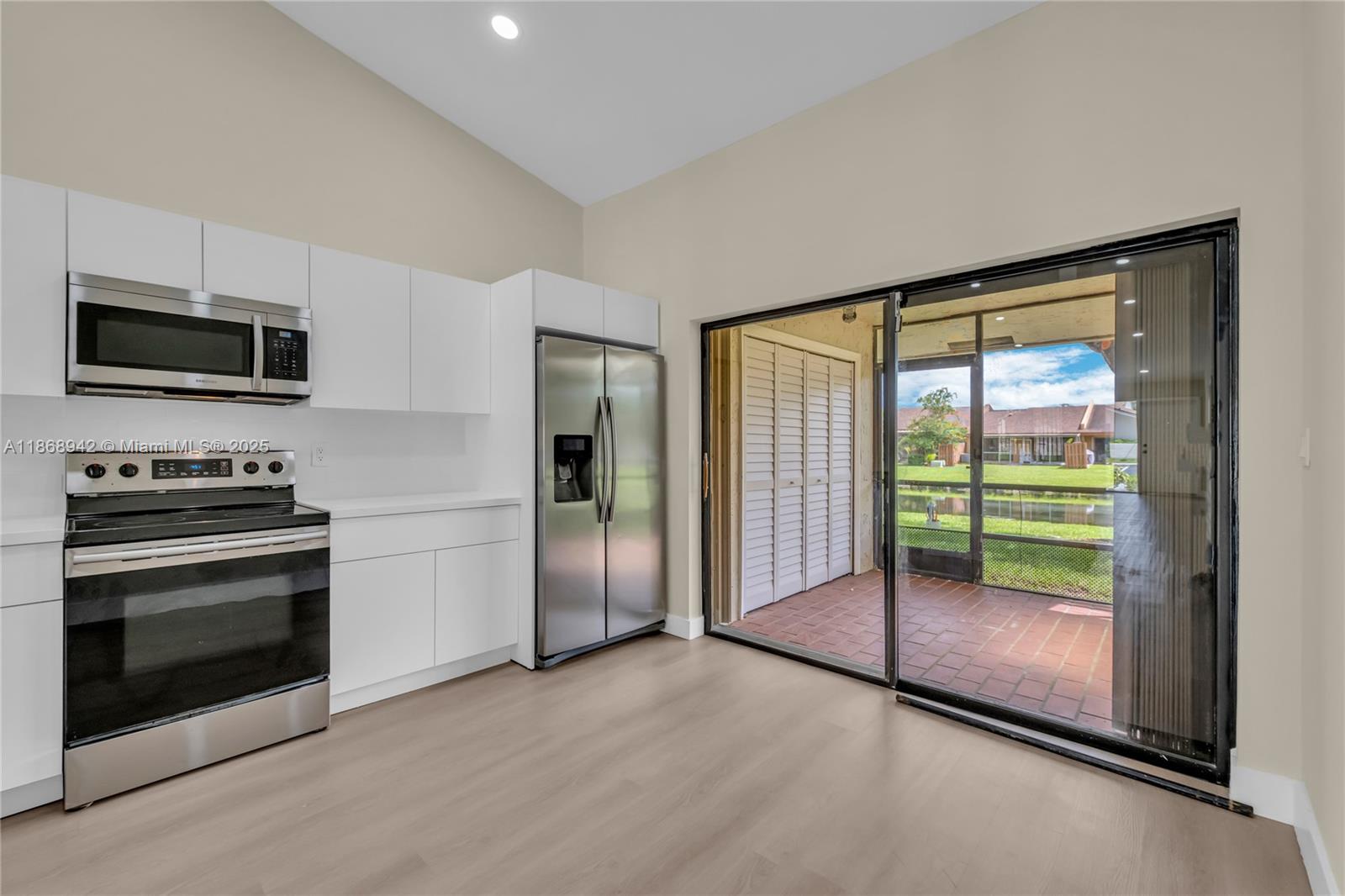Fully remodeled waterfront townhome located in Alpines Woods of Jacaranda. This one-story 2 Bed / 2 Bath townhome features a new roof (2023), high vaulted ceilings with new recessed lighting throughout, all new floors with modern baseboards, new custom bathrooms, plus a new eat-in kitchen complete with SS appliances and quartz countertops. This villa offers a large primary suite with dual sinks and a walk-in closet. The townhome is protected with high-impact accordion shutters and a private covered terrace with a laundry closet and new water heater. Two privately assigned parking spaces, and a Low HOA with lawn care included!