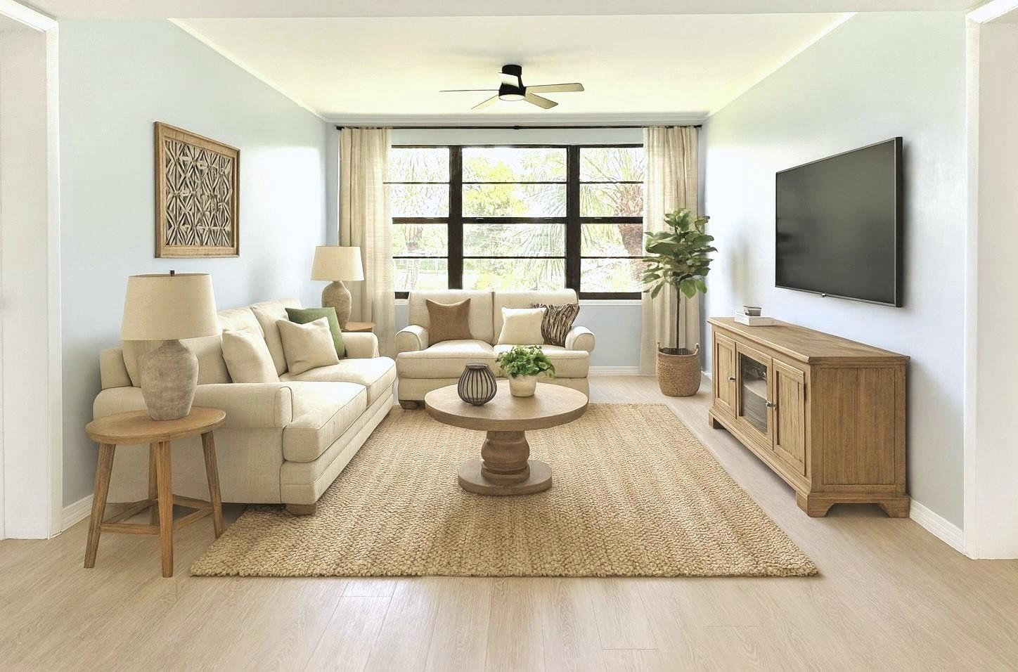 SPECTACULAR REMODEL...NO EXPENSE SPARED! INVESTORS WELCOME...No waiting to rent! Don't miss this beautiful MOVE-IN READY large 2bd/2bth unit in much sought-after Whitehall in the Village, with 1,437 sqft LIVING AREA with ALL NEW HURRICANE IMPACT WINDOWS THROUGHOUT! NEW KITCHEN, NEW BATHROOMS, NEW HIGH-END APPLIANCES, NEW FLOORS, NEW LIGHTING, NEW A/C & WATERHEATER, NEW WASHER & DRYER, NEW ELECTRICAL PANEL, LARGE WALK-IN CLOSET IN MASTER BEDROOM. SO MANY FEATURES...Tons of storage, Oven/Air Fryer, 5-Burner Stove, Solid Wood Cabinets with soft close, Quartz Countertops, Disposal, Walk-in Closet, Sound-dampening Flooring, Coffered Ceilings...TOO MUCH TO LIST! Check out the BEAUTIFUL VIEW of the GOLF COURSE, LAKE & FOUNTAIN.