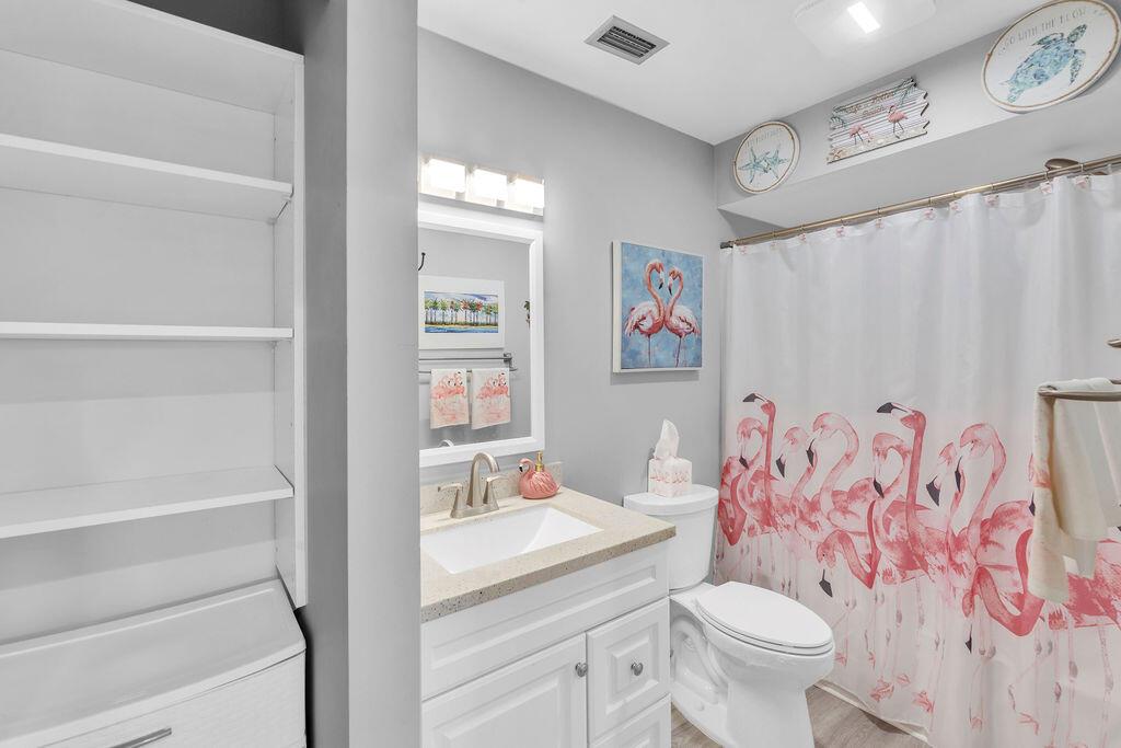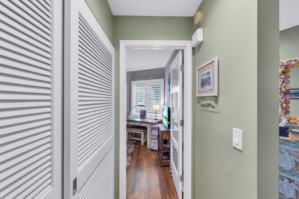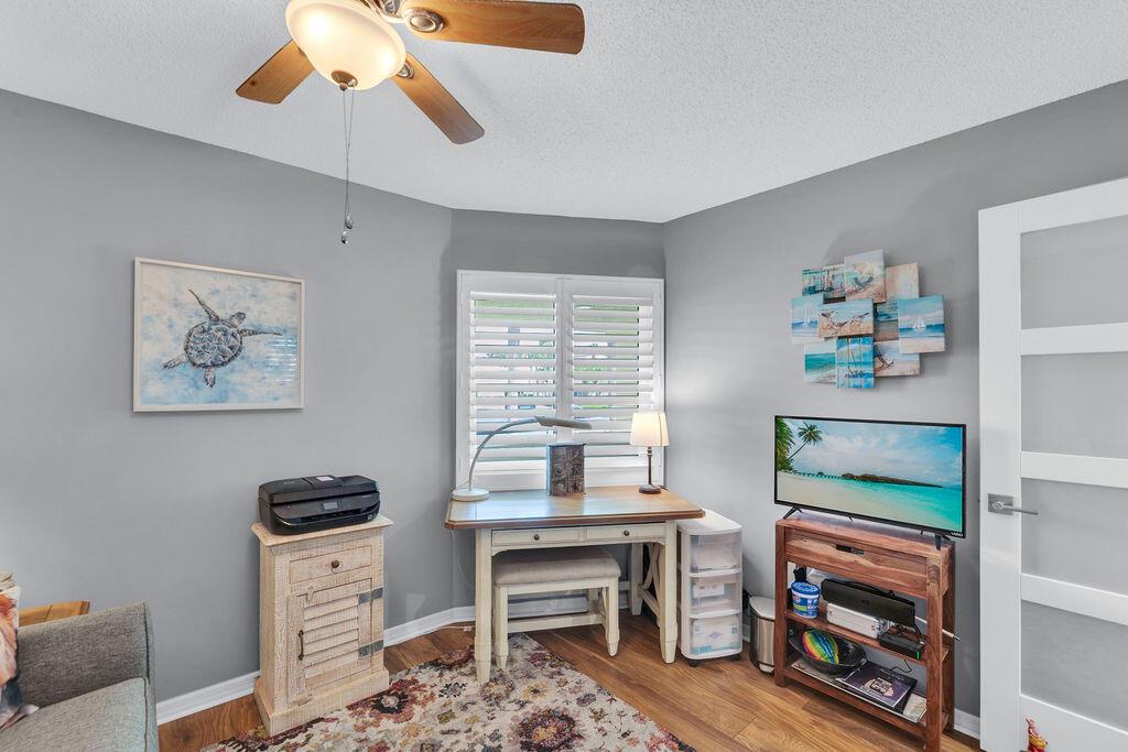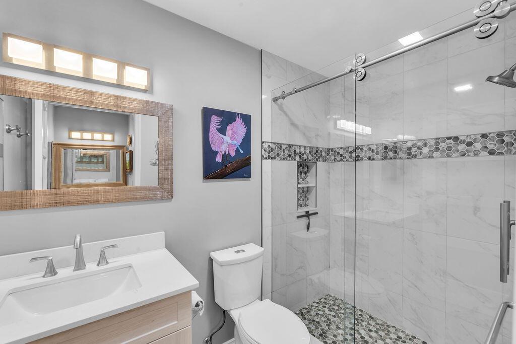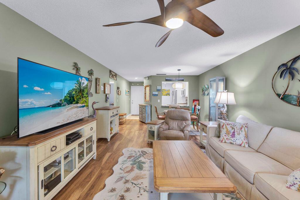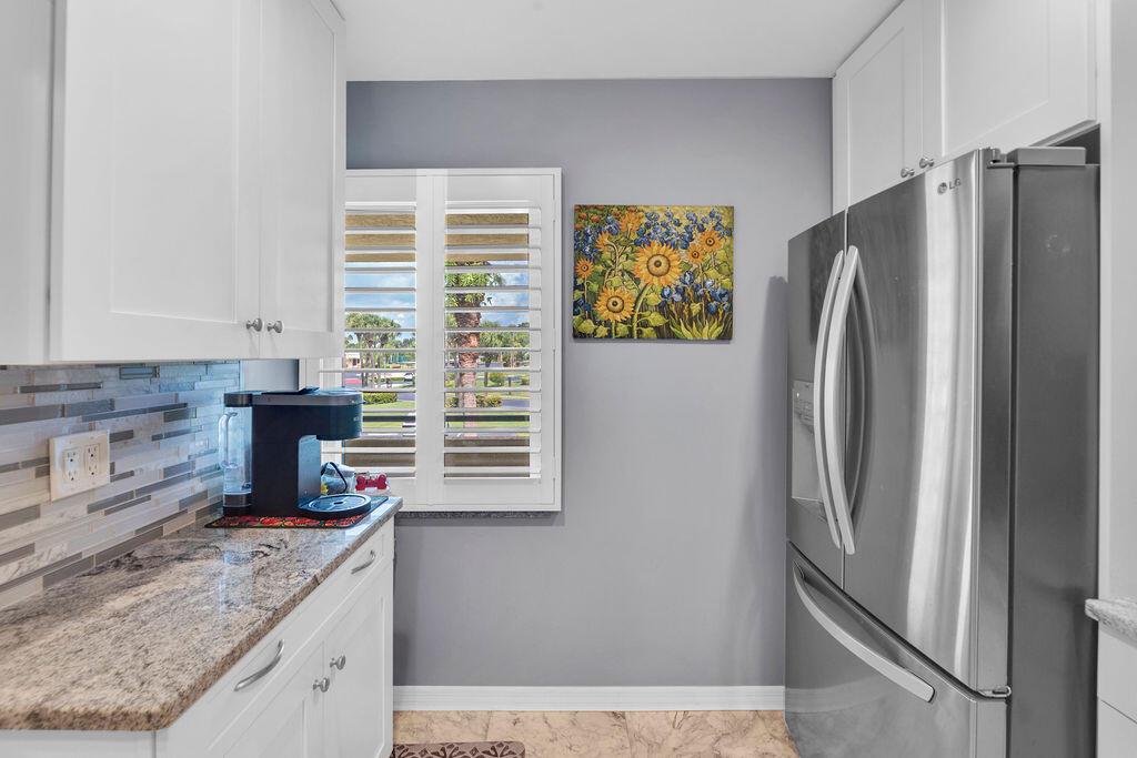 This beautifully updated 2-bedroom, 2-bath condo offers modern style and comfort with a prime location on the 5th hole of a lush, well-maintained golf course. Enjoy sweeping fairway and lake views right from your private balcony or living room. Step inside to find an open, light-filled floor plan, upgraded kitchen with stainless steel appliances, granite countertops, and sleek cabinetry. Both bedrooms are generously sized, with the primary suite featuring an en-suite bath and custom California walk-in closets. The home is enhanced with impact windows for peace of mind and plantation shutters for timeless elegance. Enjoy the tennis and Pickleball courts along with the clubhouse for social events and BBQ's.
