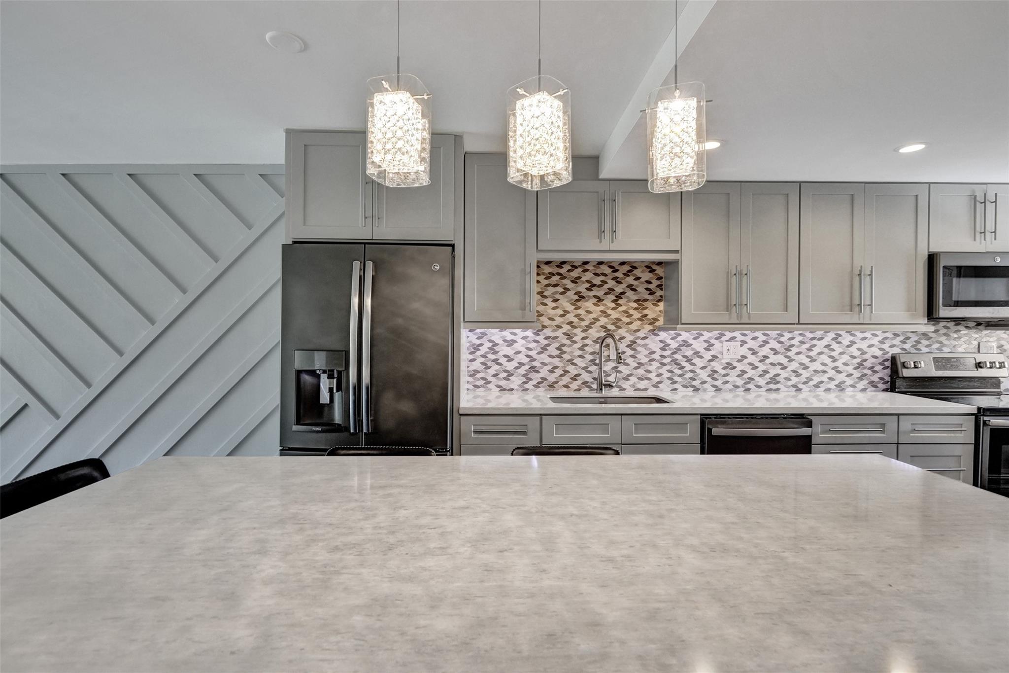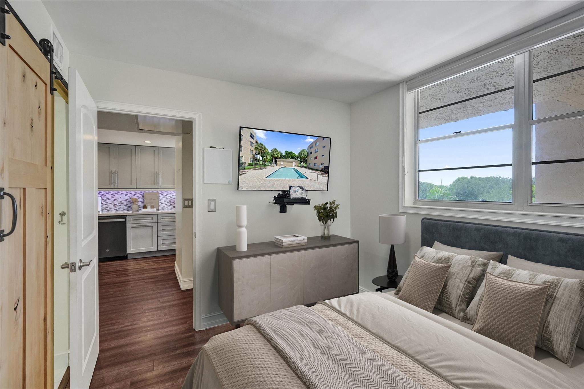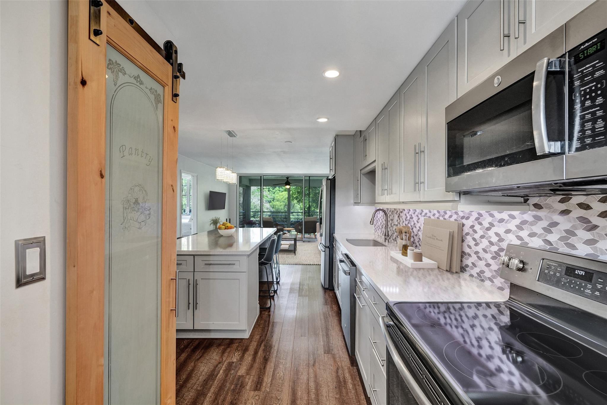 No Special Assessments/ the Most affordable condo fees! Your new custom renovated home has amazing indoor / outdoor flow through floor to ceiling sliding glass doors to your large screened balcony where you can enjoy the best view in all of Pine Island Ridge. Custom Kitchen with Quartz countertops. Plenty of kitchen cabinets and drawers for storage and enough countertops for meal preparation. Glass pantry barn door with lighten pantry and pull out shelves. Oversized Quartz Island to meet your dining needs for six people. All new matching appliances. Refrigerator has built-in Keurig coffee maker. Both bathrooms have quartz countertops and plenty of storage space. Barn Doors in both bedrooms & bathrooms. Walk-in master closet. Luxury vinyl floors throughout home. No popcorn ceilings