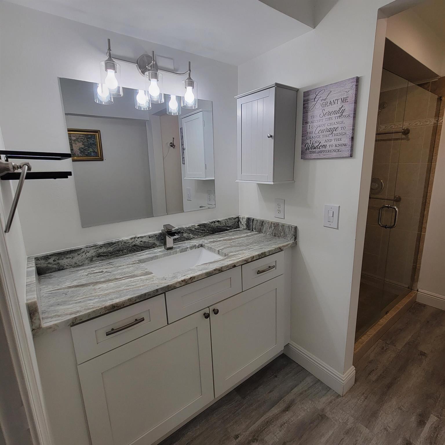 LOOK NO FURTHER CUSTOM SMART HOME OFFERS UNIQUE LIGHTING AND MODERN TECHNOLOGYCOMPLETE WITH 3 EXPANSIVE WALL MOUNTED FLAT SCREEN TV'S FOR YOUR ENJOYMENT TASTEFULLY DESIGNED & UPDATED OPEN FLOORPLAN WITH VAULTED CEILINGS VINYL FLOORS THROUGH OUT OPEN KITCHEN WITH WRAP AROUND BAR GREAT FOR ENTERTAINING SS APPLIANCES NEW CUSTOM SIZED REFRIGERATOR LEATHERED GRANITE COUNTERTOP WHITE WOOD CABINETS FRESHLY PAINTED WALLS INTERIOR LAUNDRY CUSTOM LIGHTING WITH SLIDER SWITCHES CONTEMPORARY CHANDELIERS OPENS TO AN ENCLOSED SCREENED PATIO WITH ADDED PRIVACY LARGE PRIMARY BEDROOM SLIDING BARN DOOR TO ENSUITE ADDS PRIVACY & IS A SPACE SAVER OPEN WALK IN CLOSET UPDATED VANITY & GLASS ENCLOSED SHOWER PLENTY OF NATURAL LIGHT & STORAGE NEW A/C 12/2025 A MUST SEE SCHEDULE A SHOWING TODAY BRING ALL OFFERS