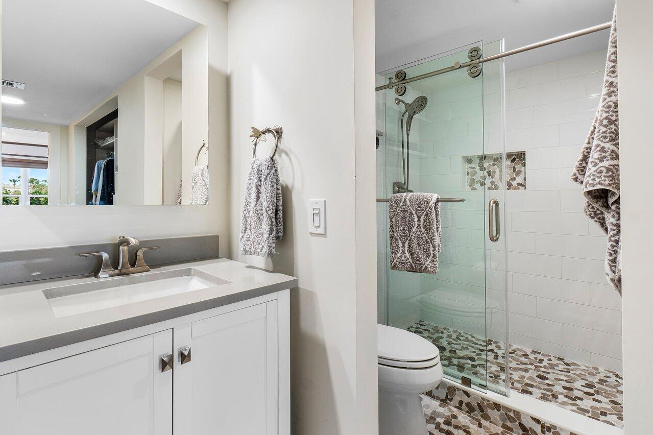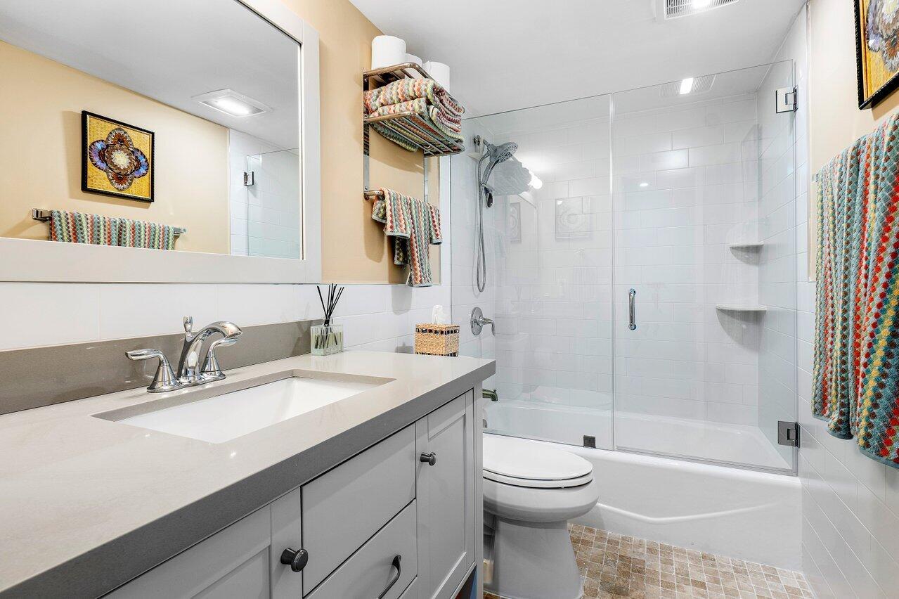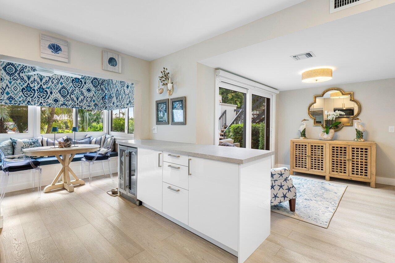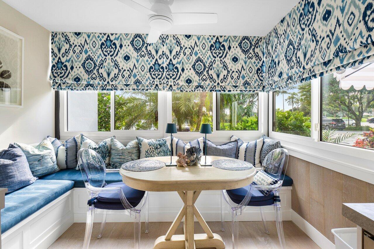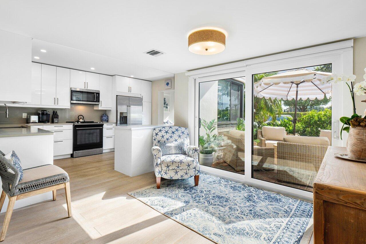 Beautifully renovated 3-bedroom, 2-bath first-floor residence, offering double fairway views of the newly renovated North course. With all impact glass windows, you'll enjoy peace of mind and energy efficiency. The open floor plan features a spacious living area that seamlessly flows into the updated kitchen, complete with sleek white cabinetry and elegant countertops. The kitchen also boasts a built-in banquette in the breakfast area. The den offers a convenient Murphy bed for added flexibility, whether used as a guest room or home office. Step outside onto your private open patio, perfect for relaxing and entertaining. Quail Ridge offers many upscale amenities - golf, tennis, pickle ball, clubhouse with dining and social events all in a vibrant community atmosphere.